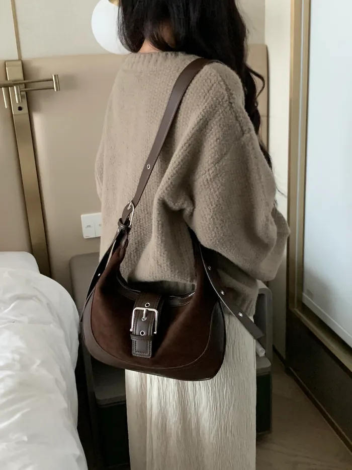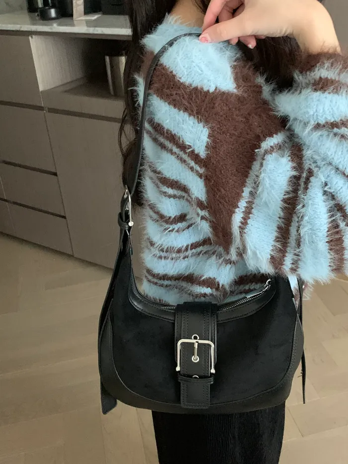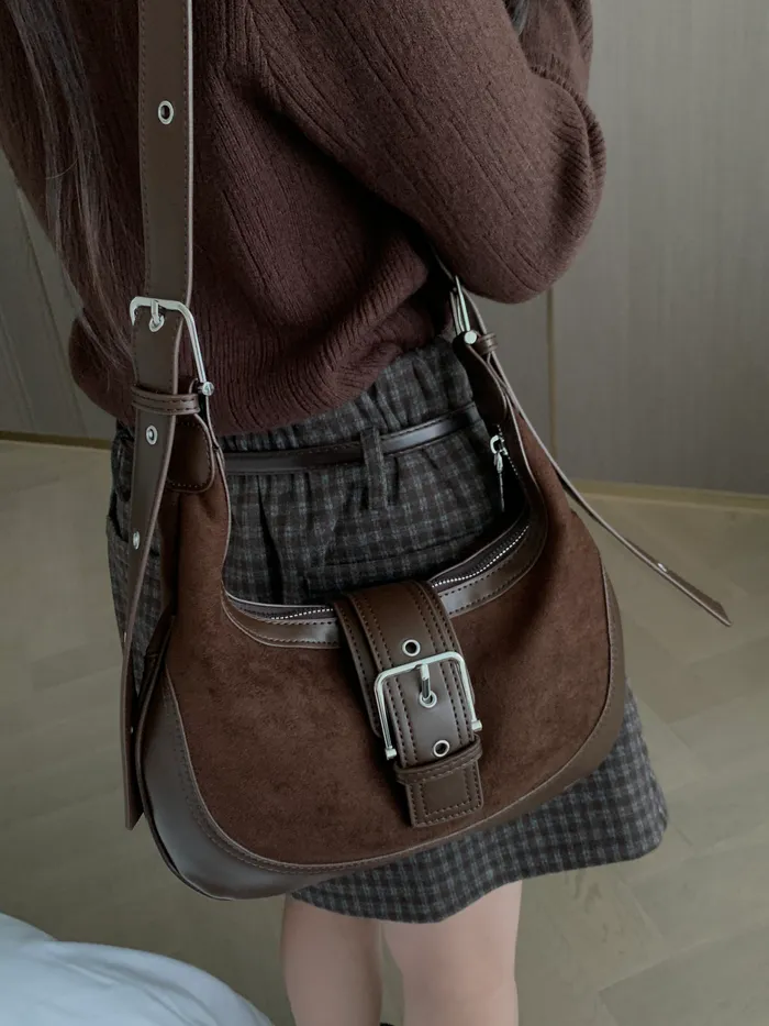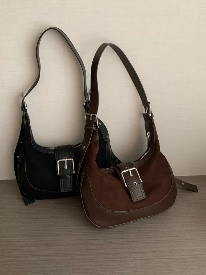 Jan.spicy&cool麂皮拼接肩背包(2colors),現貨