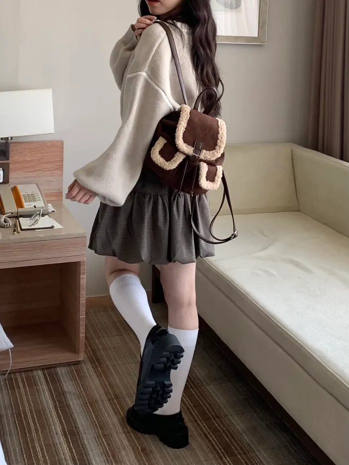 Jan,雪地焦點~羔毛麂皮後背包(現貨)