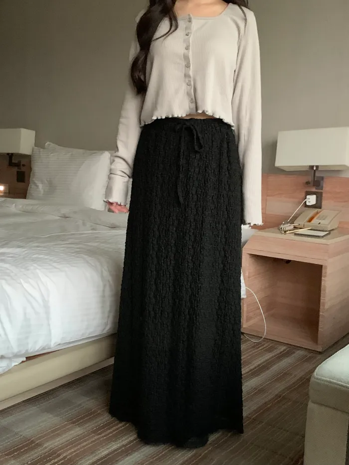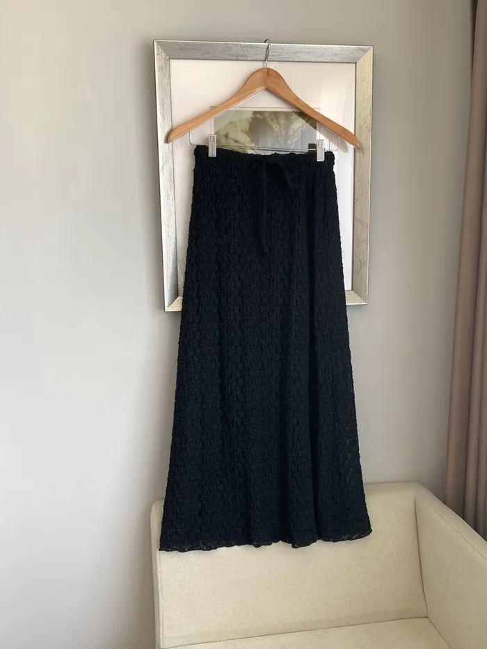 Jan,黑色低調蕾絲花花長裙