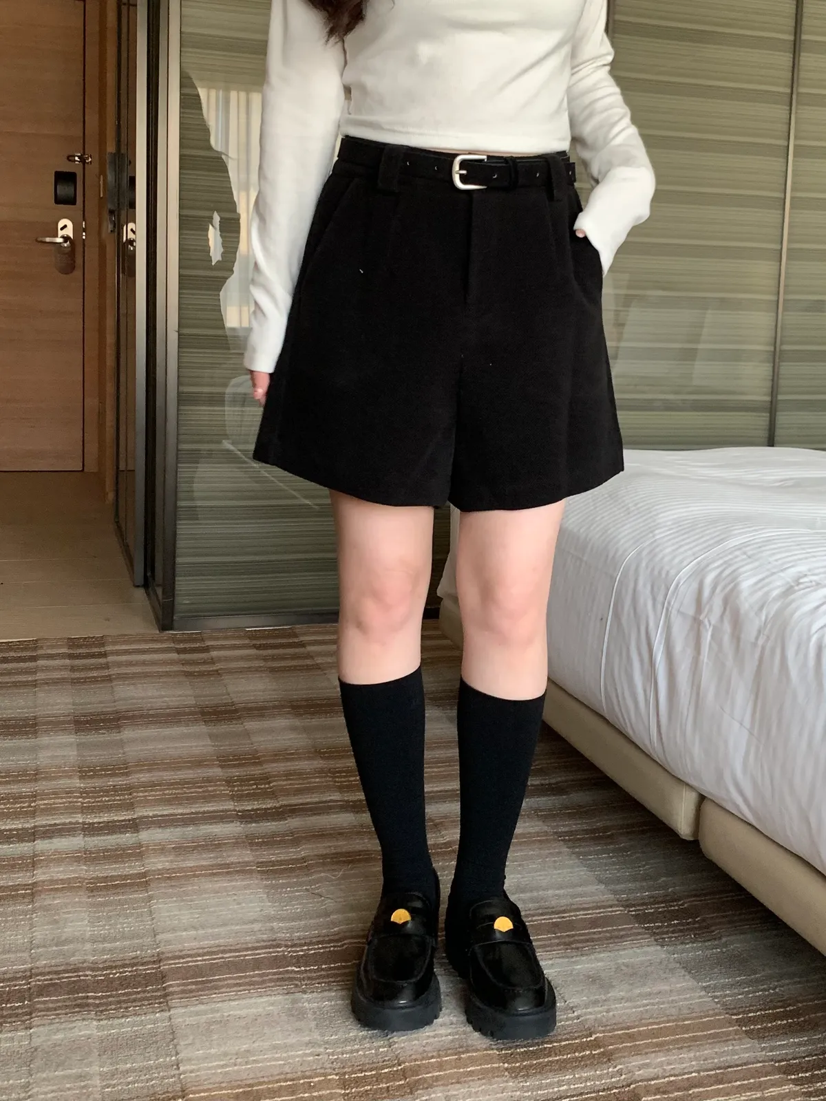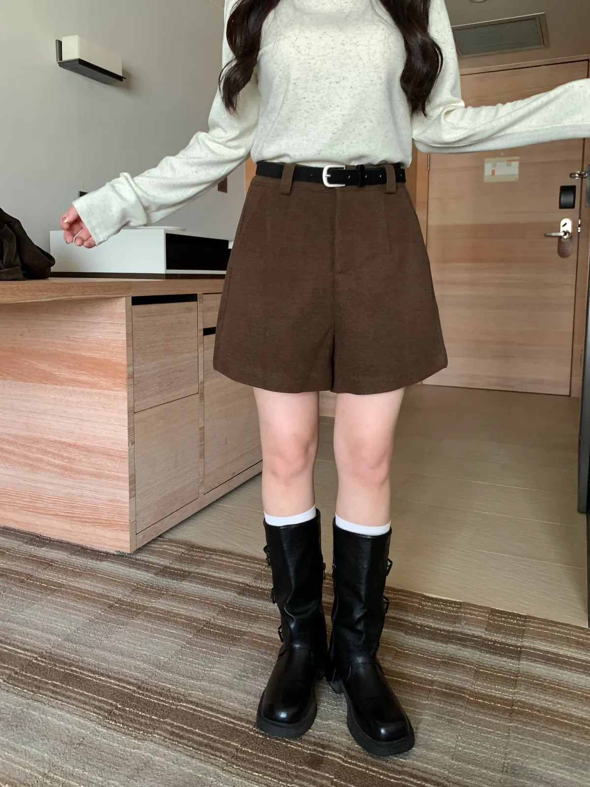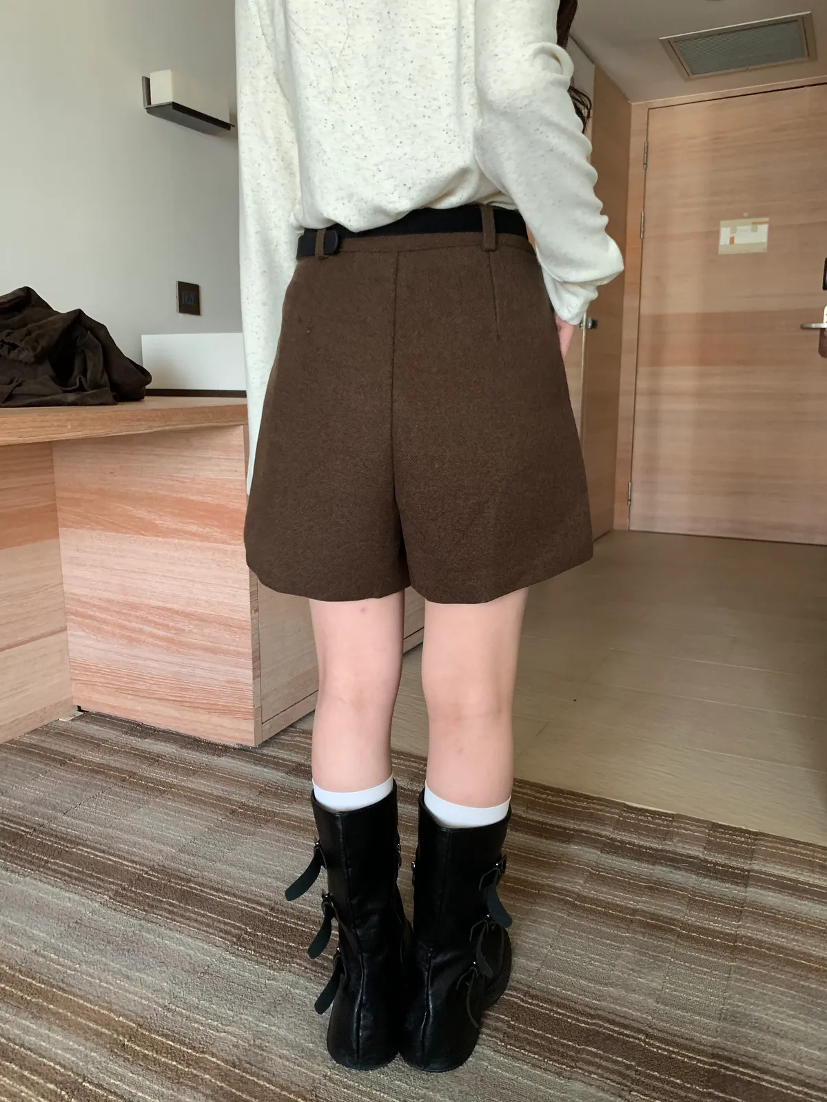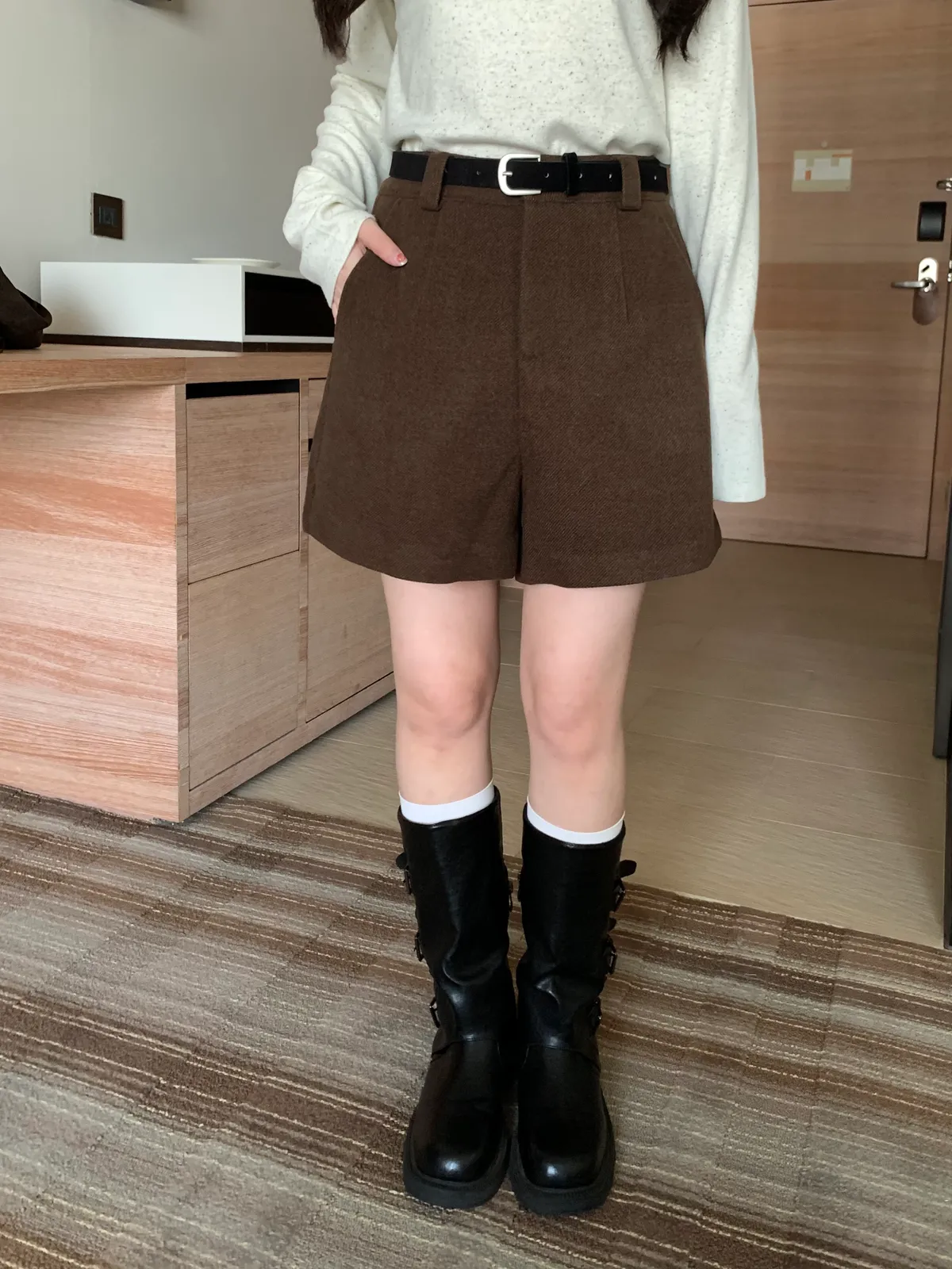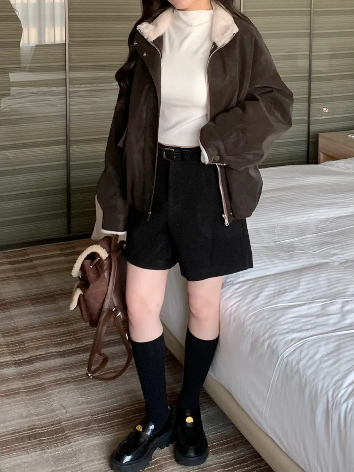 冬日百搭羊絨短褲(附皮帶),(4colors)
