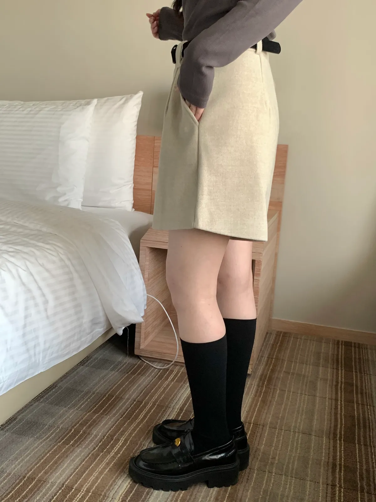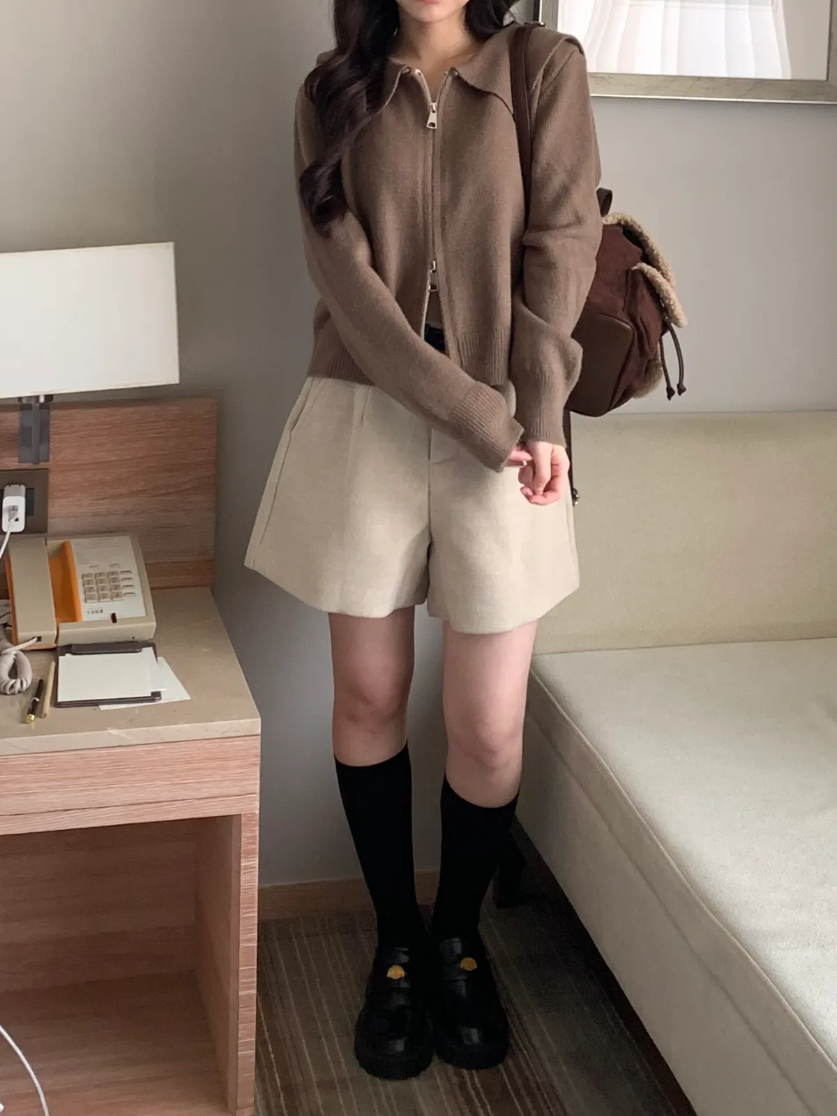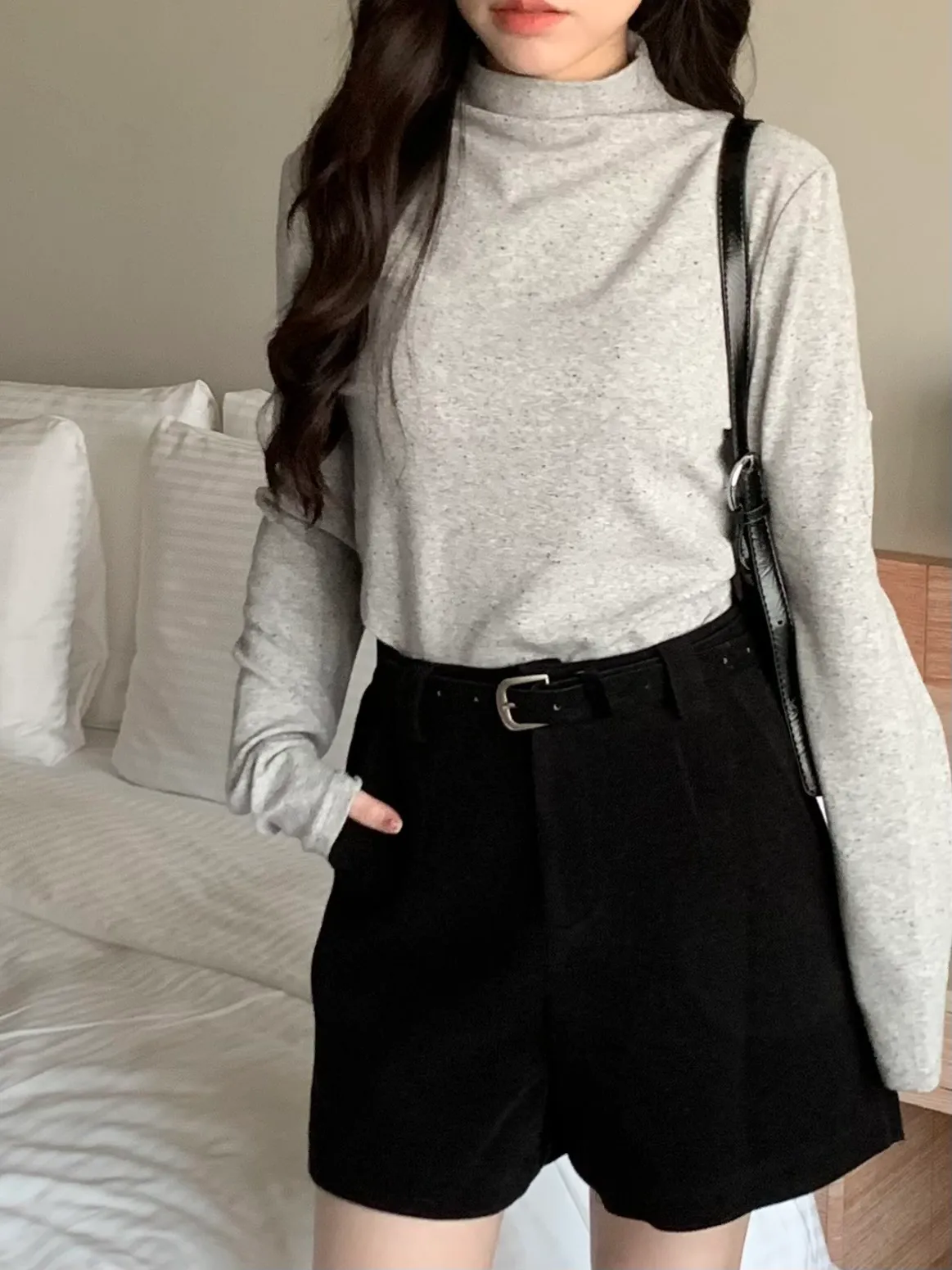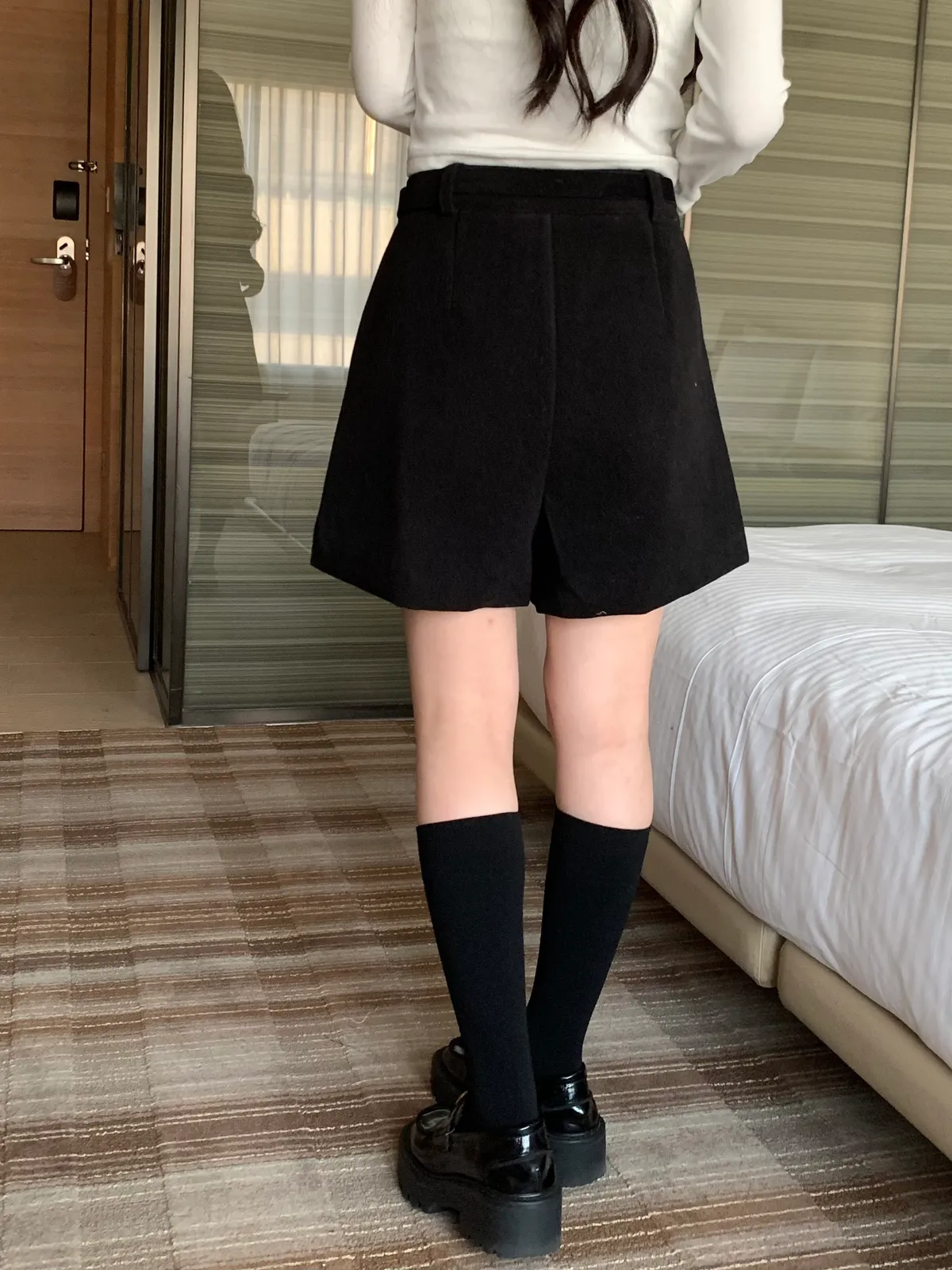 冬日百搭羊絨短褲(附皮帶),(4colors)