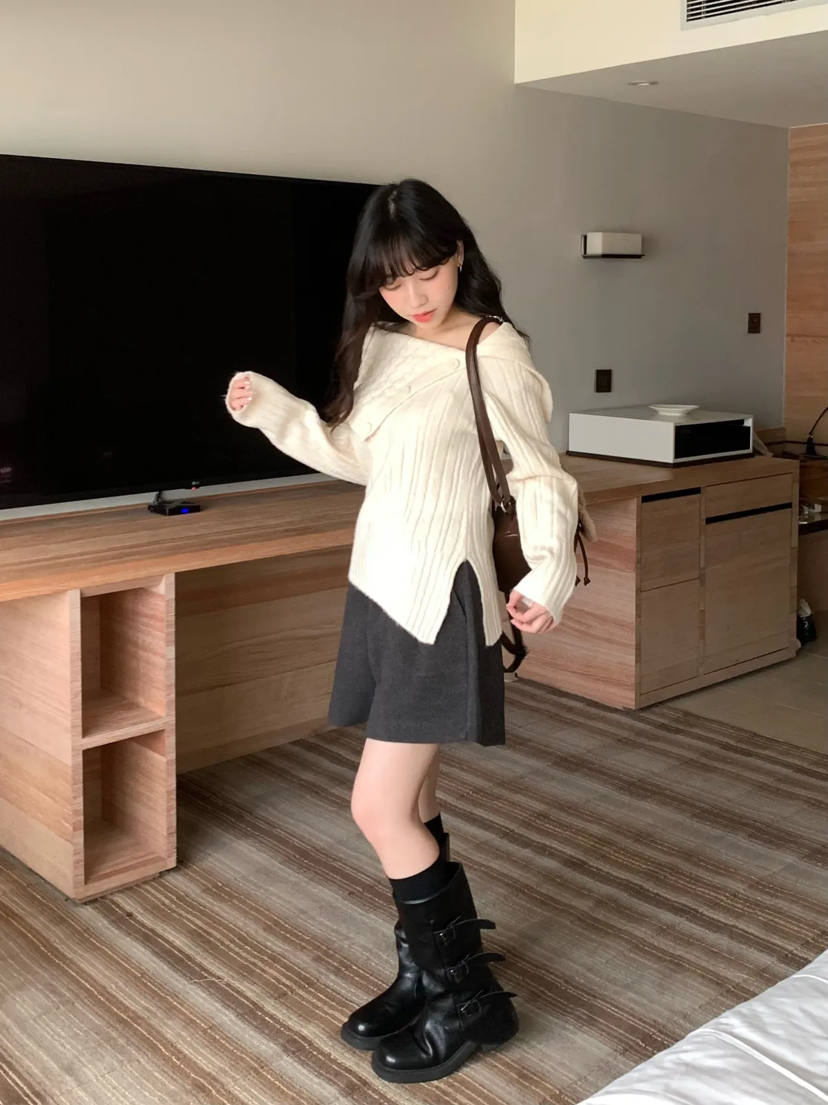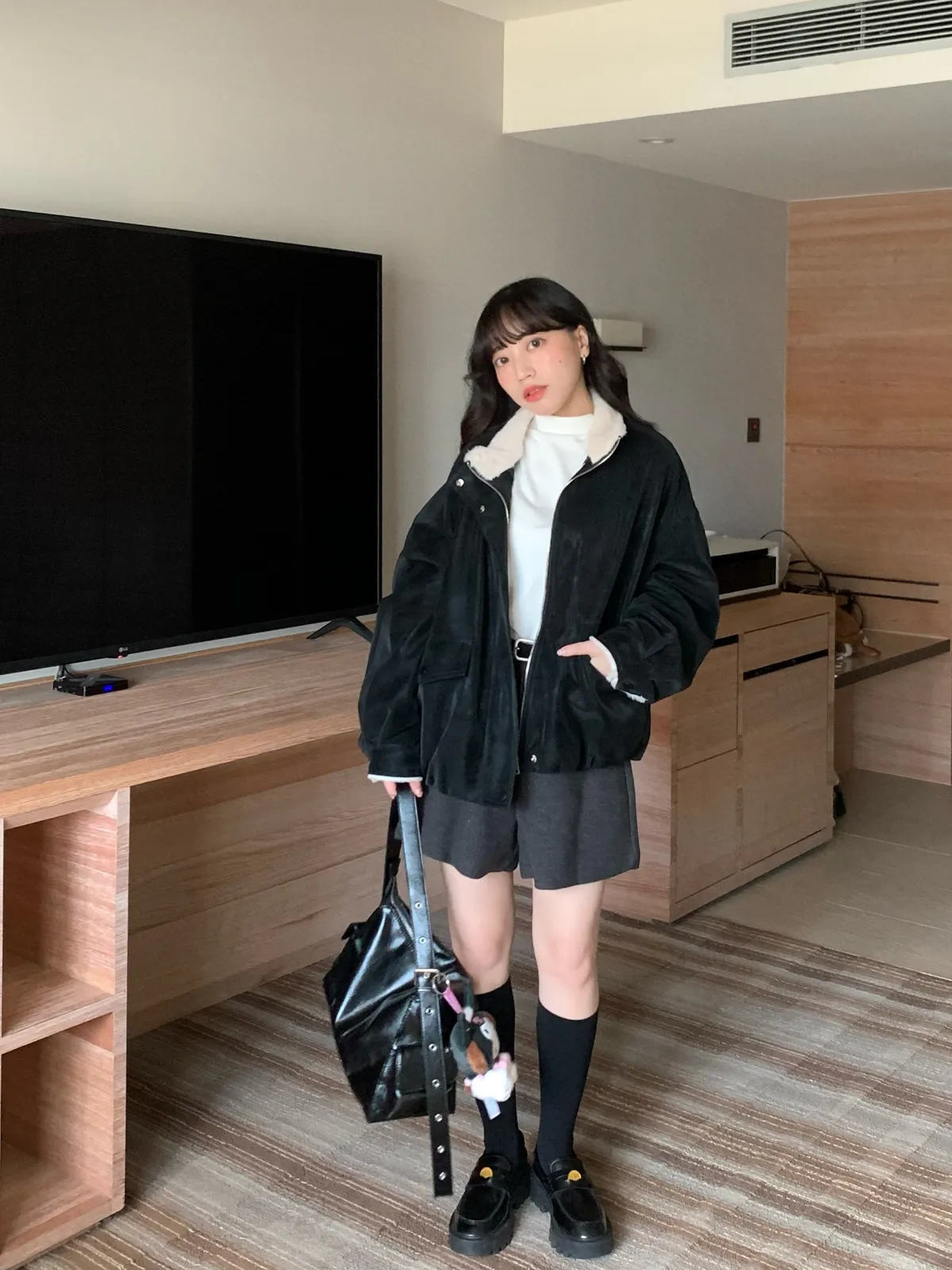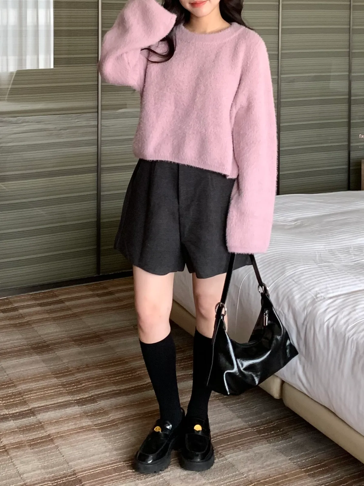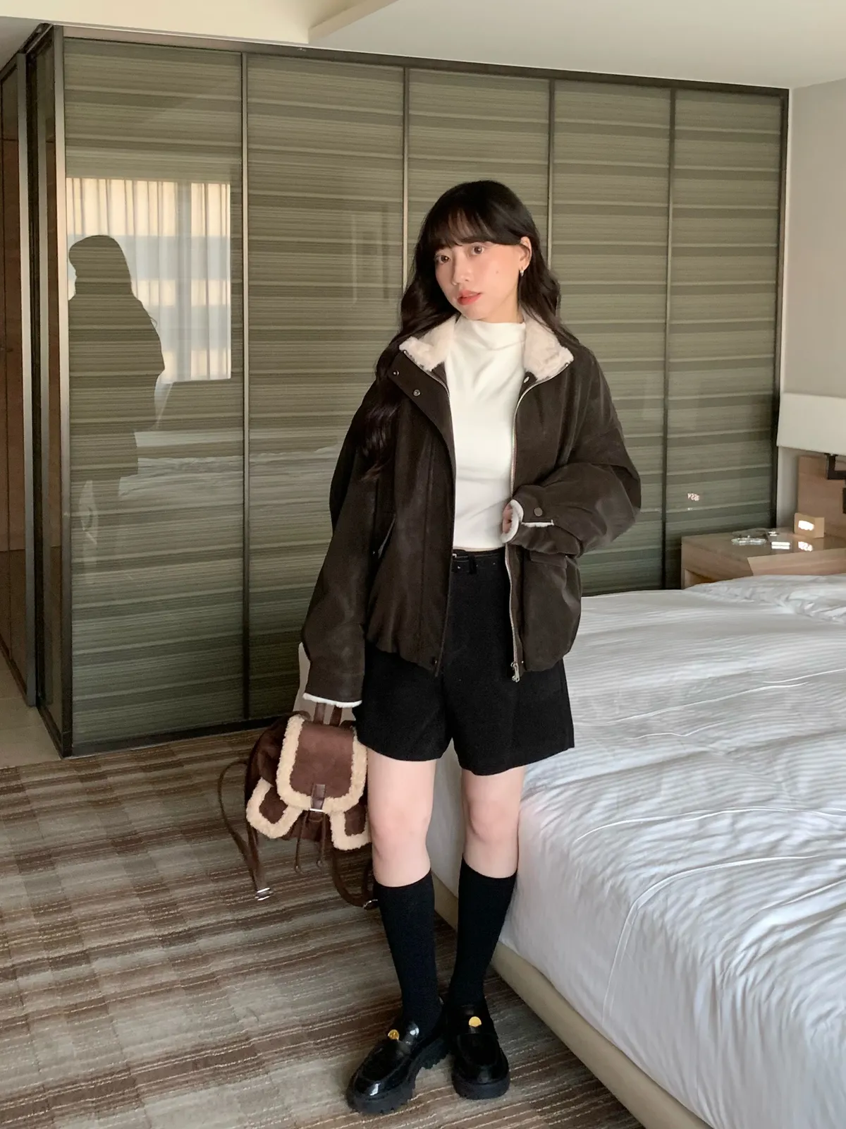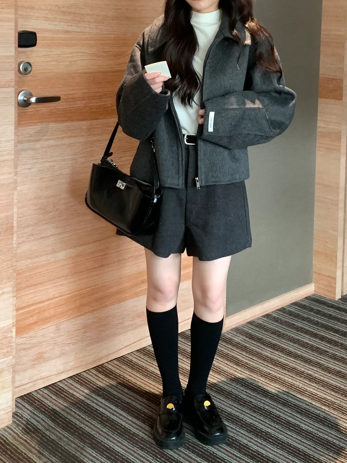 冬日百搭羊絨短褲(附皮帶),(4colors)