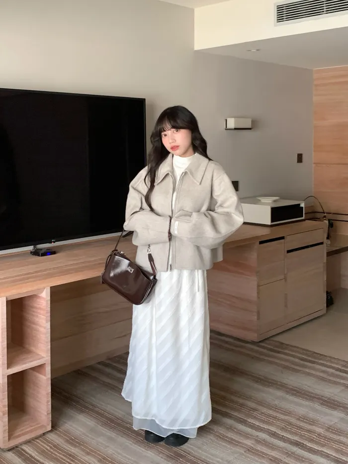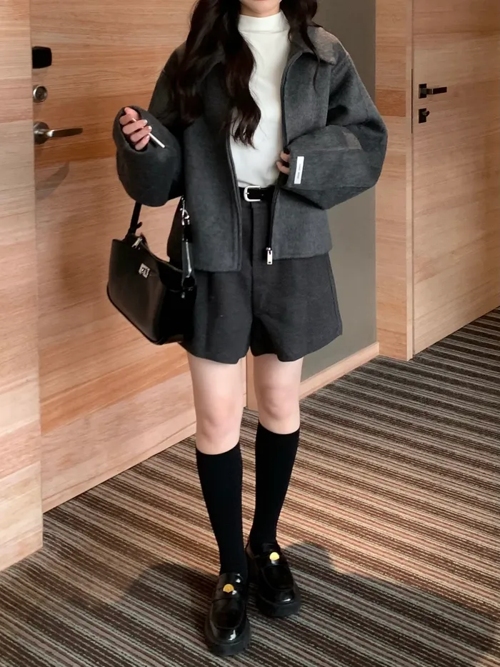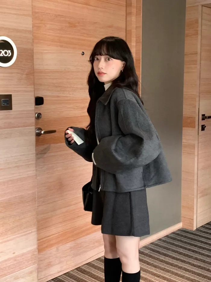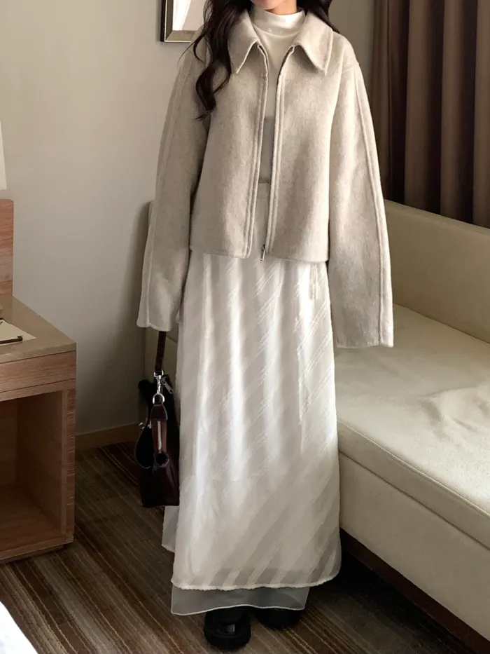 Jan,一起看雪吧❄️100%短版拉鍊羊毛大衣(現貨)