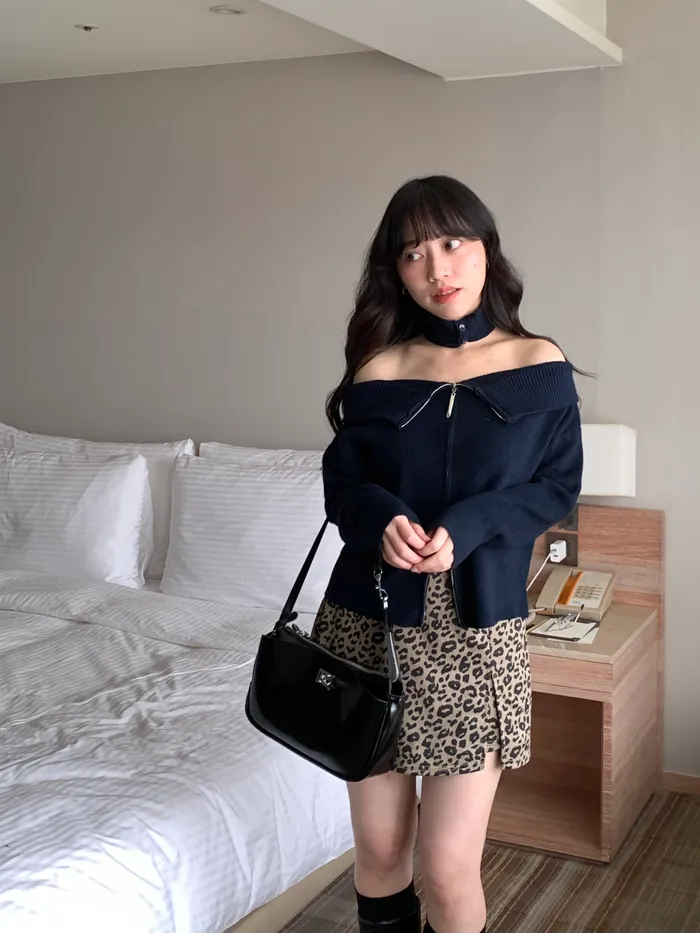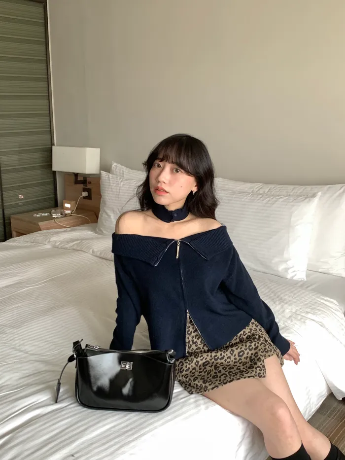 Jan,微辣首選!附圍脖一字領針織上衣