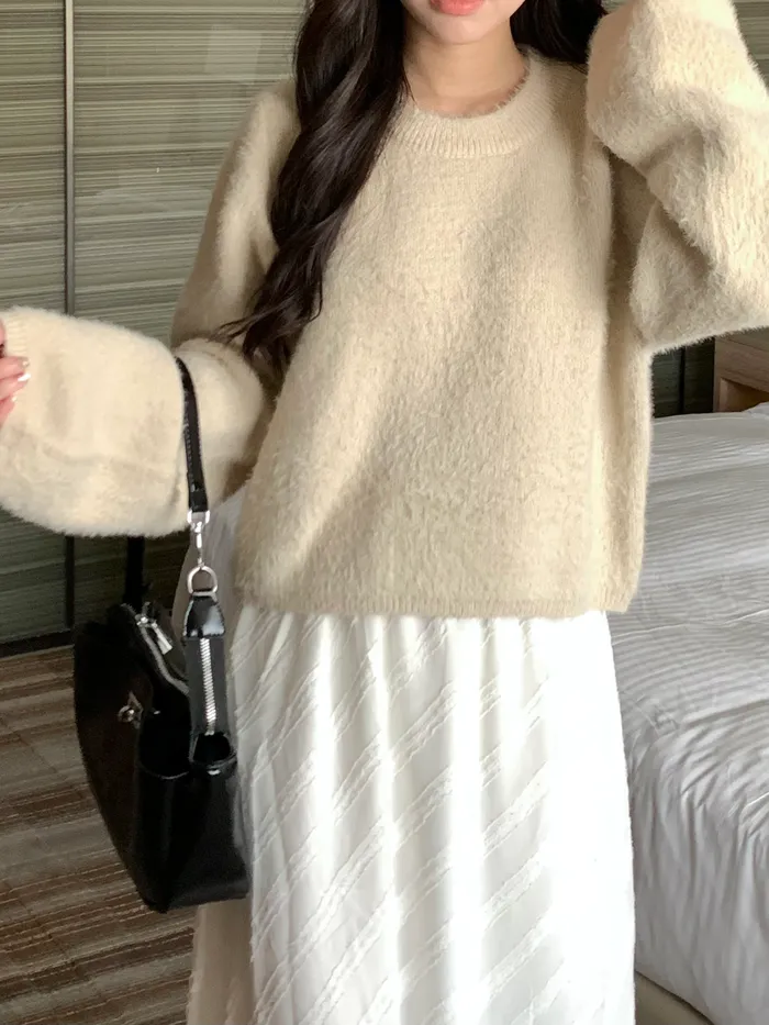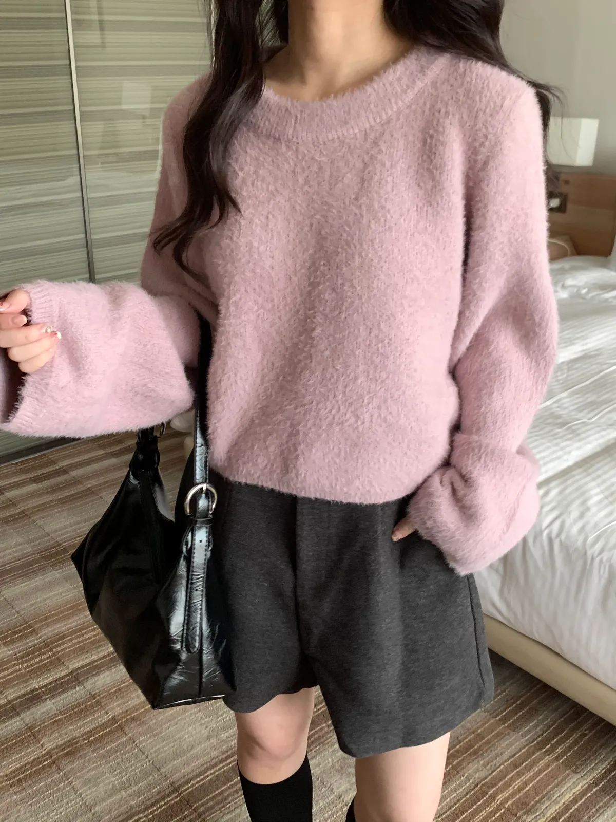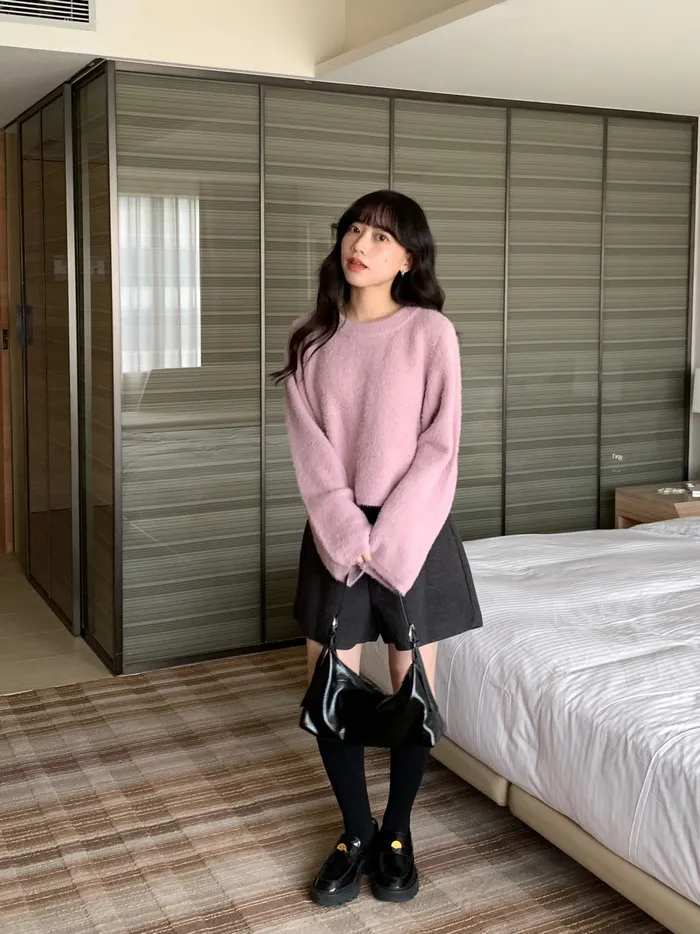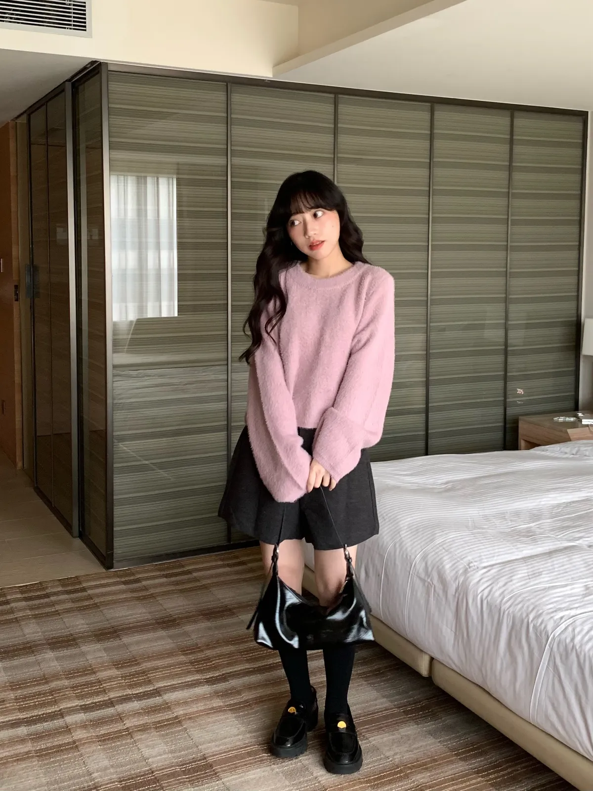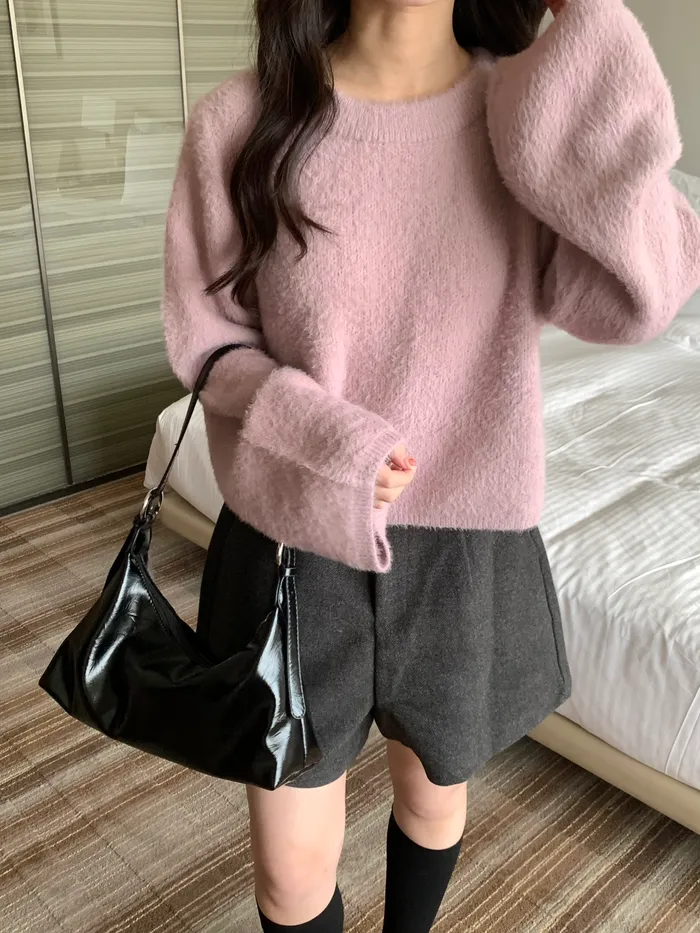Jan,溫柔爆擊💘海馬毛短版上衣(2colors)