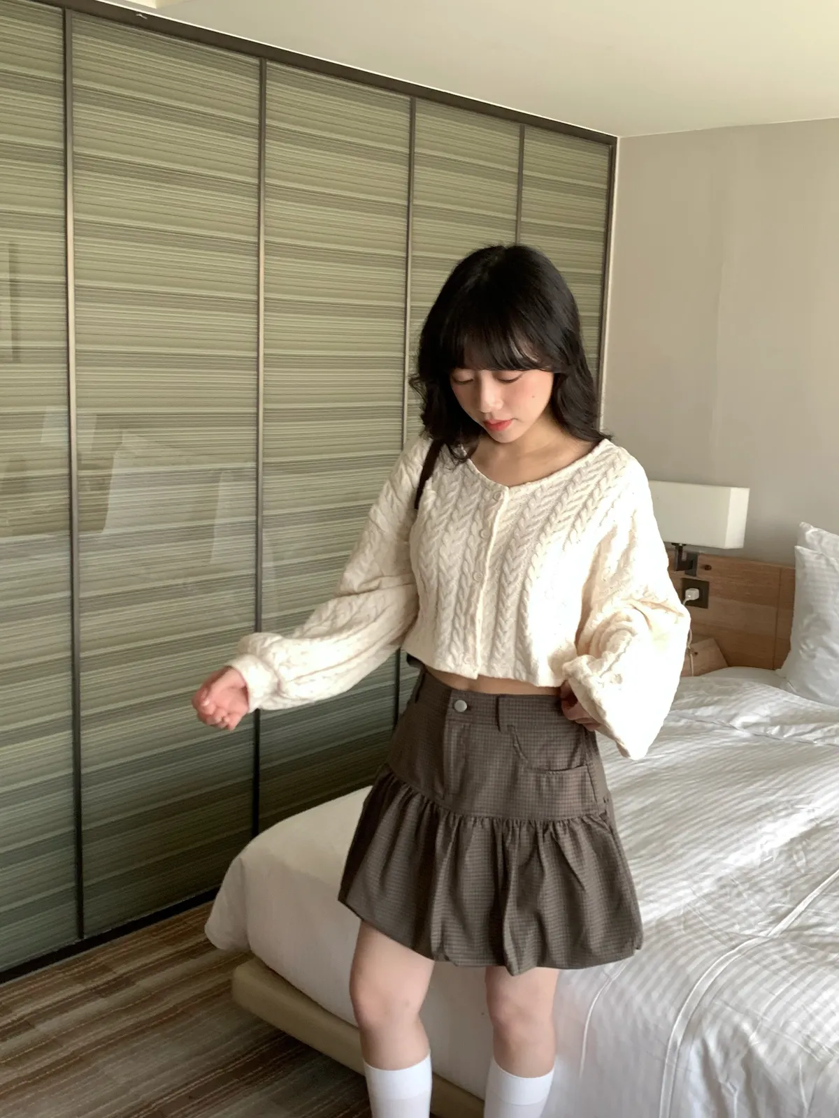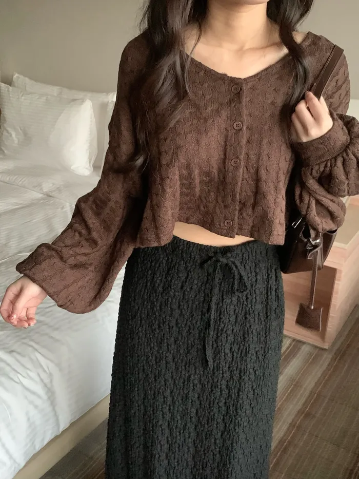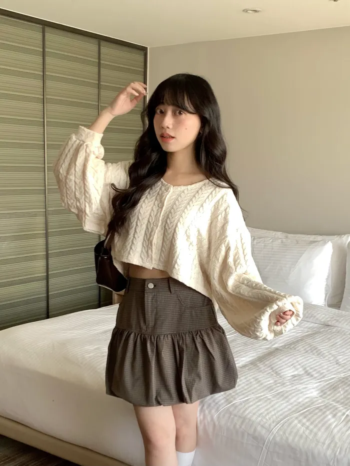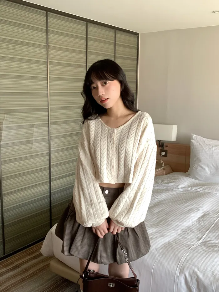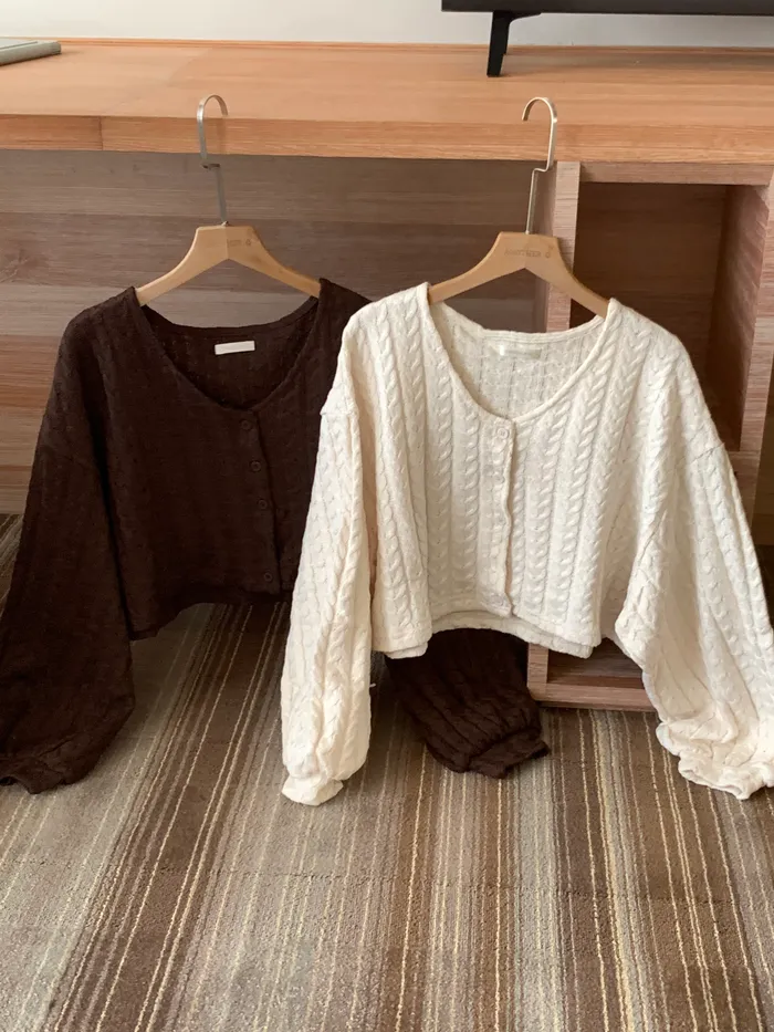 Jan,溫柔可愛兼具短版麻花針織上衣