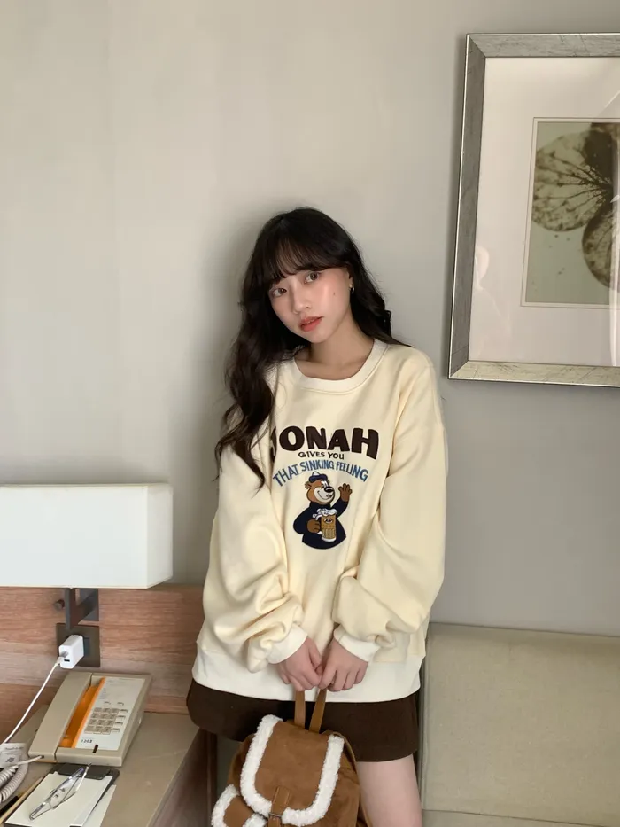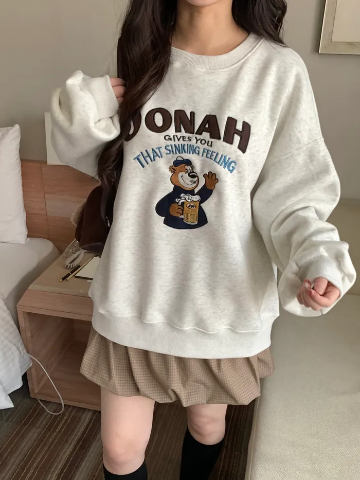 Jan,喝酒熊熊🐻嬰兒絨大學T