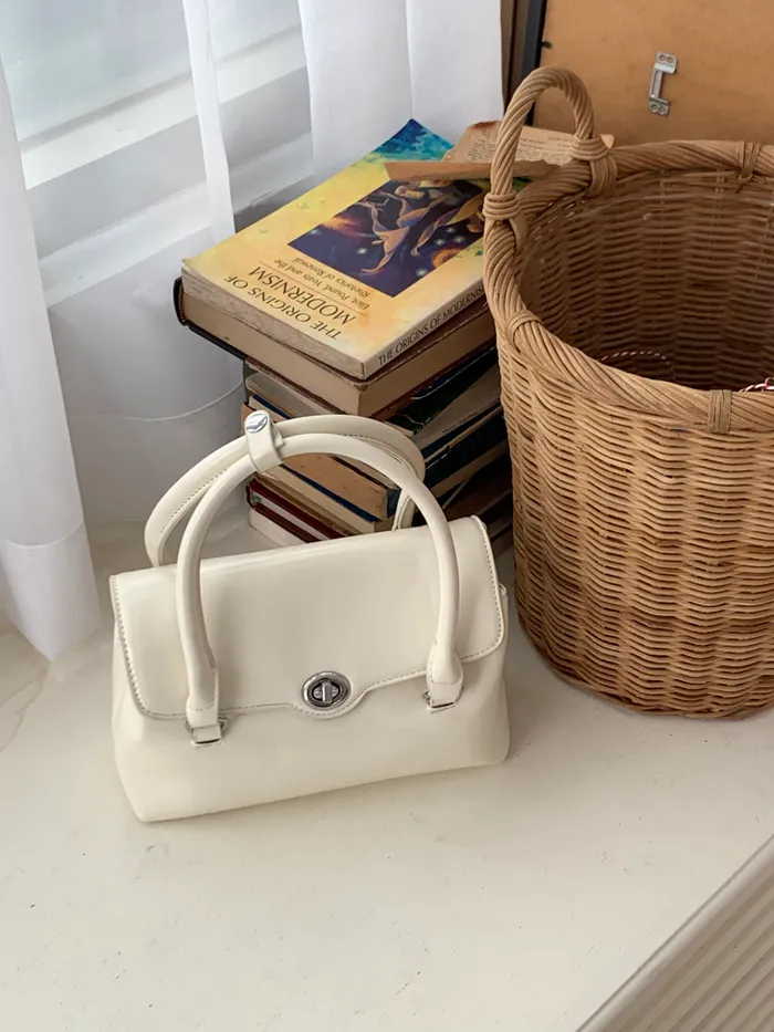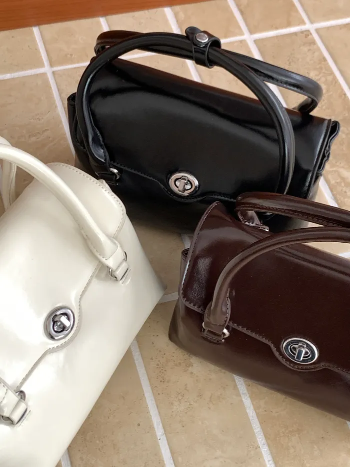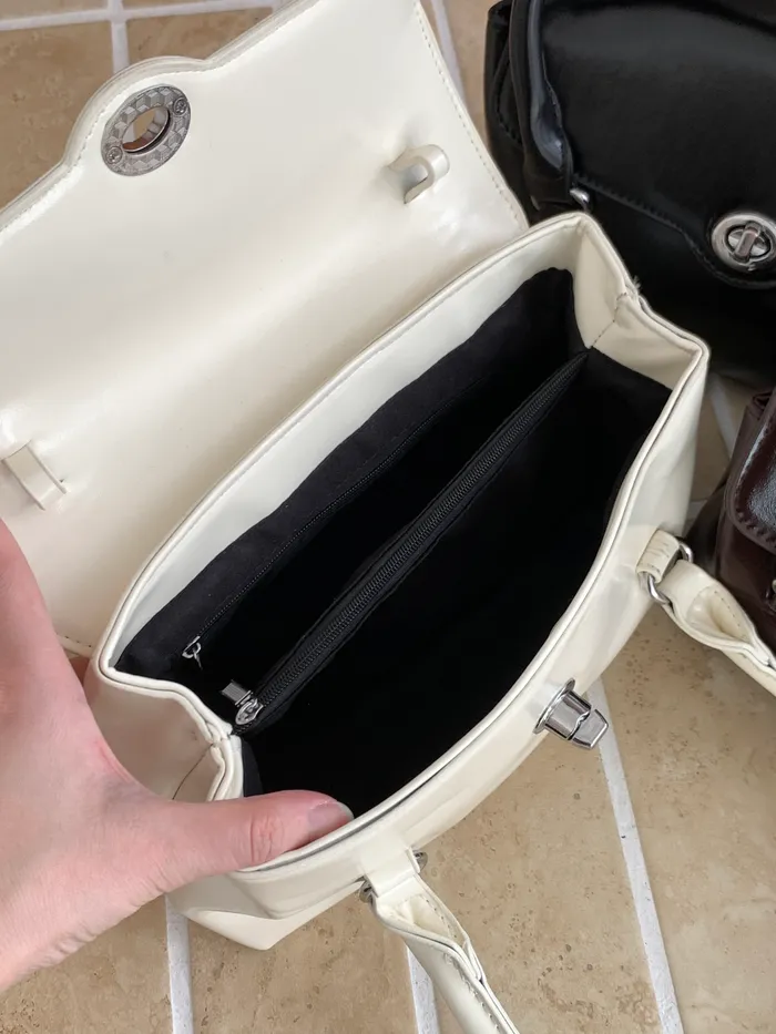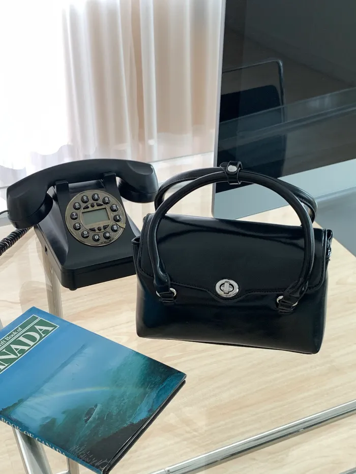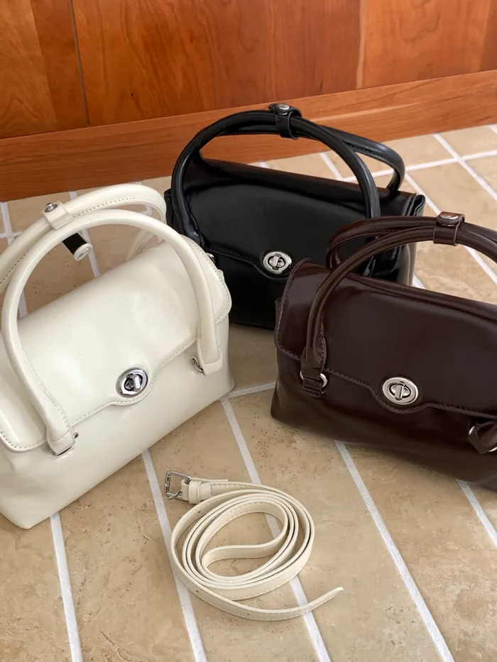 - 商品資訊 - 材質:PU皮革復古亮皮感的豆腐小方包搭配質感旋轉鈕釦可以手提也可以斜肩背(背帶可調)容量也大有兩層拉鍊內袋 有分隔 長23寬9高15cm包包可能在運送途中被擠壓產生壓痕,介意者請勿下單