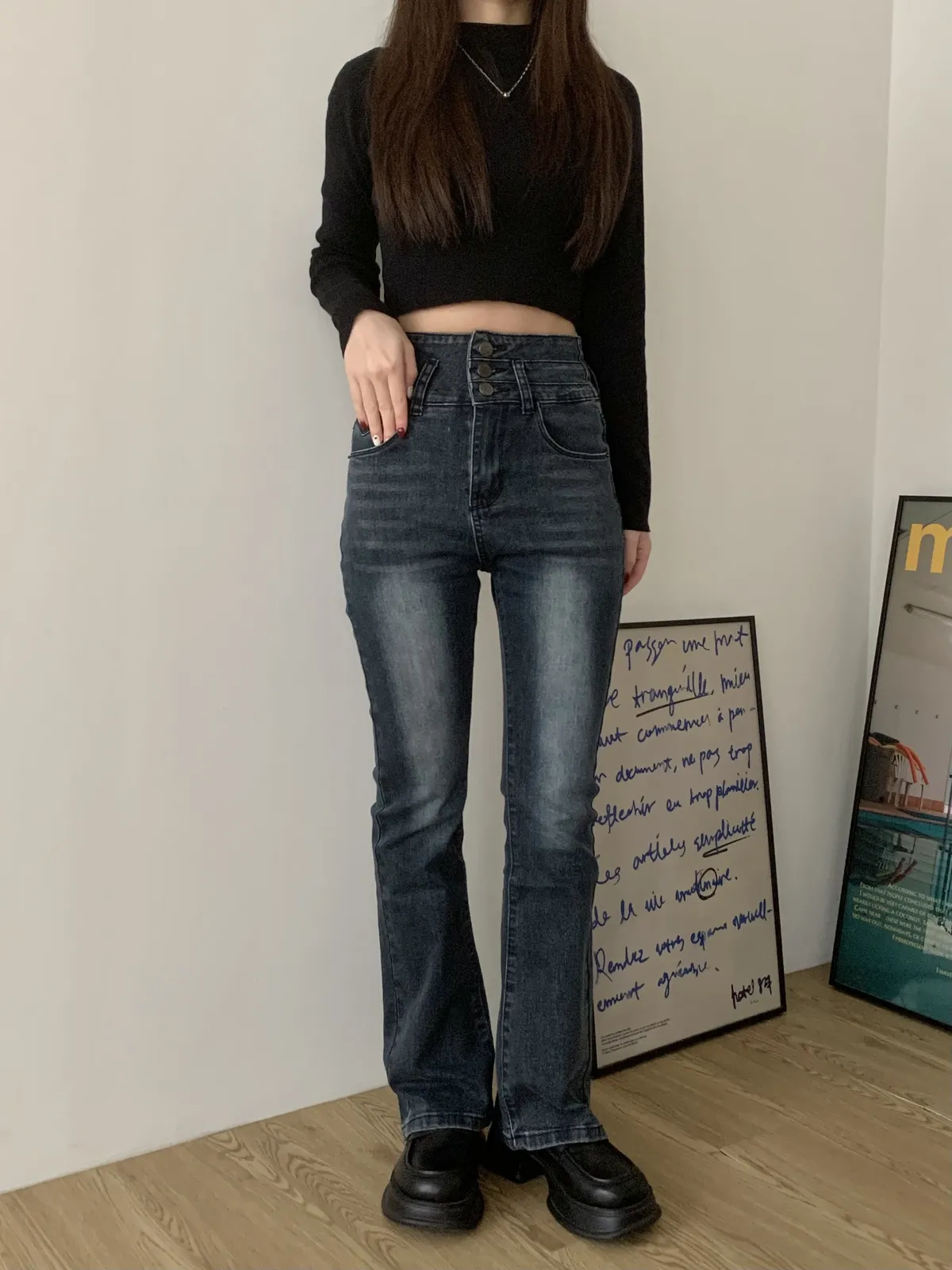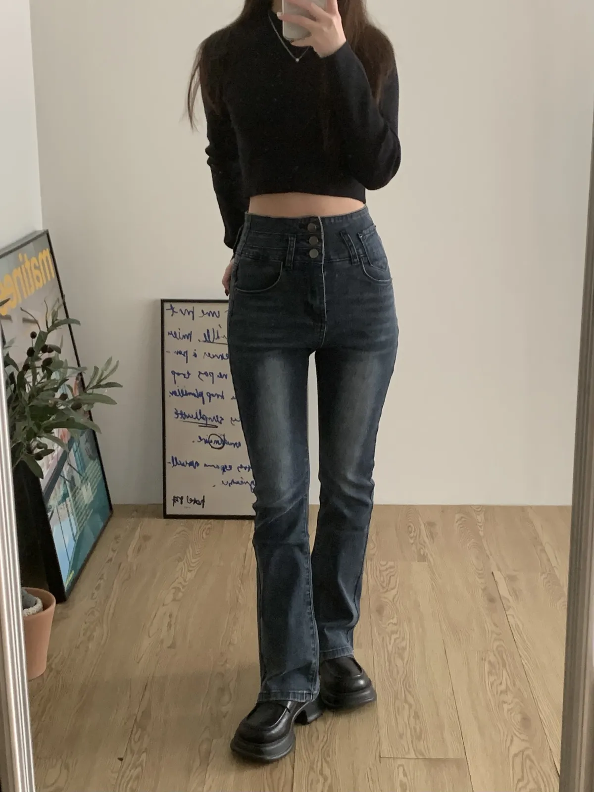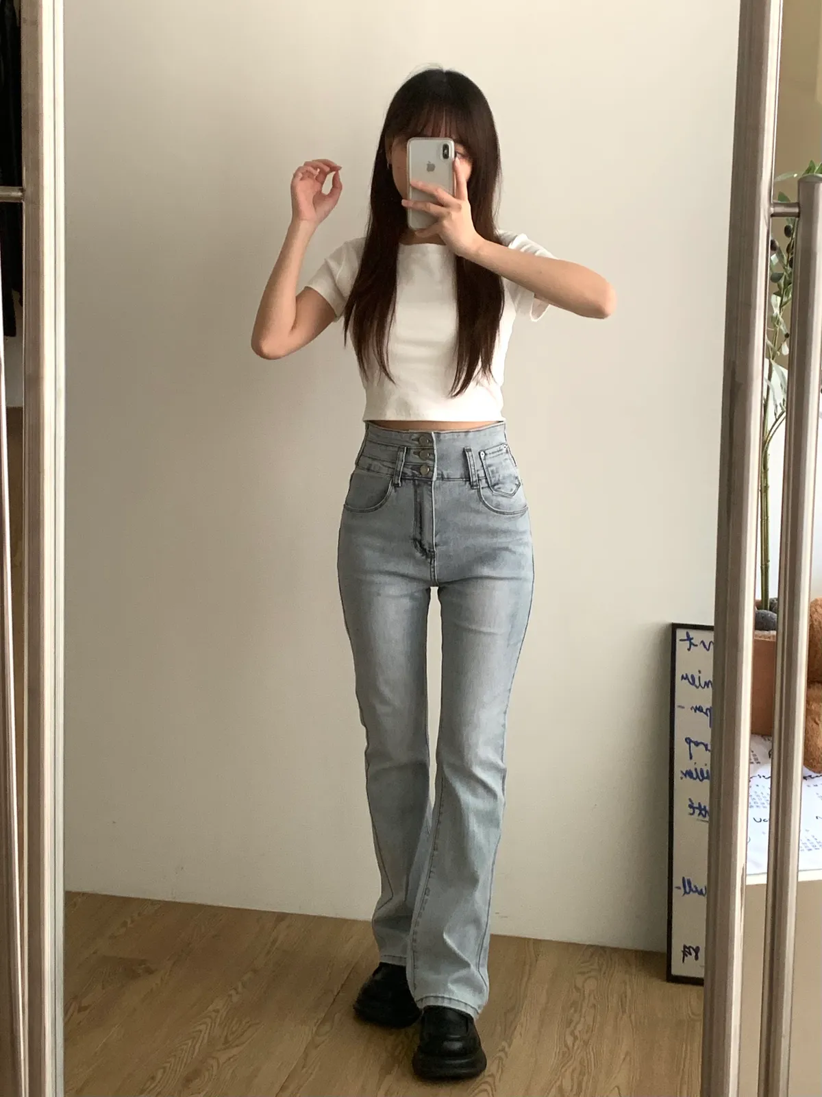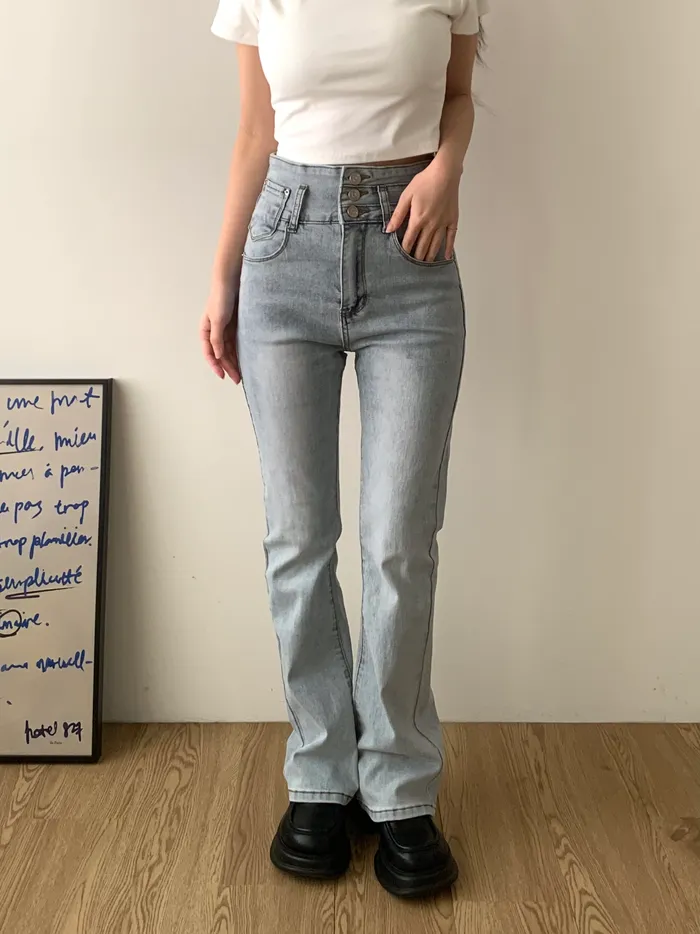 材質:版型高腰激瘦,微微彈性,三排扣設計