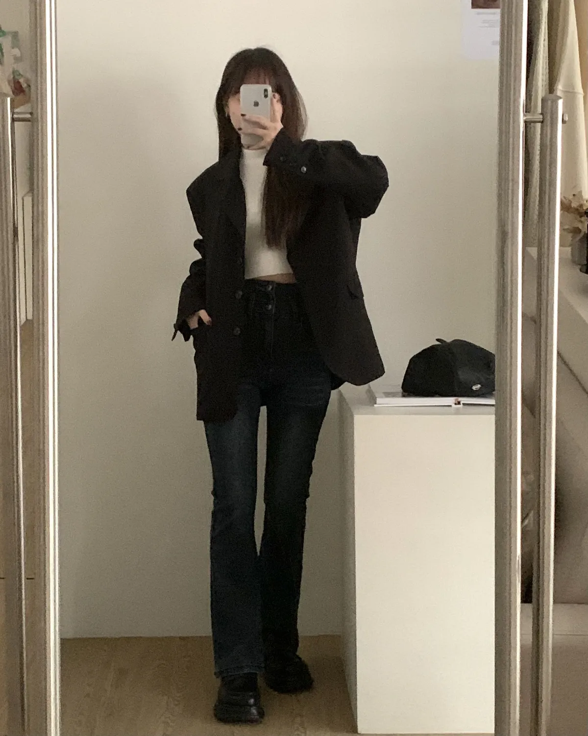 瘦瘦女小隻女穿完全沒問題,微微喇叭褲型