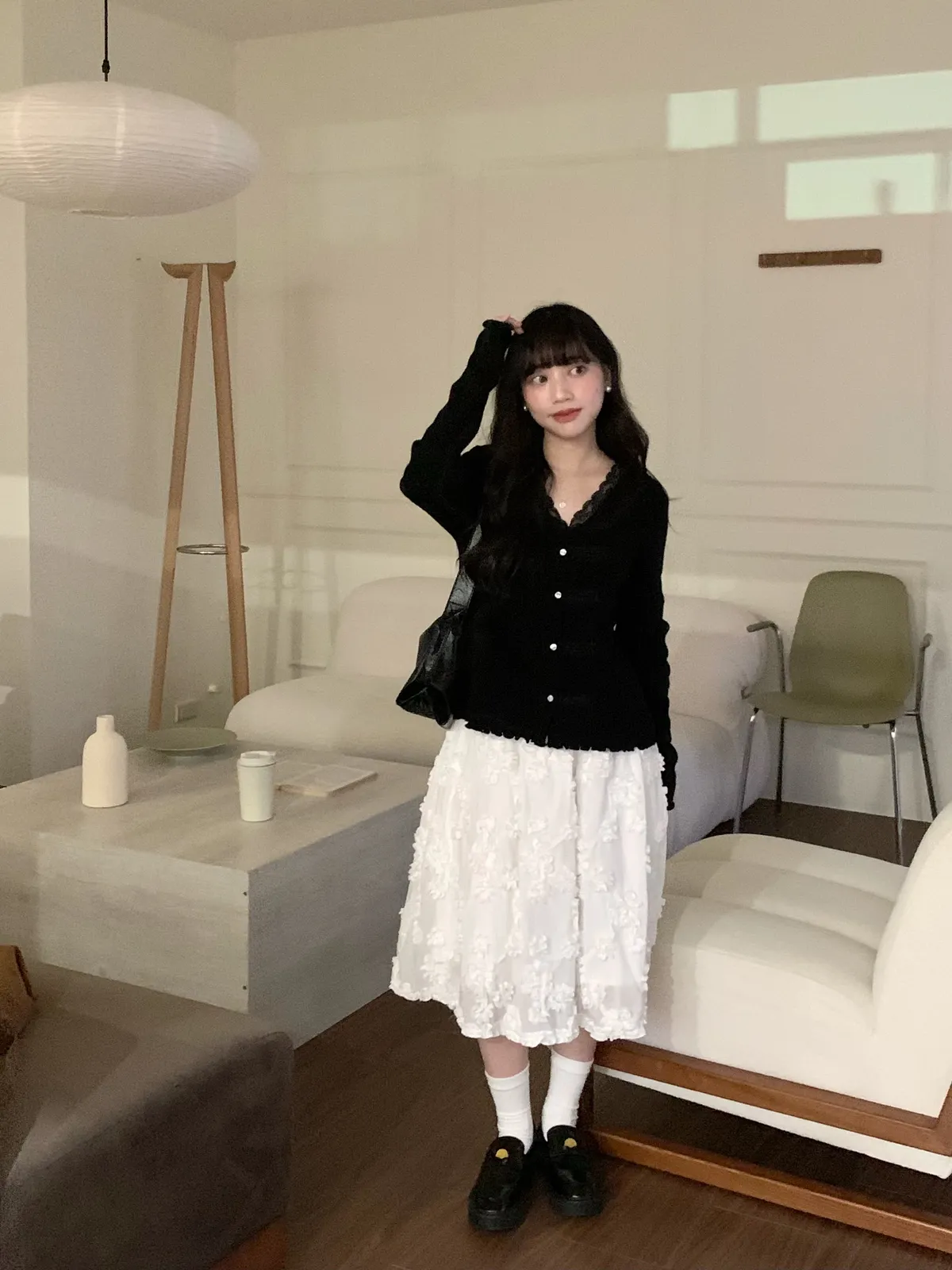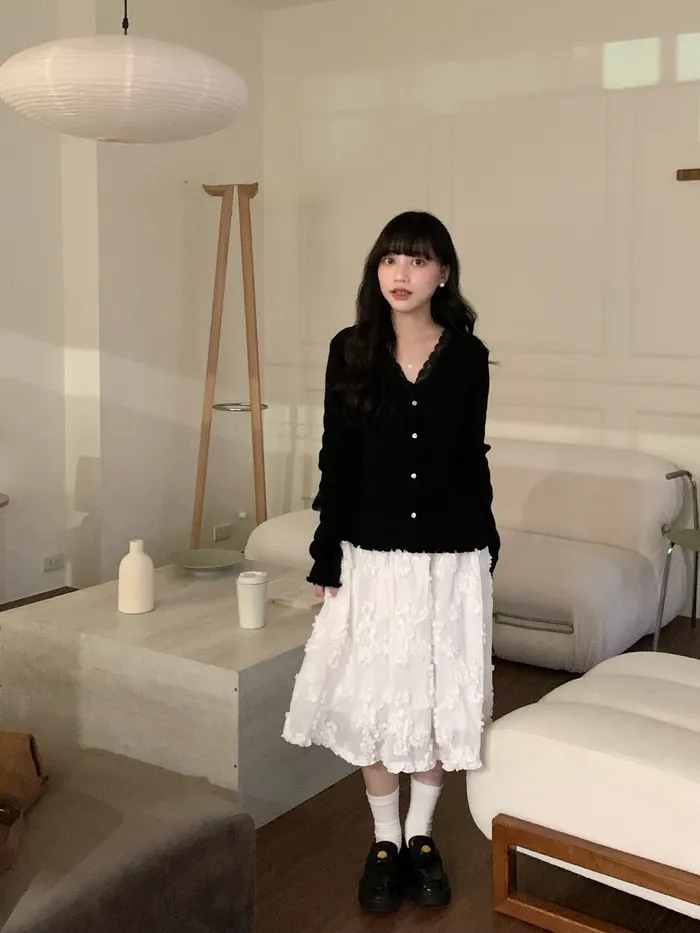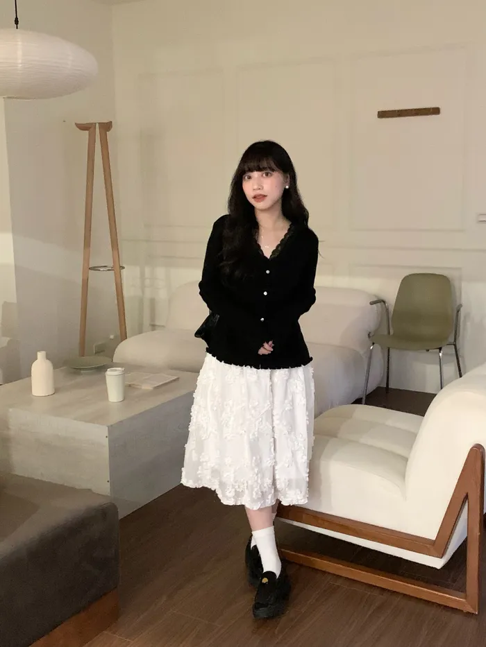 下擺還有拼接木耳邊,搭配毛衣衛衣都很合適!