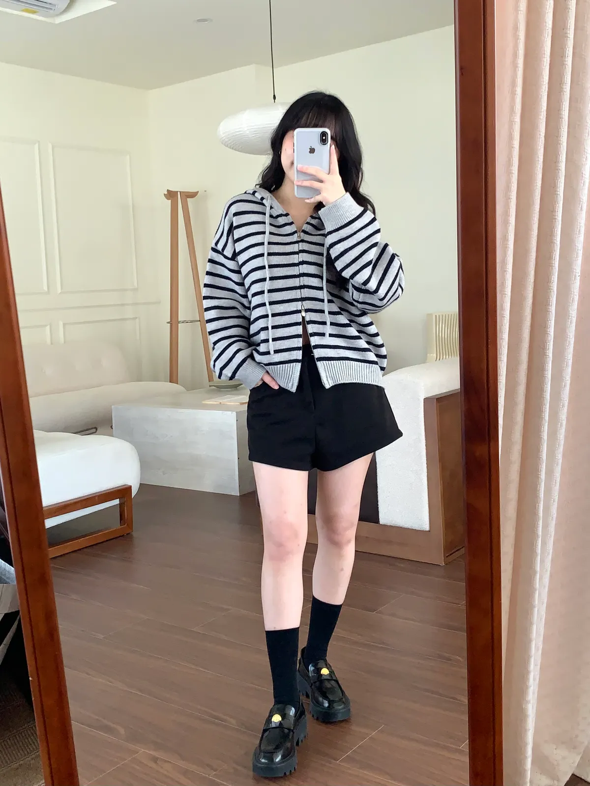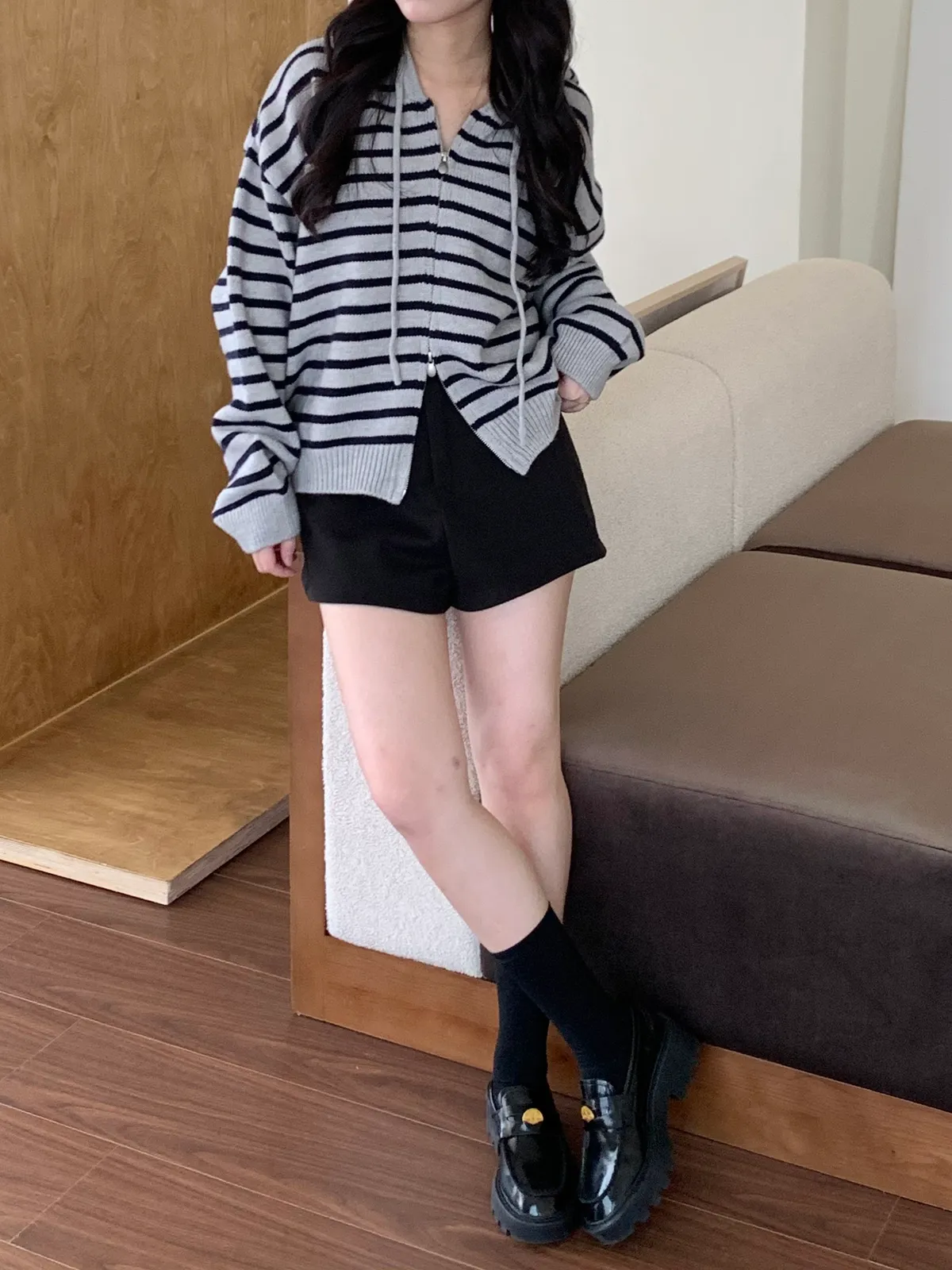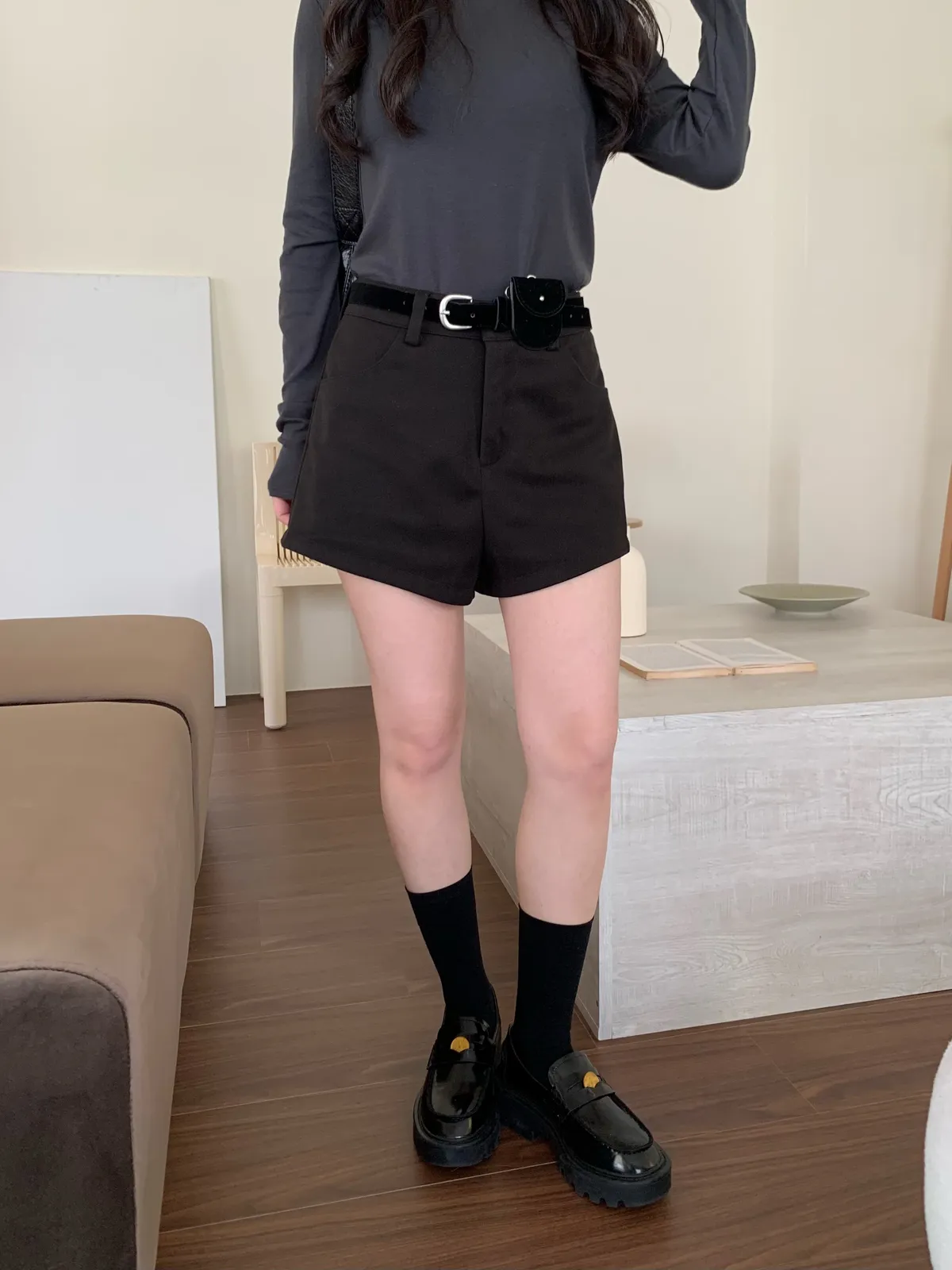 版型是褲腳斜邊的設計,穿起來更顯腿長,還有一點微辣感