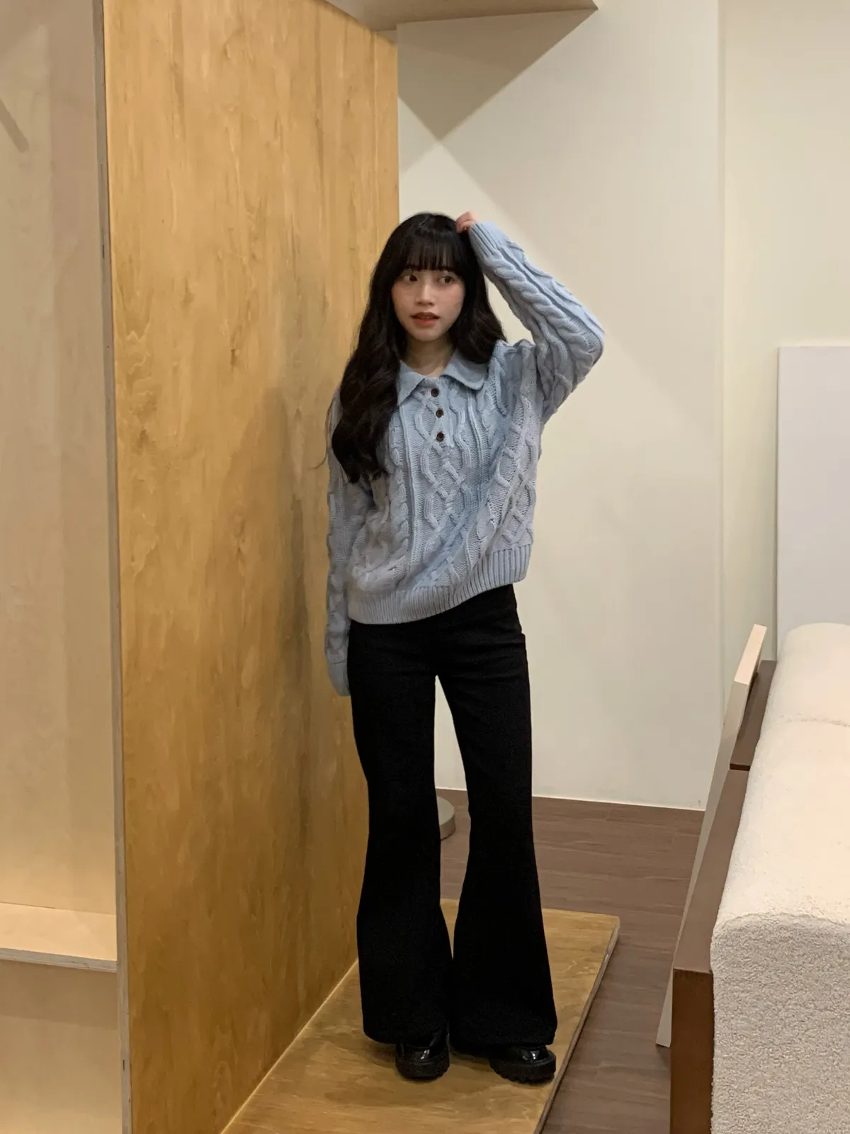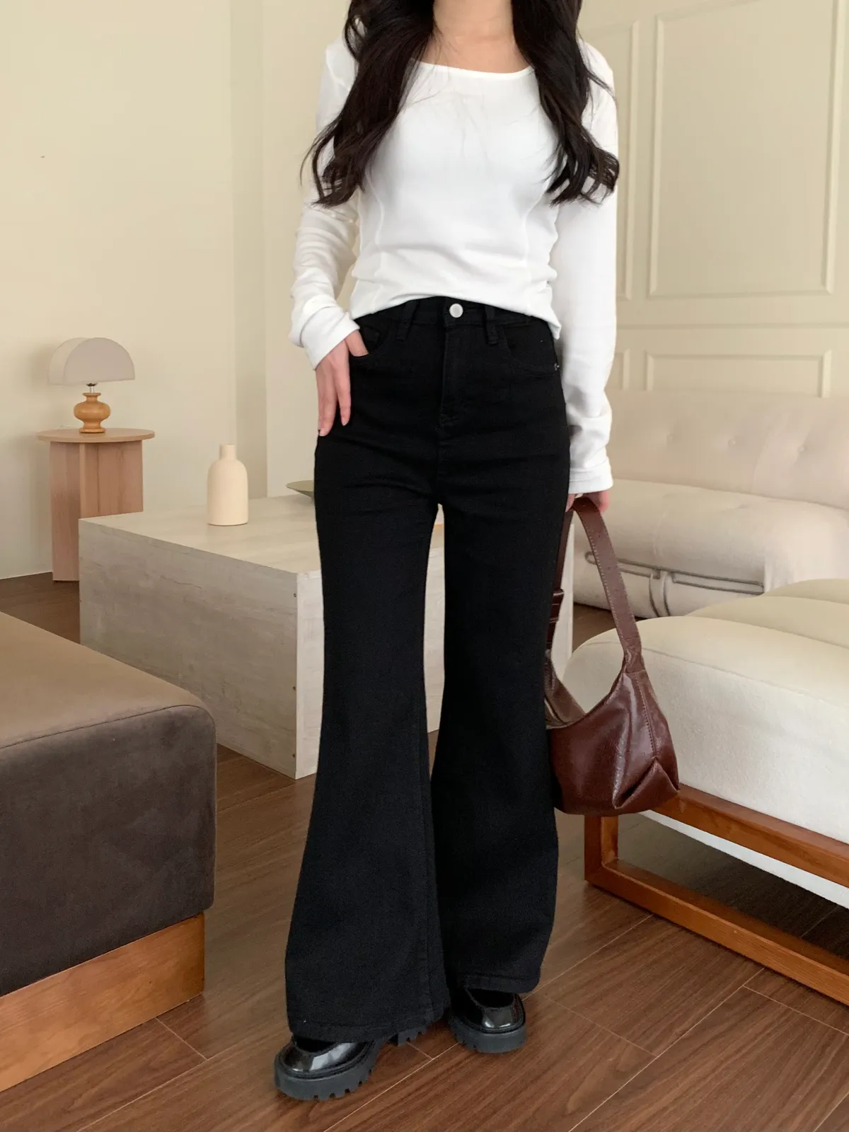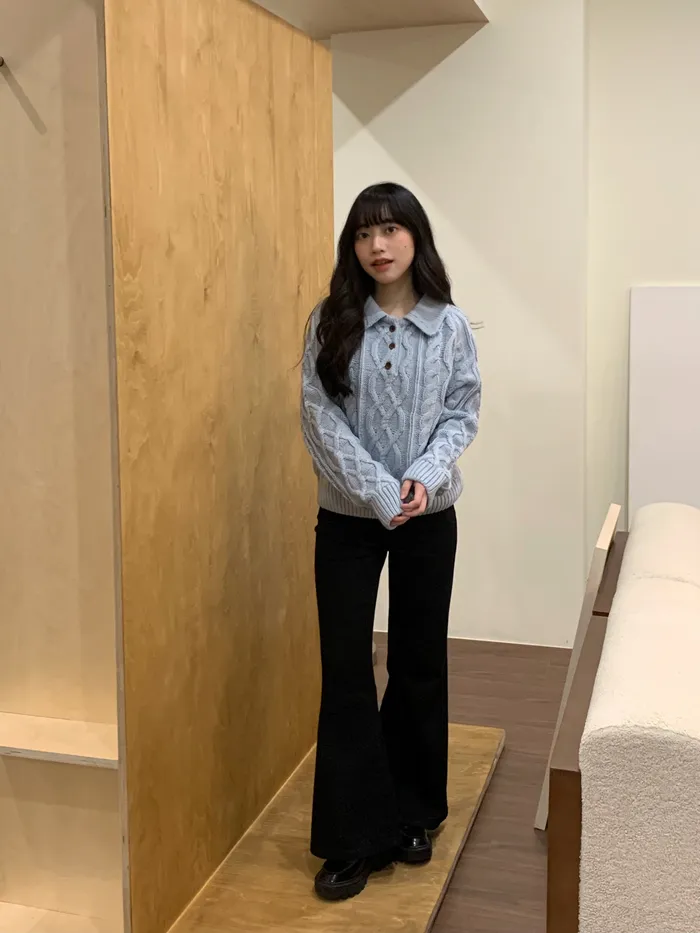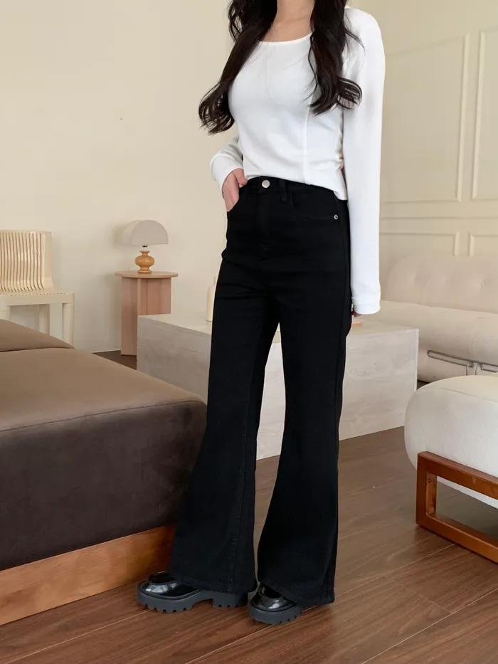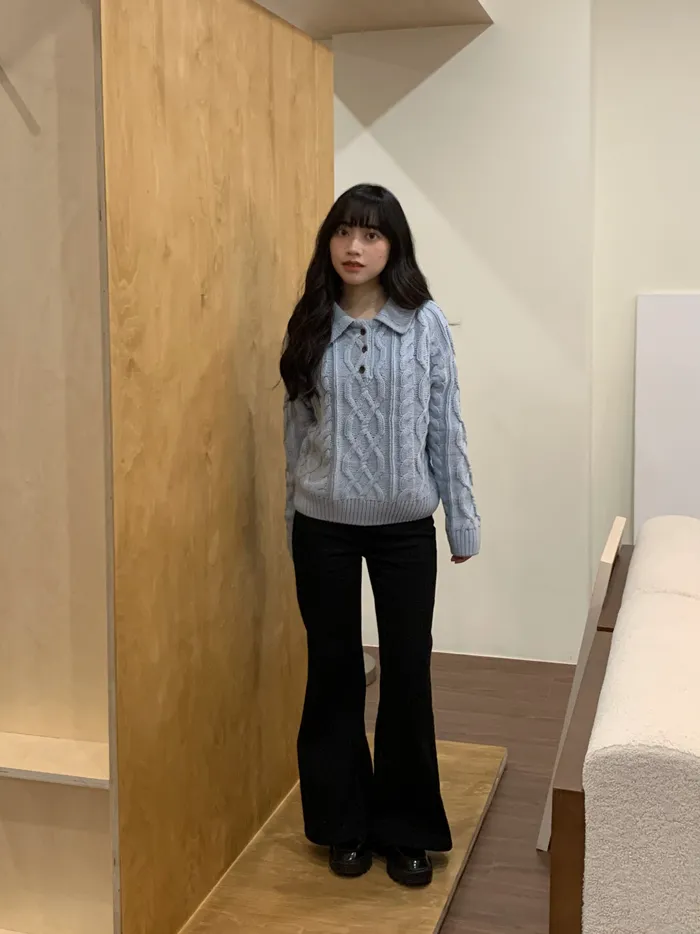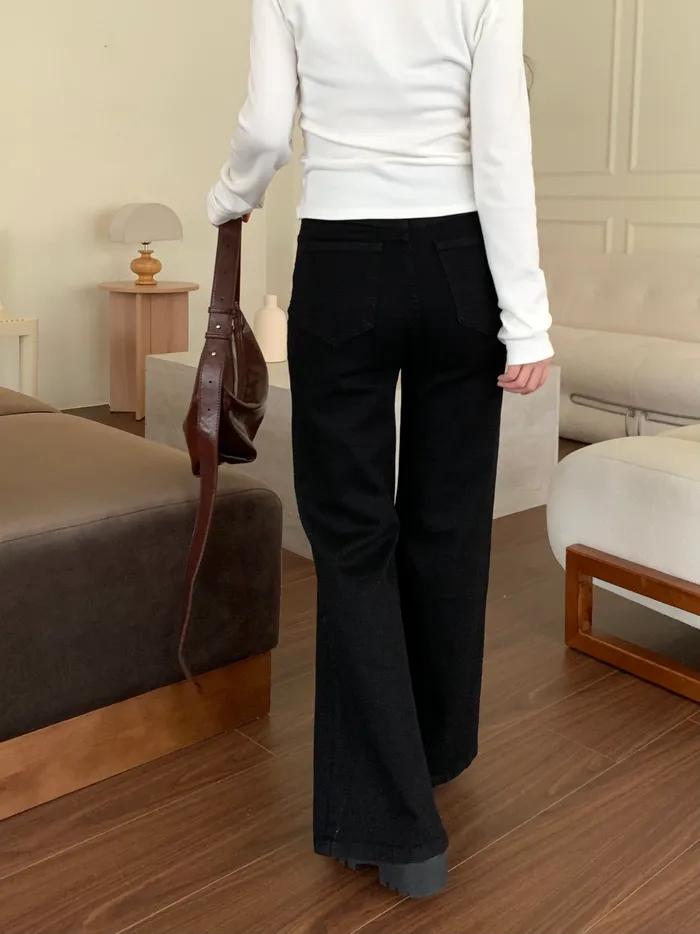 是比較貼臀跟大腿的版型的喇叭褲型唷!
