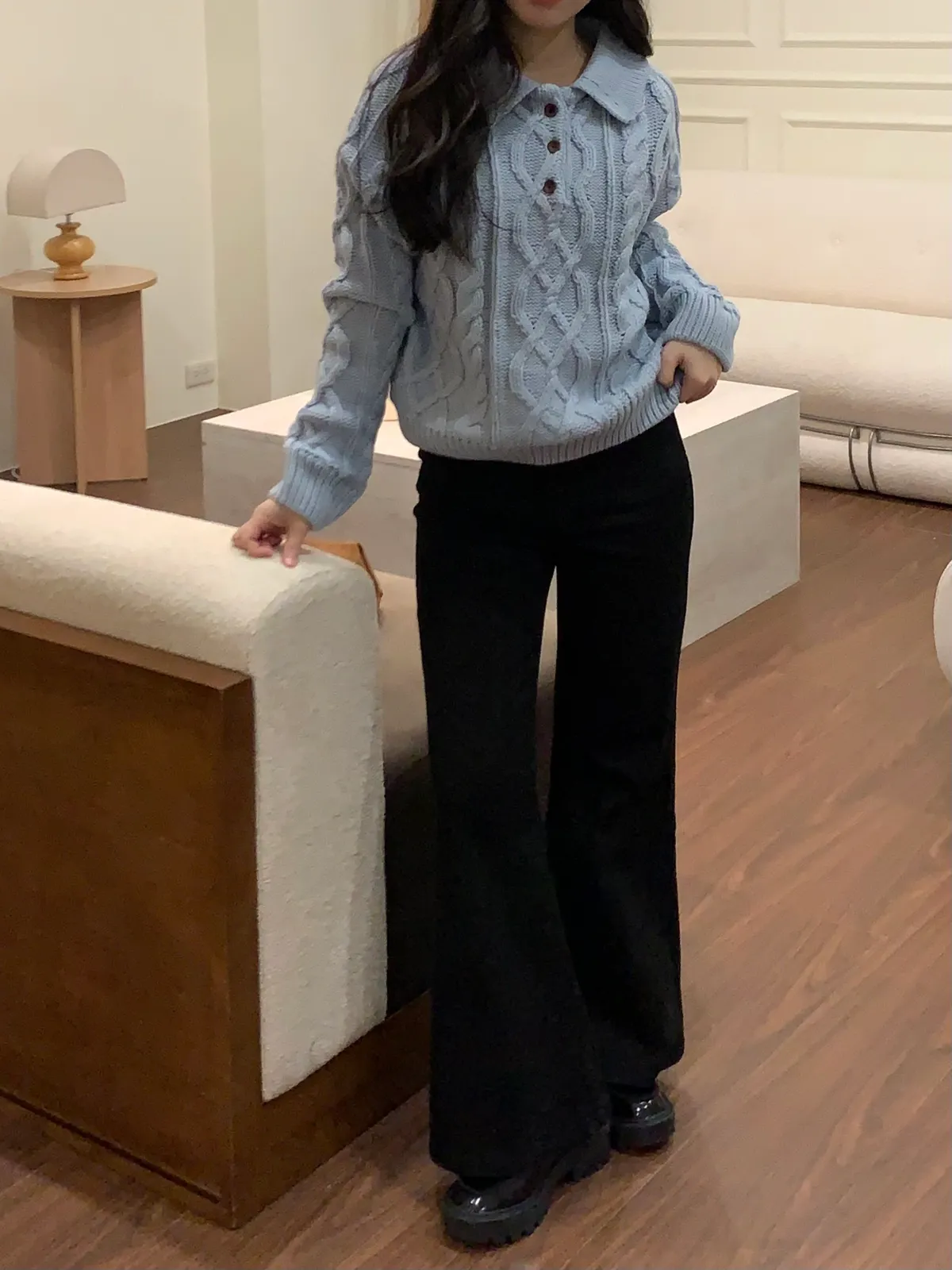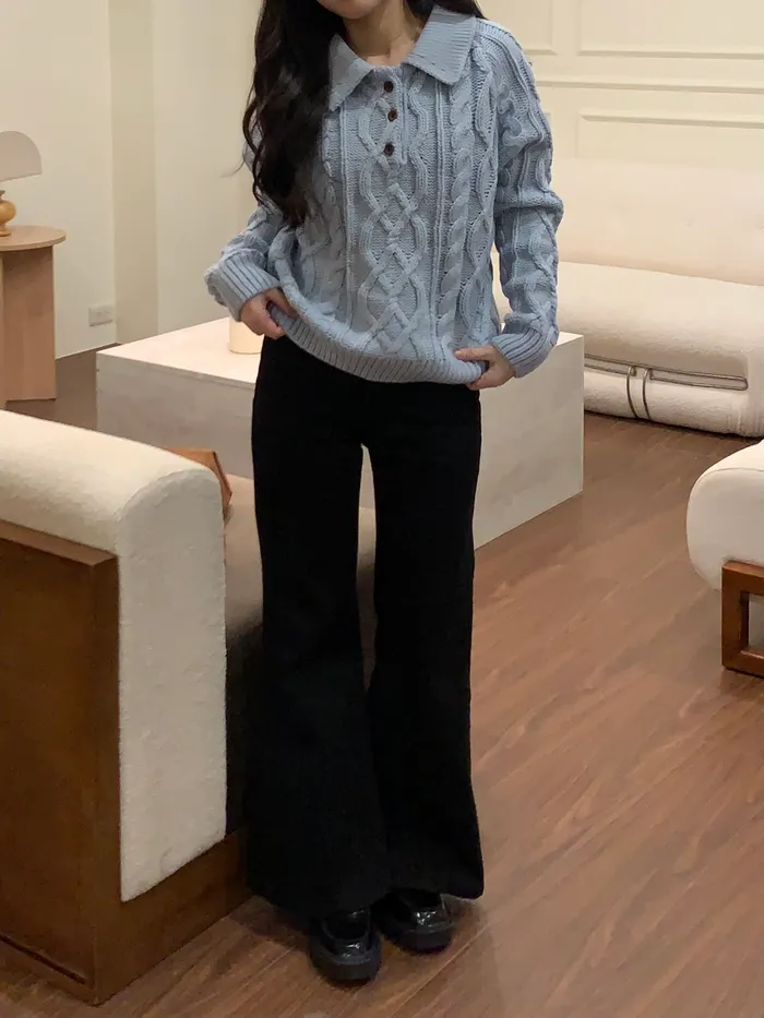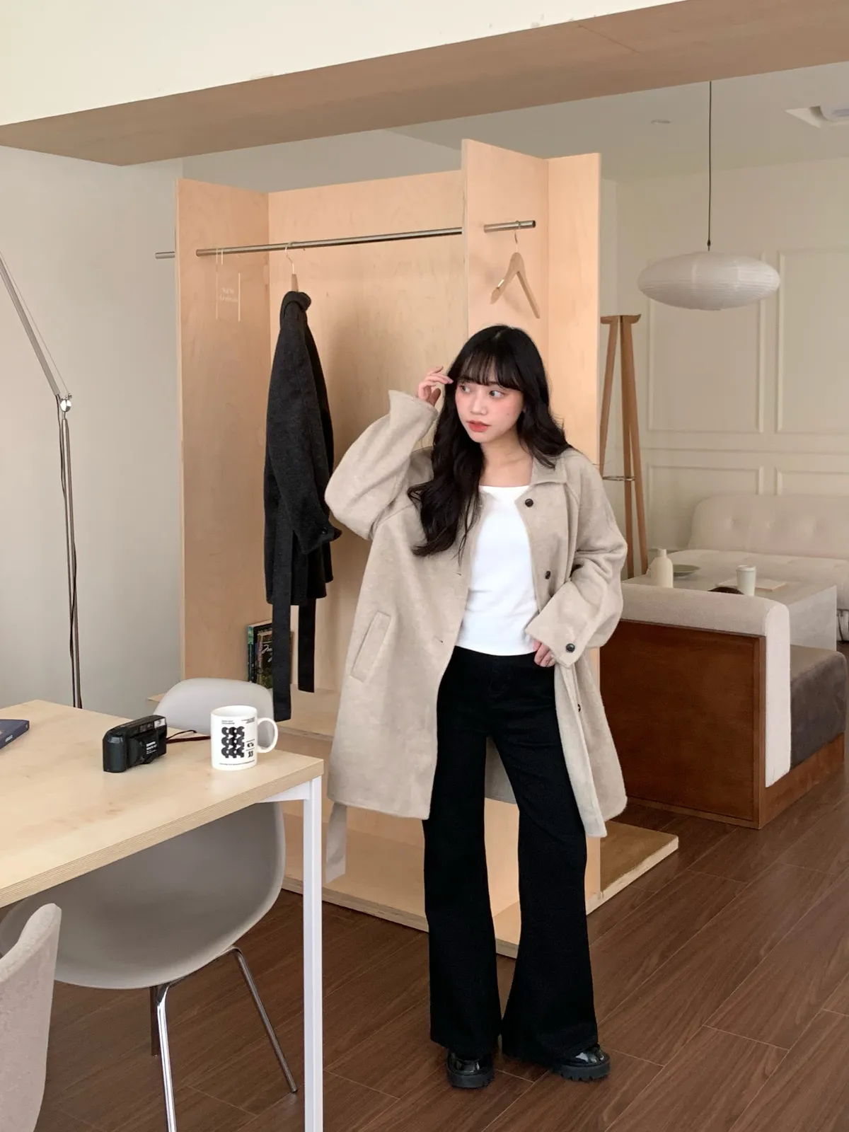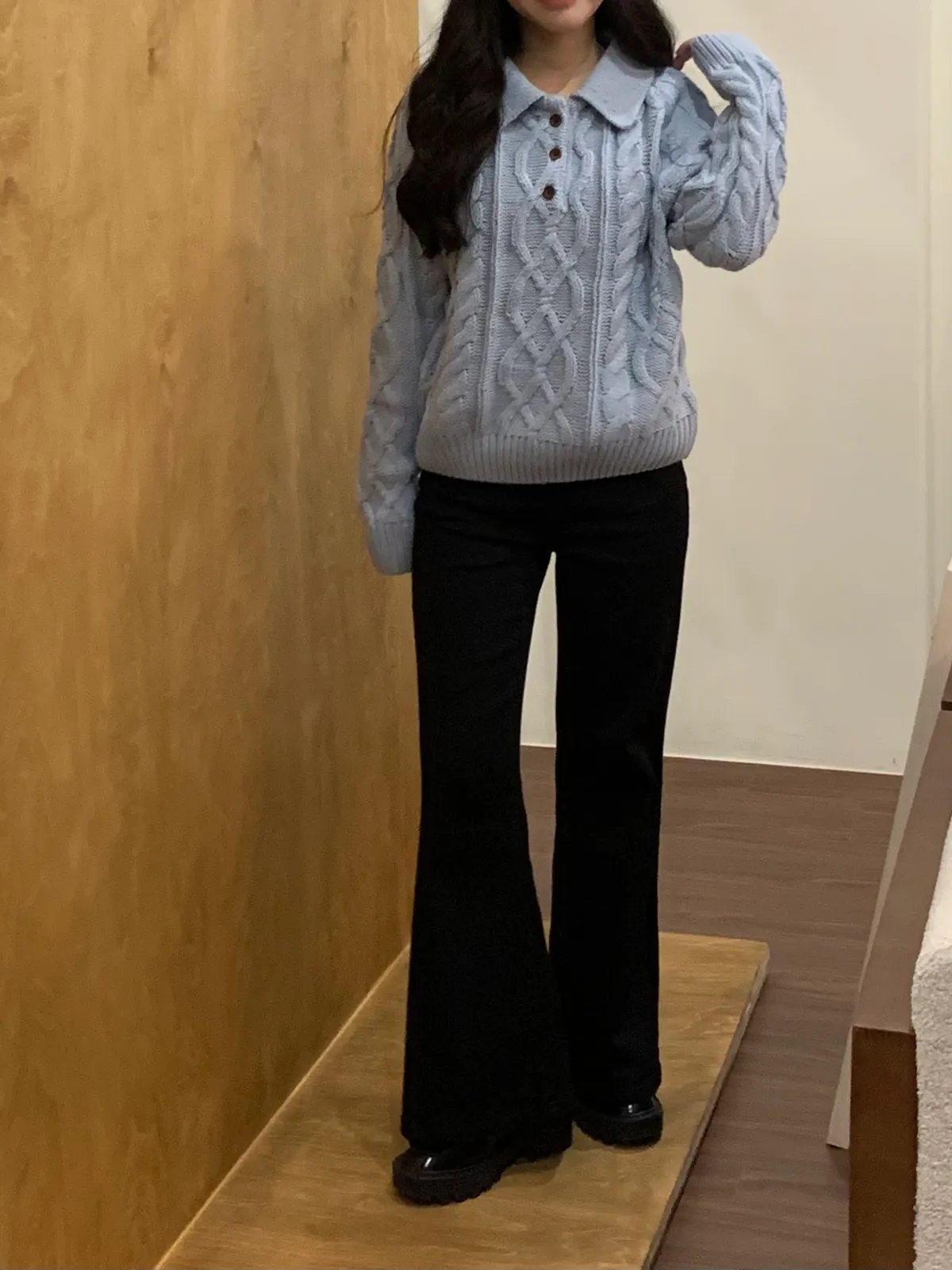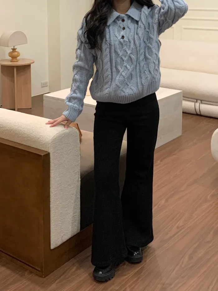 是比較貼臀跟大腿的版型的喇叭褲型唷!