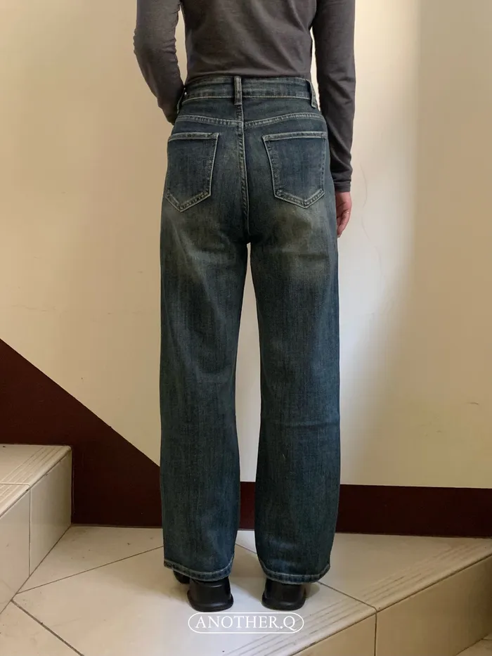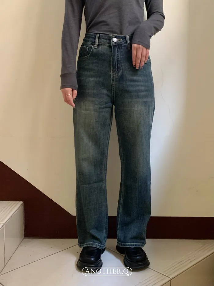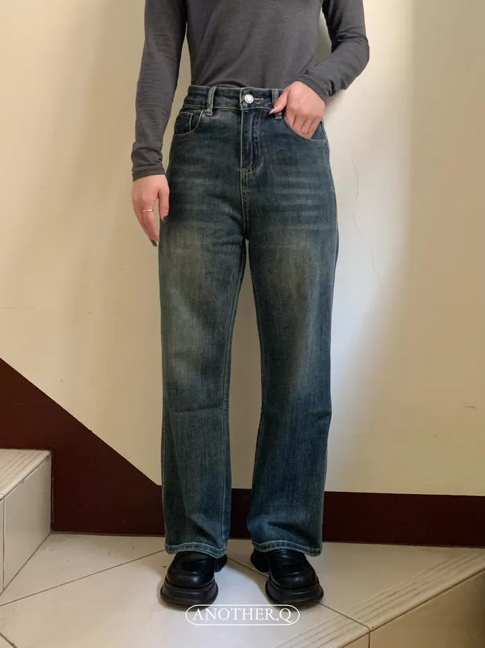 現貨,小個子做舊高腰牛仔直筒寬褲