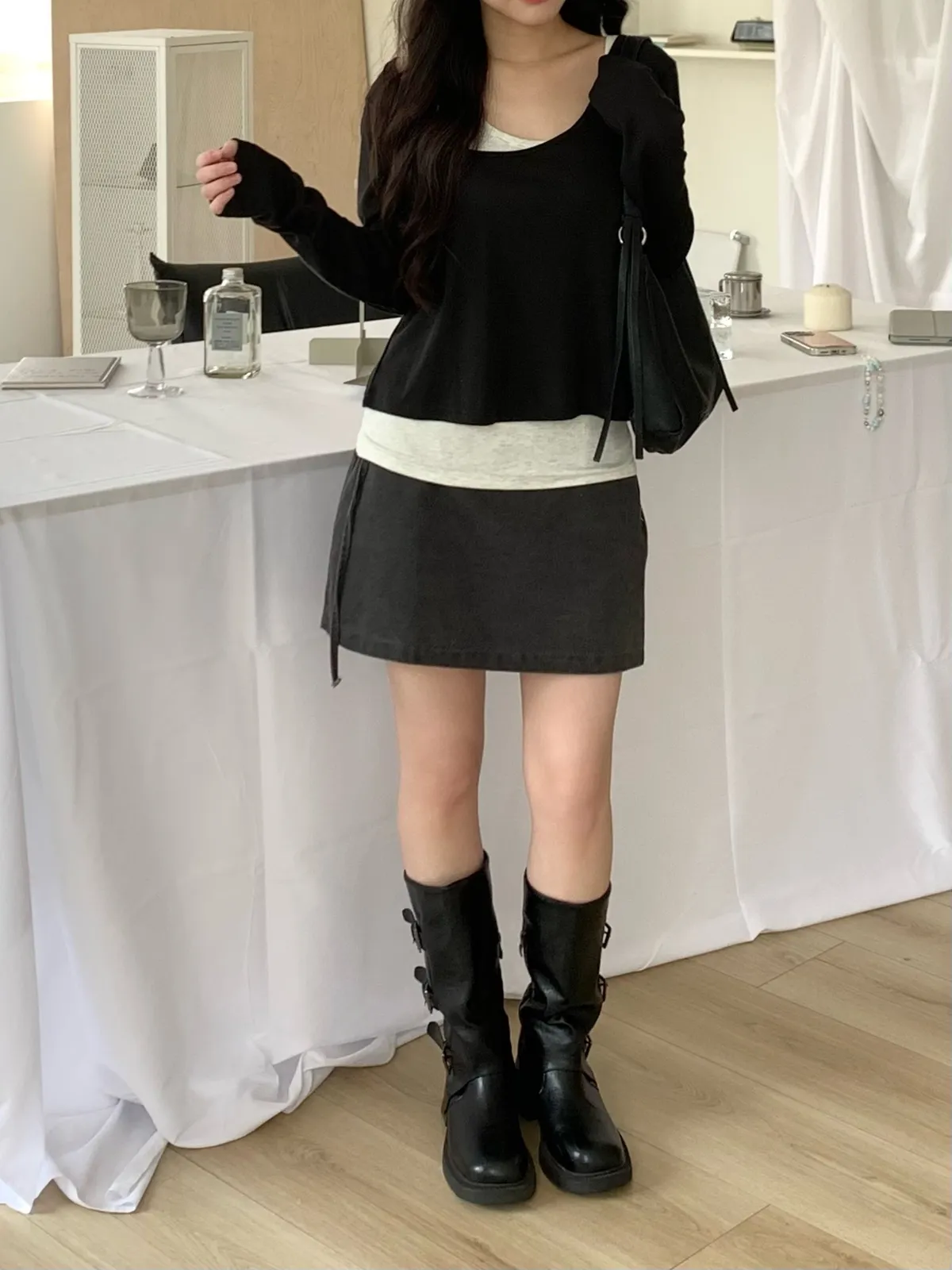 Mar.浪漫節奏綁帶設計A字裙(2colors)