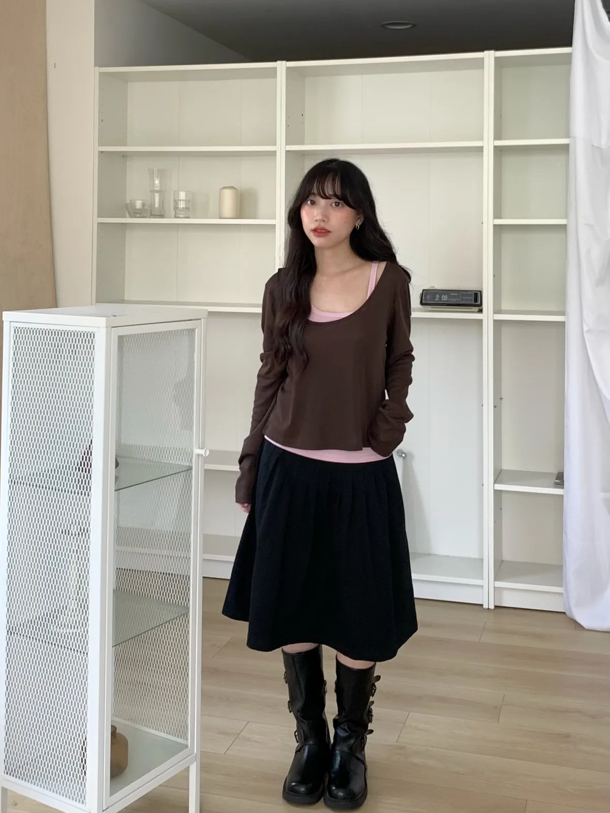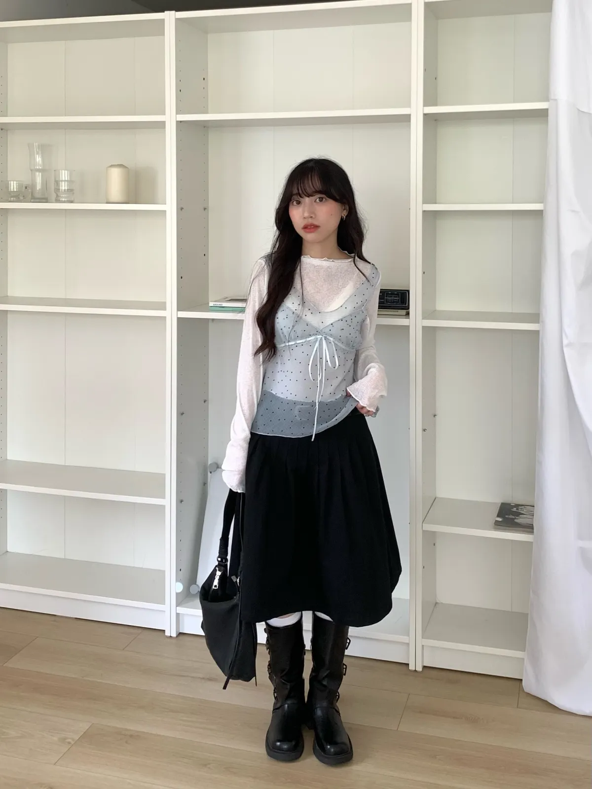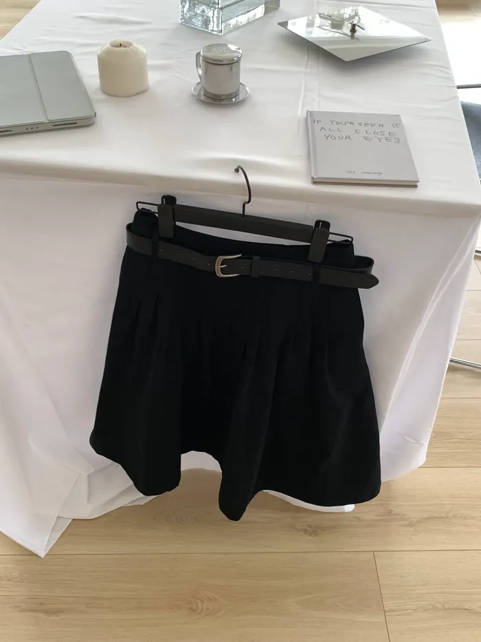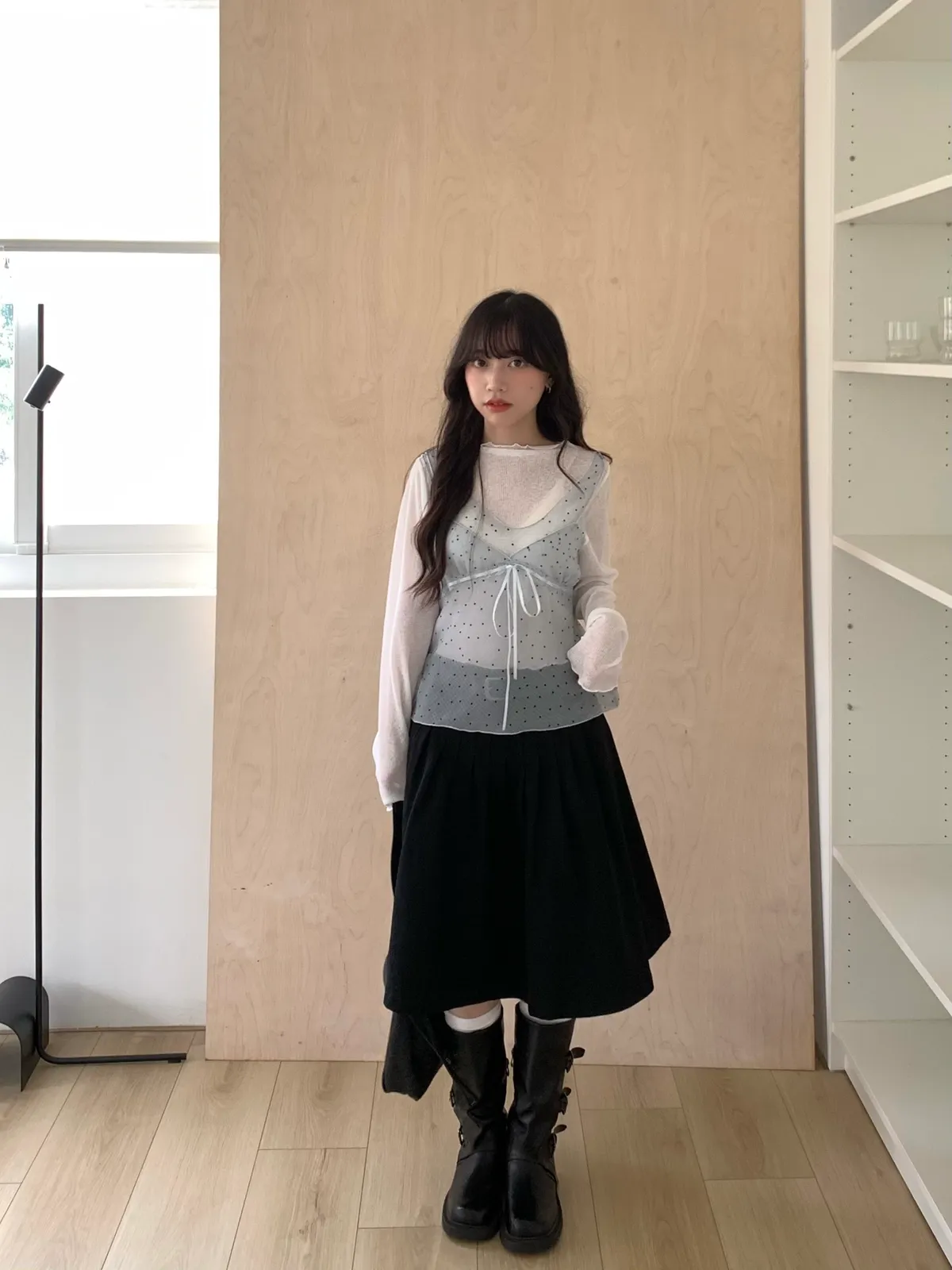 Mar.首爾漫步清冷感壓摺中長裙,附皮帶(2colors)