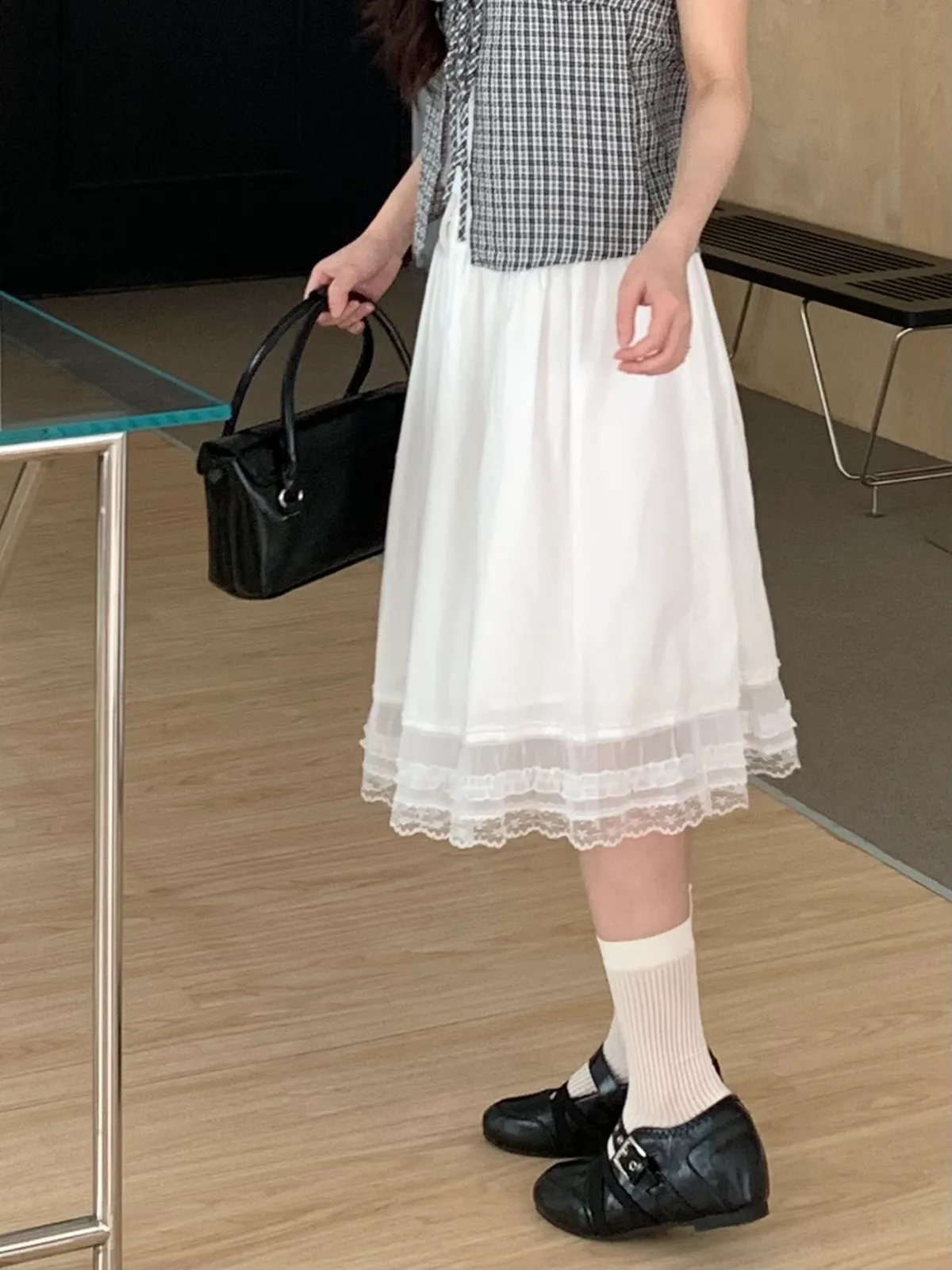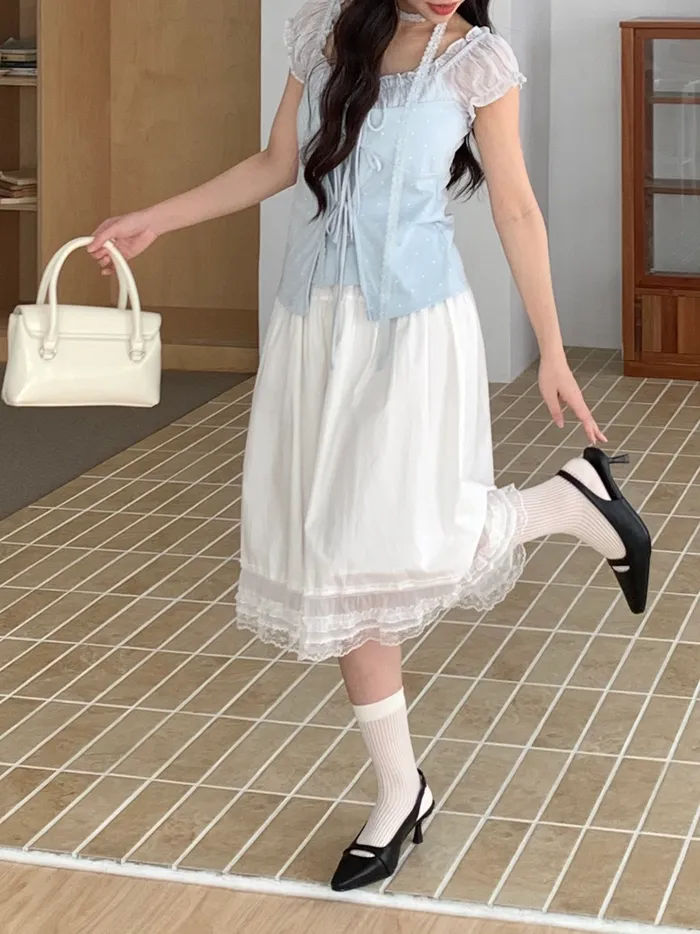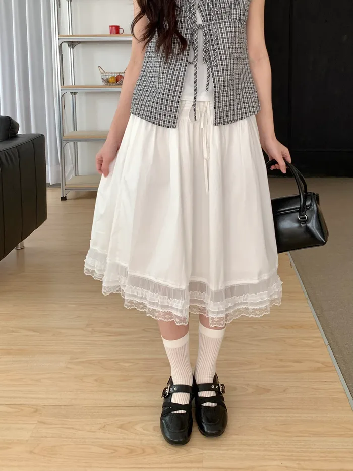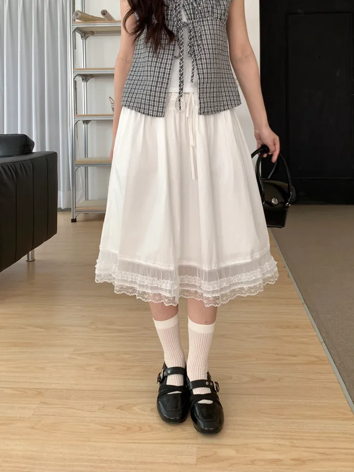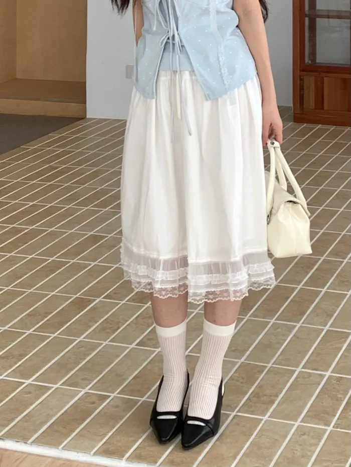 Apr.法式鮮奶油蕾絲中長裙