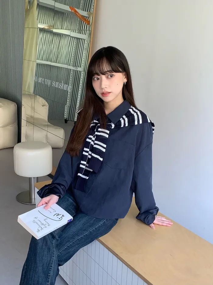 Oct.霧絨感披肩襯衫(2colors)