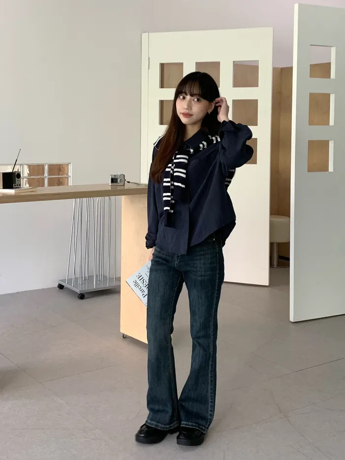 Oct.小個子命定款做舊藍微喇叭牛仔褲