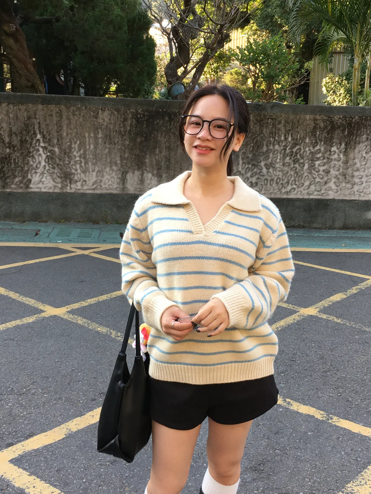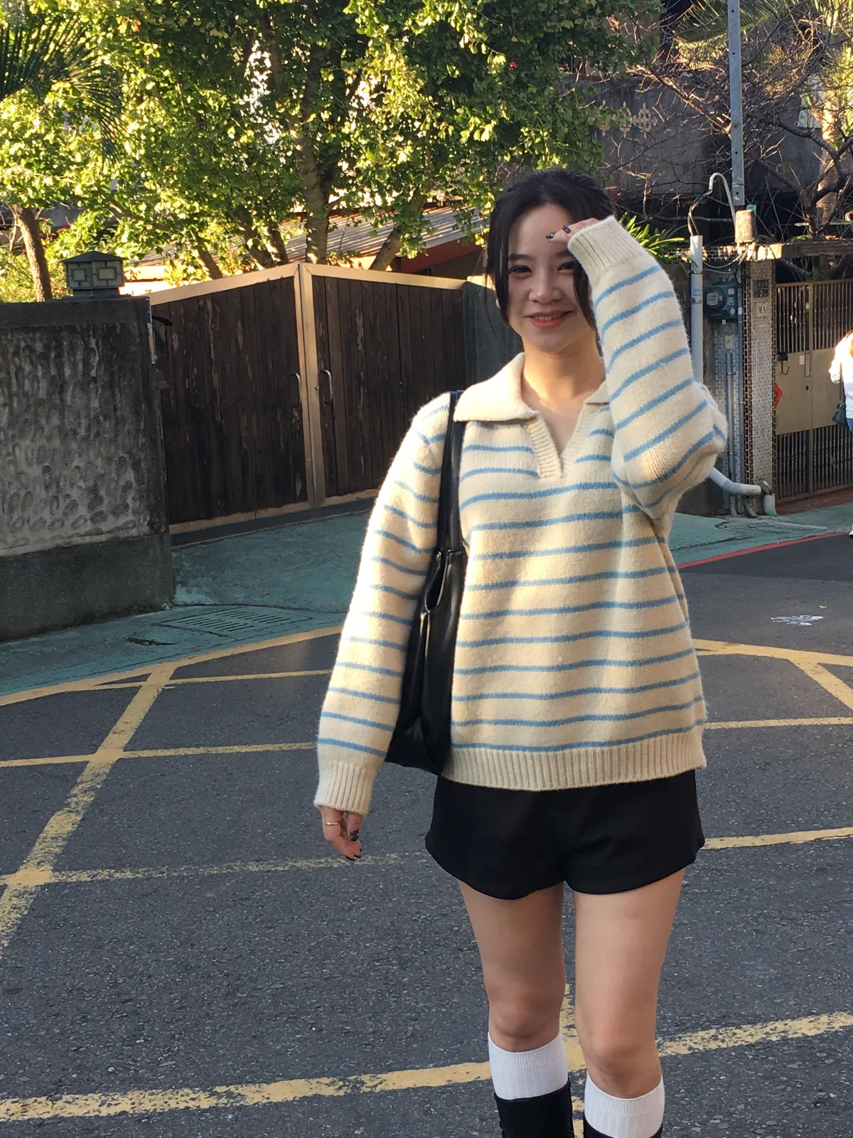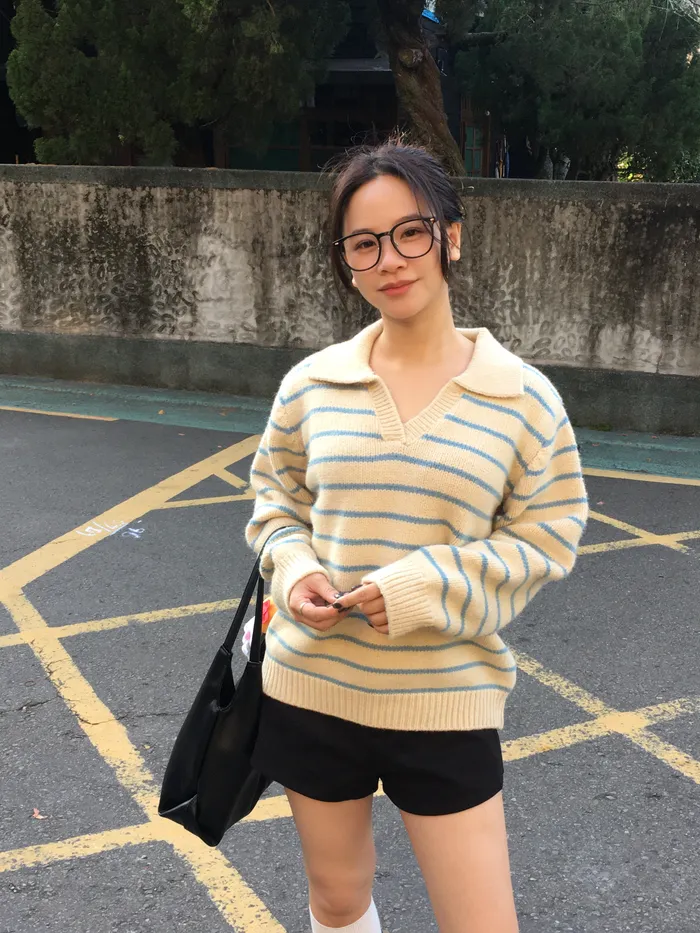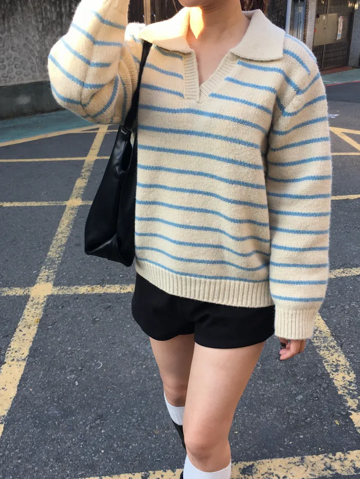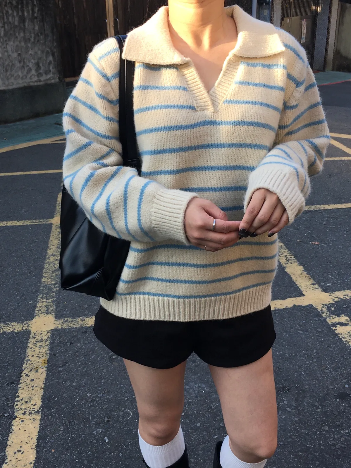 Dec.暖霧微光條紋翻領針織毛衣(2colors)