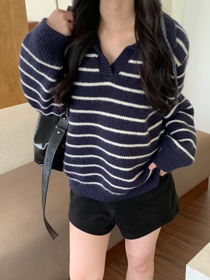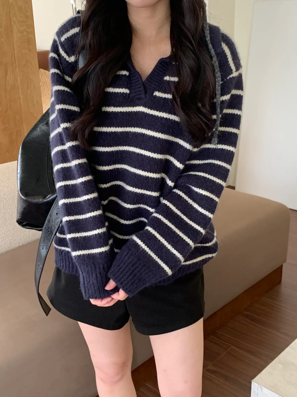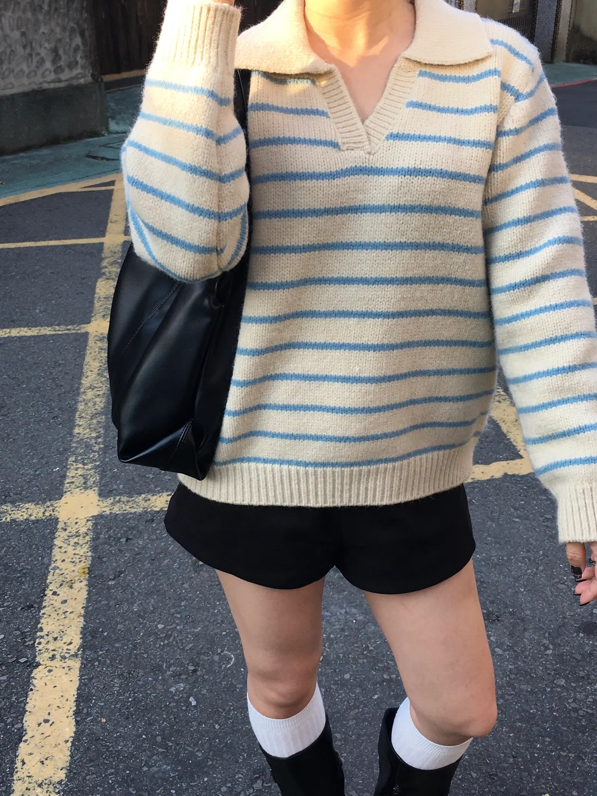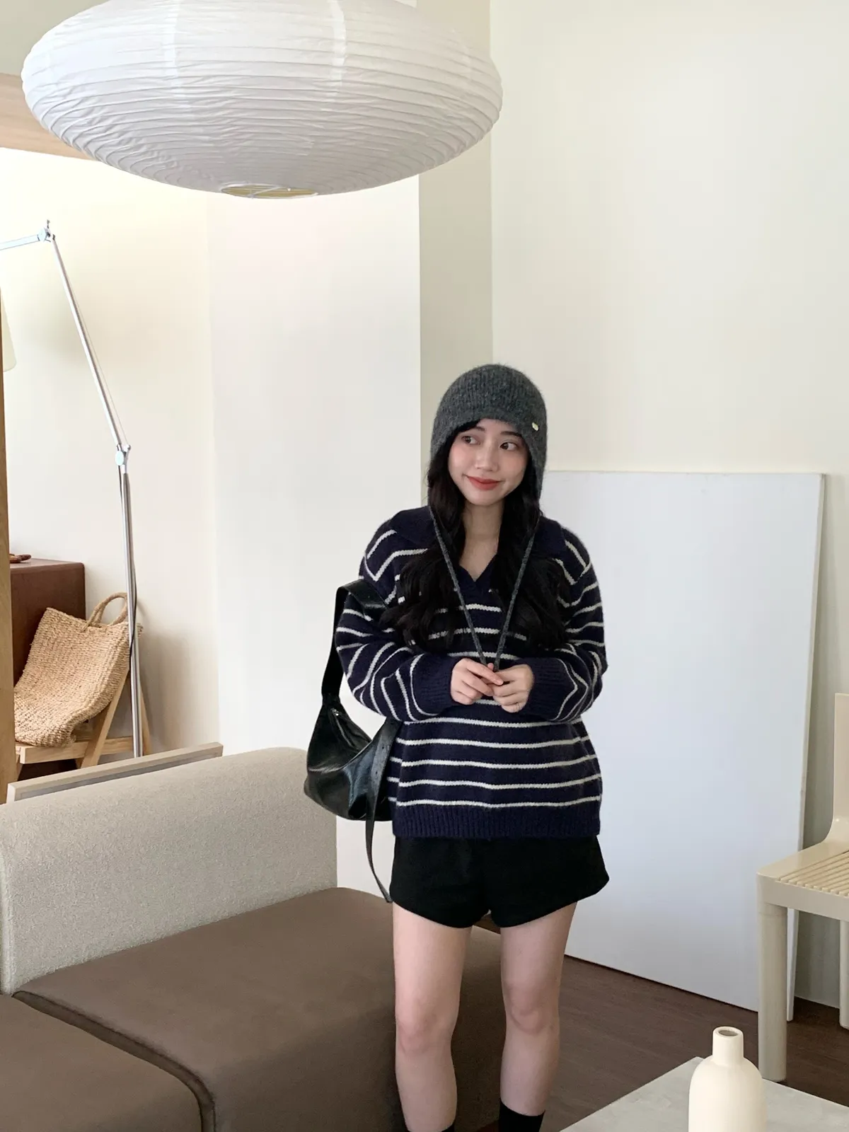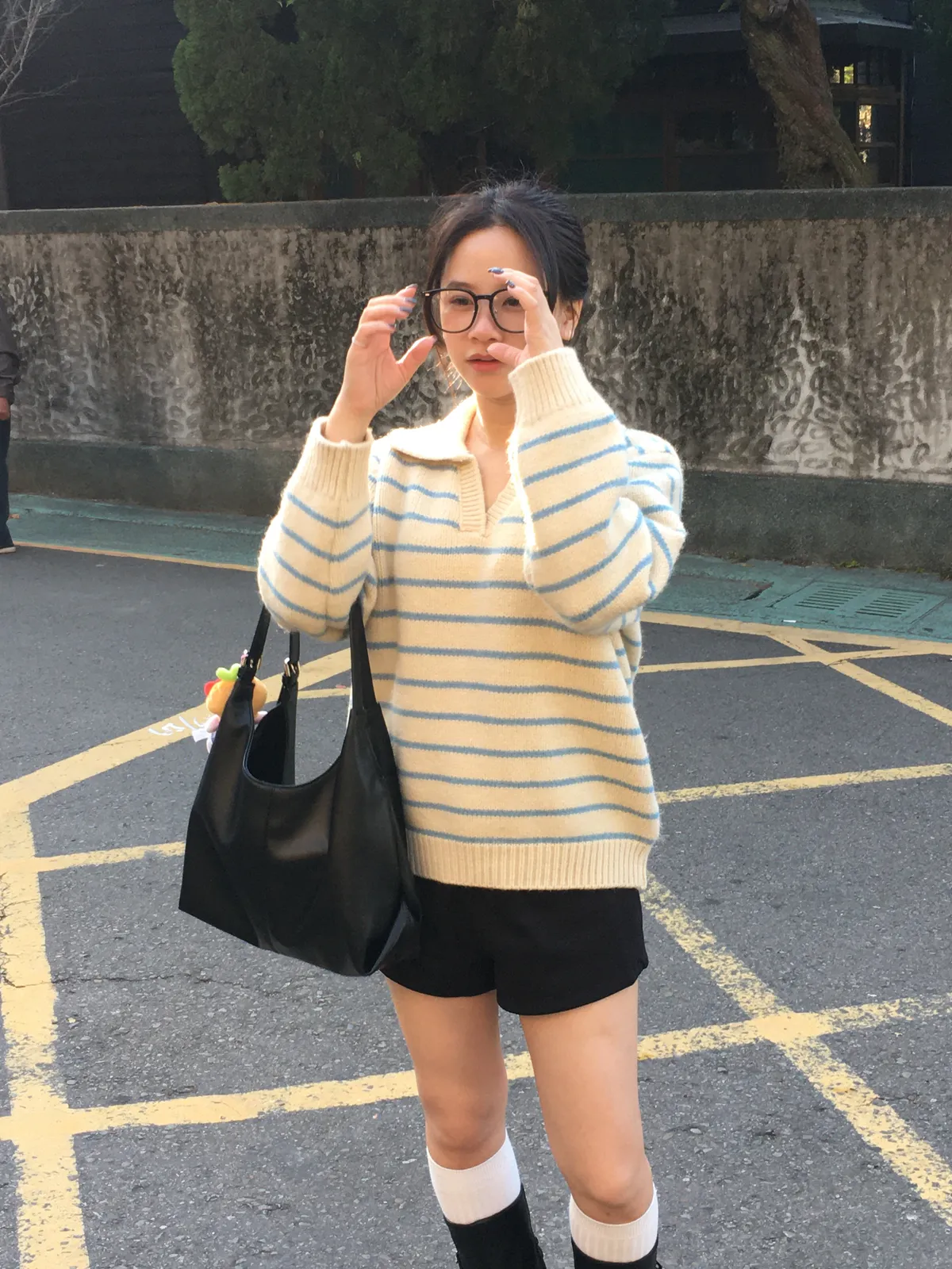 Dec.暖霧微光條紋翻領針織毛衣(2colors)