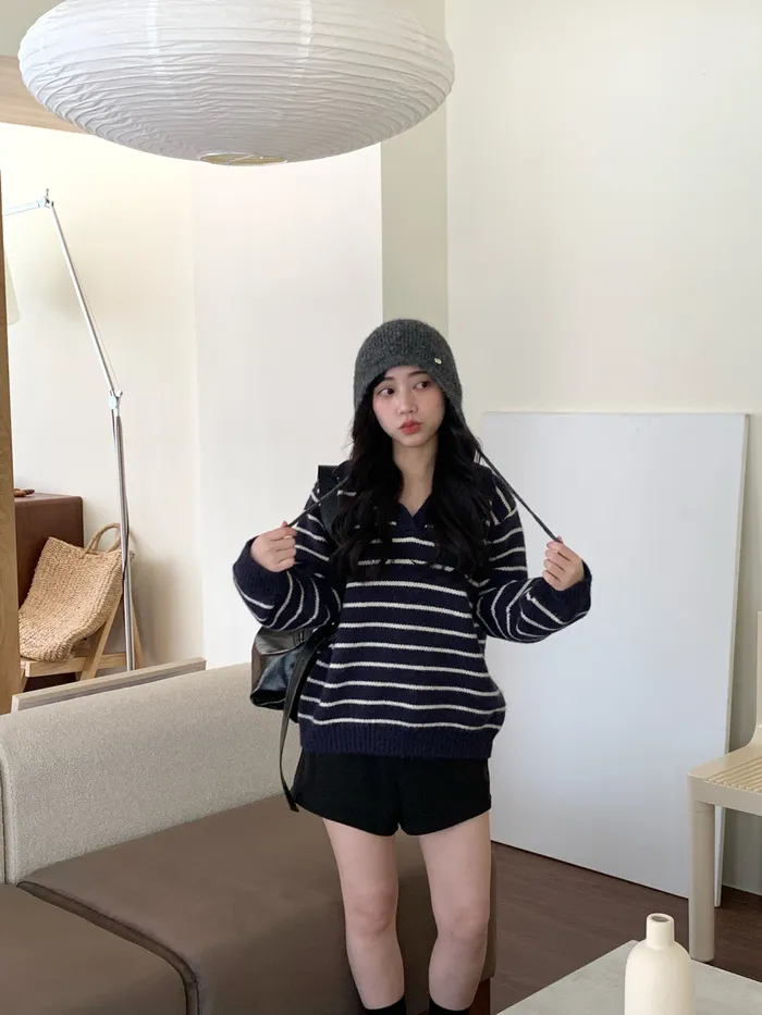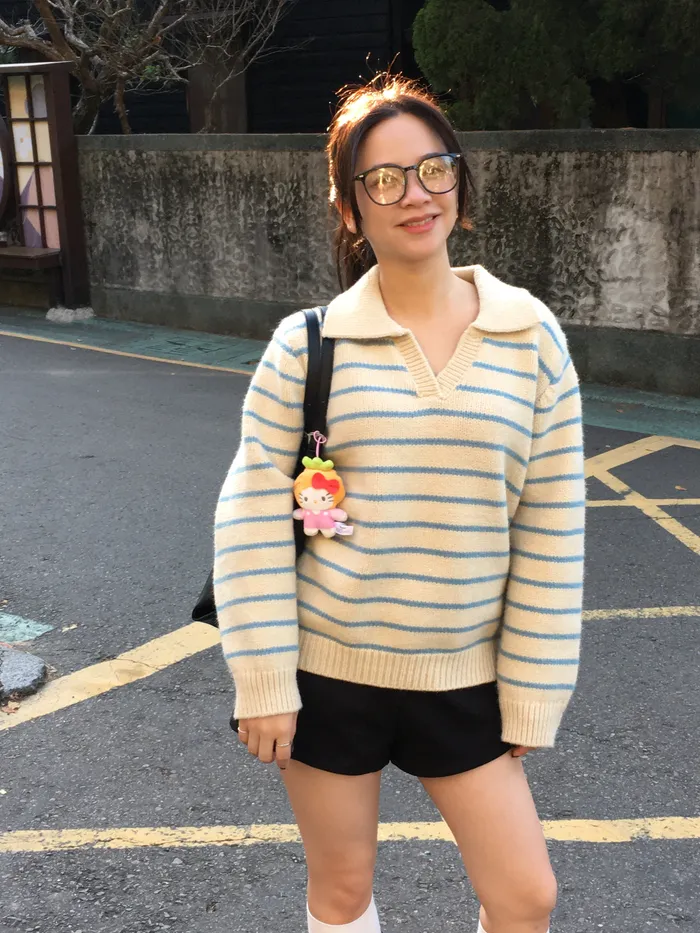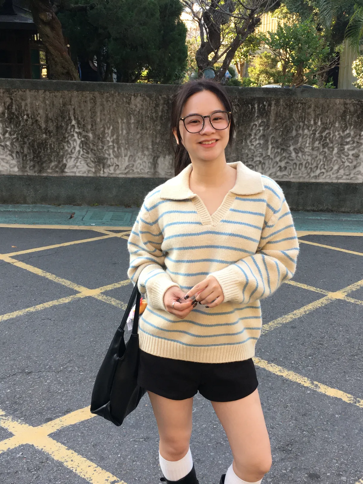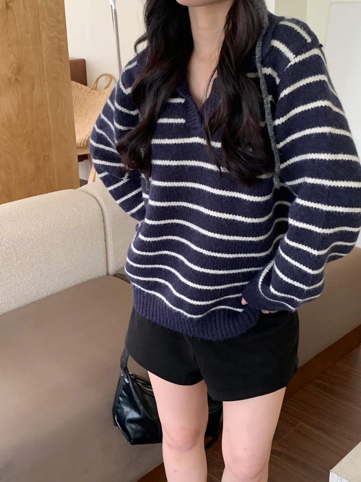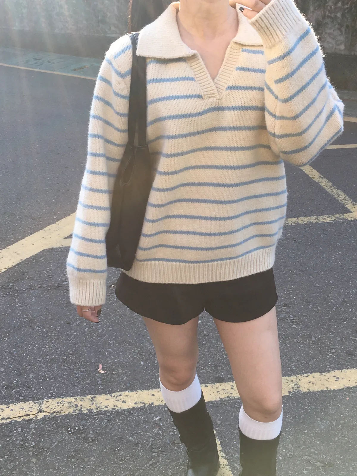 Dec.暖霧微光條紋翻領針織毛衣(2colors)