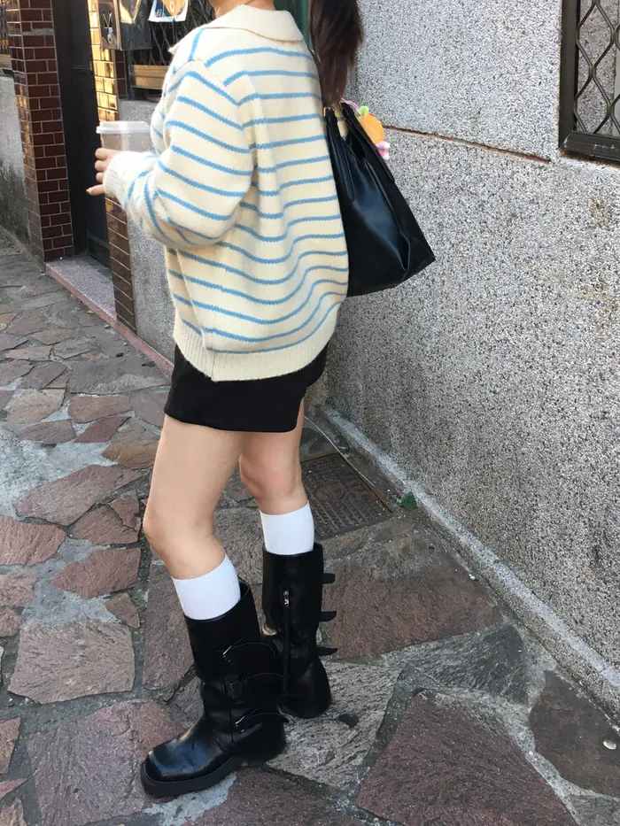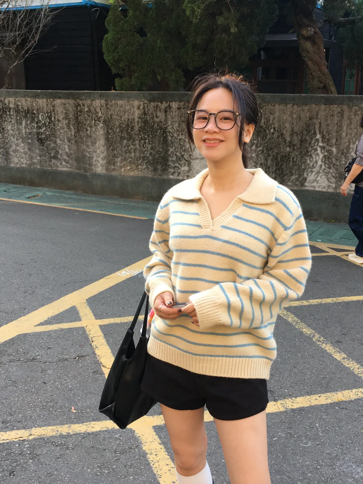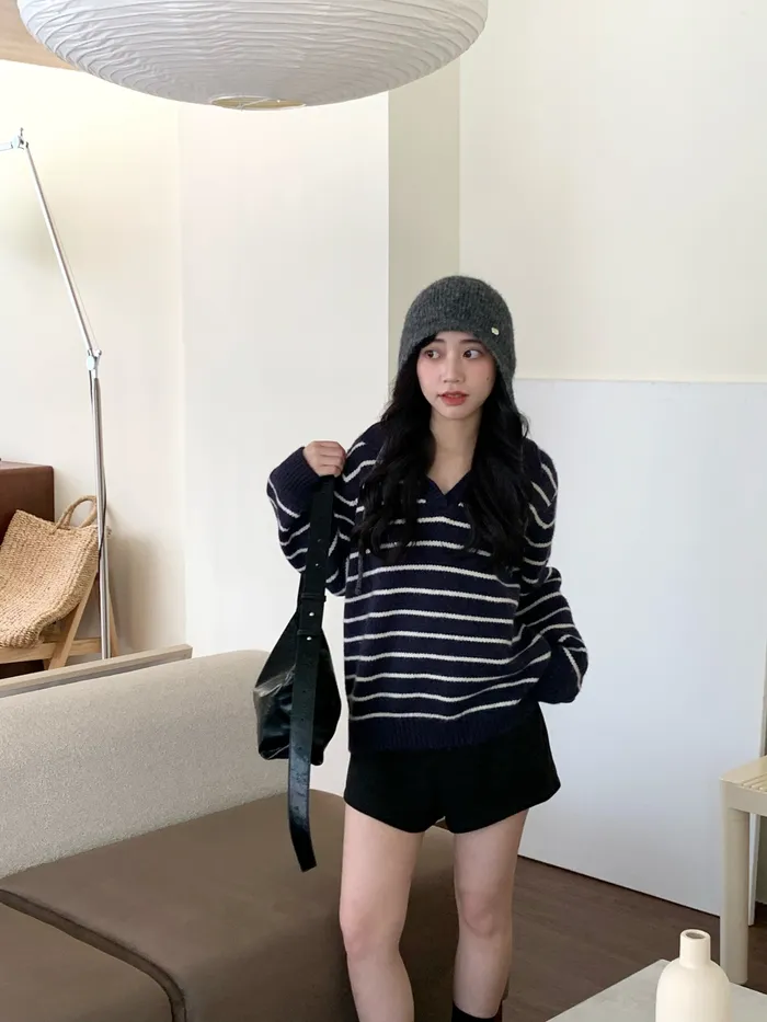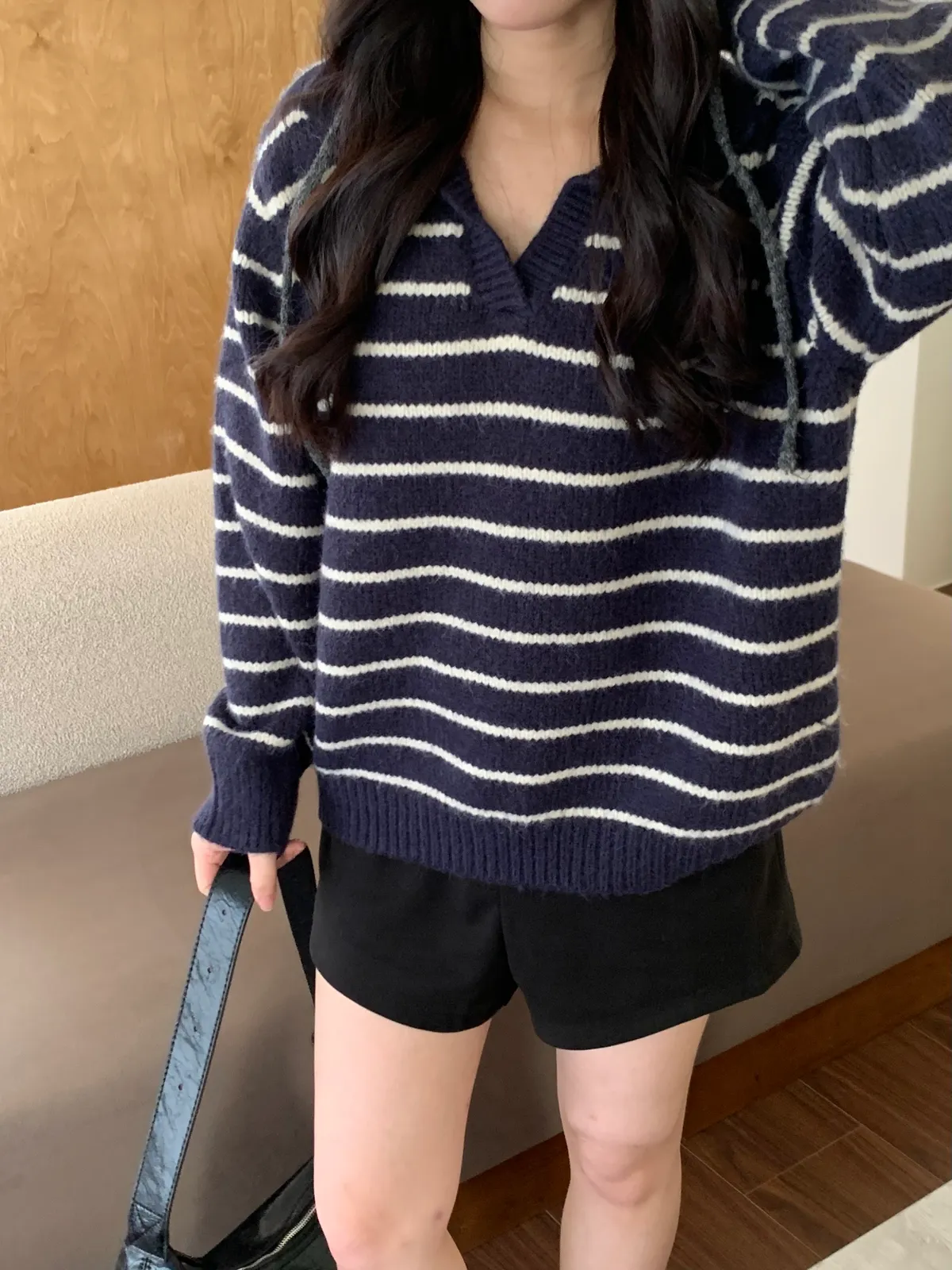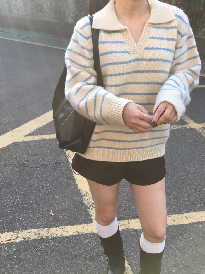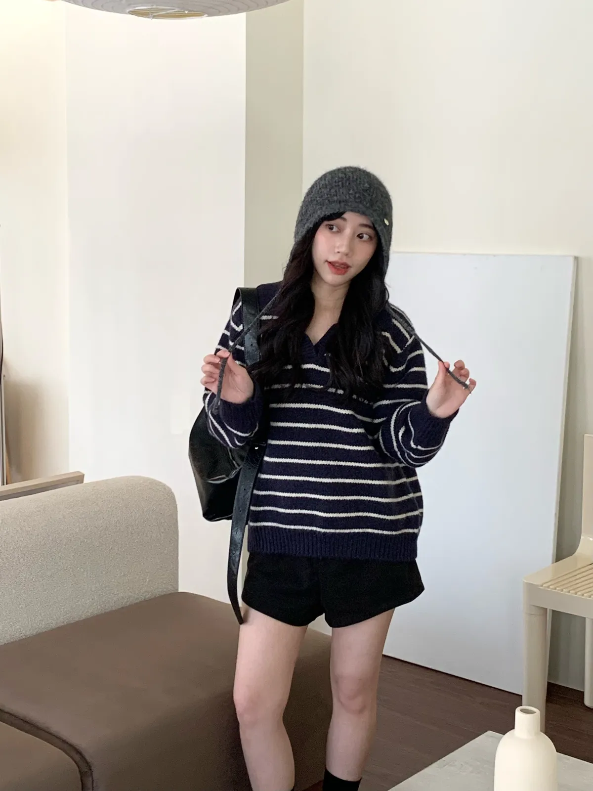 Dec.暖霧微光條紋翻領針織毛衣(2colors)