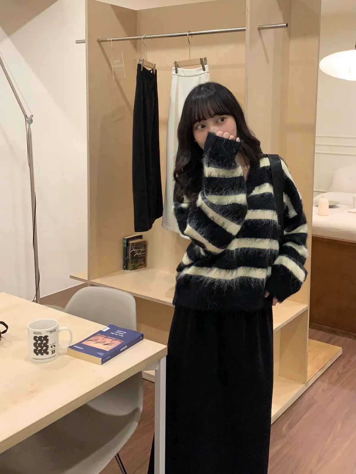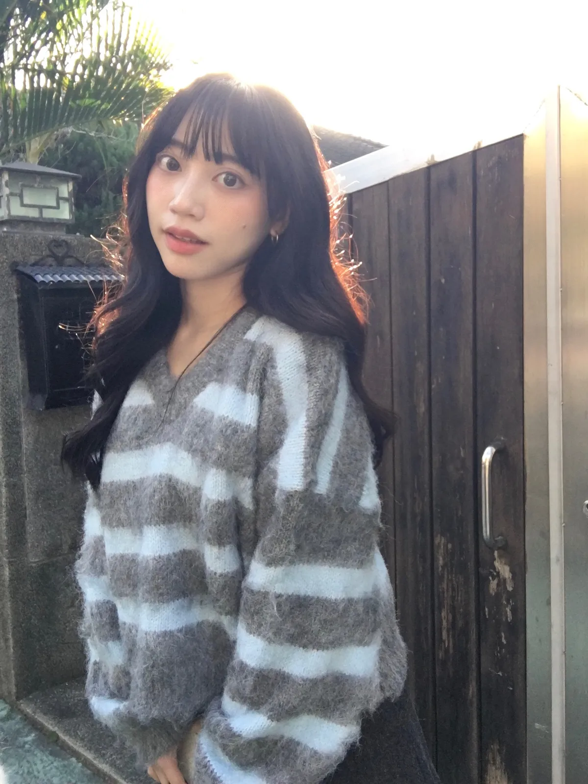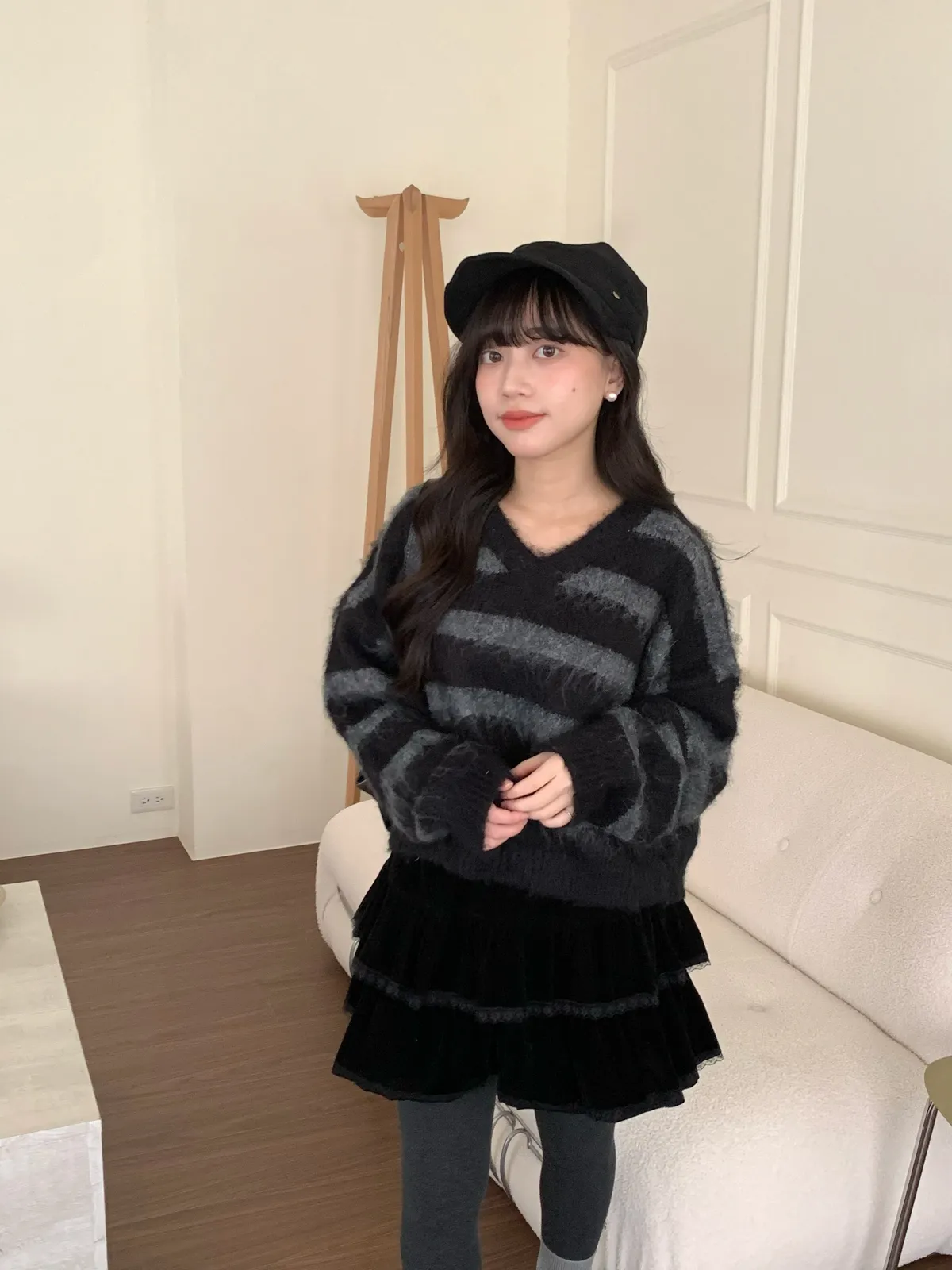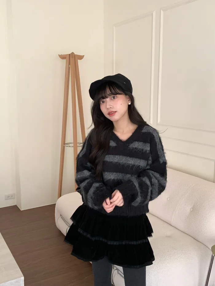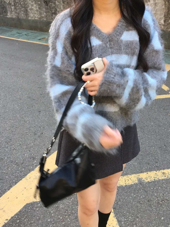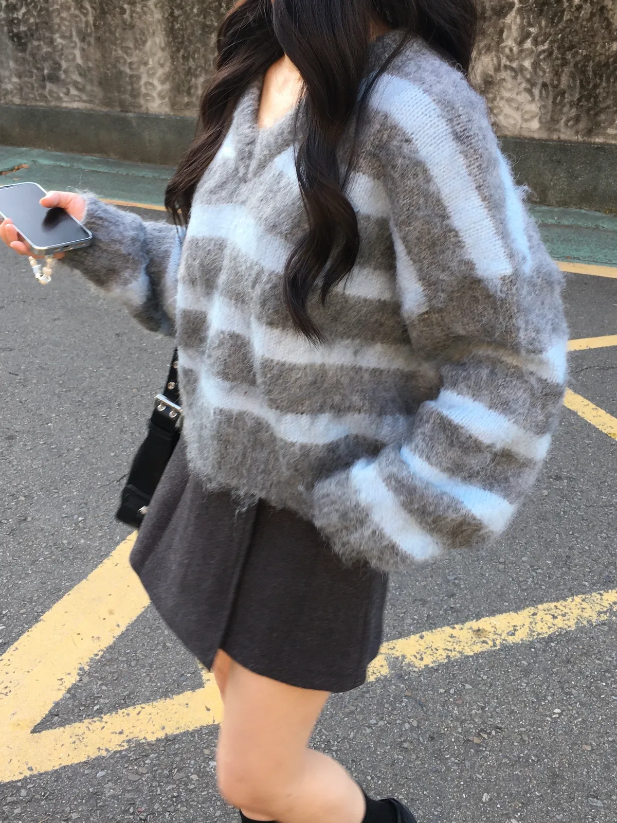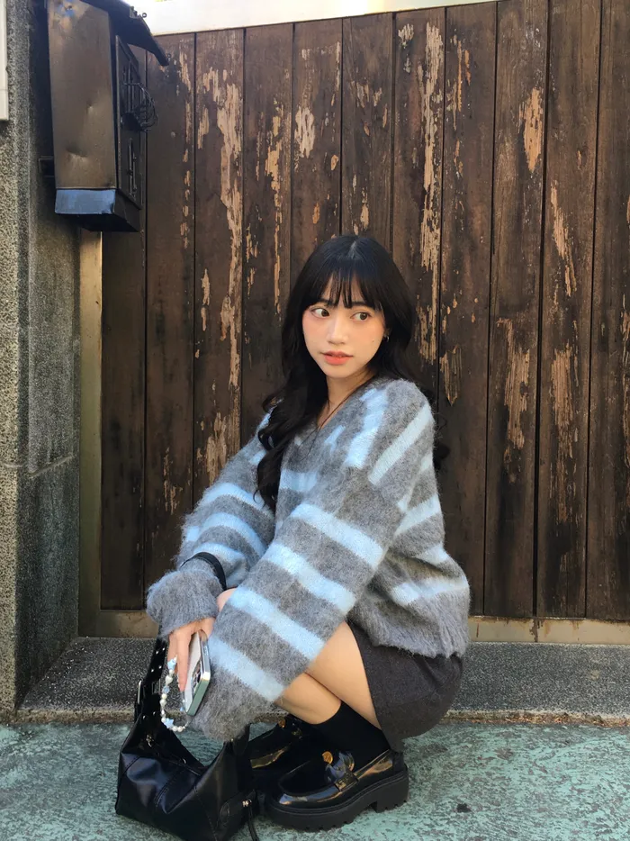 Dec.迷霧冷灰V領條紋毛衣(3colors)