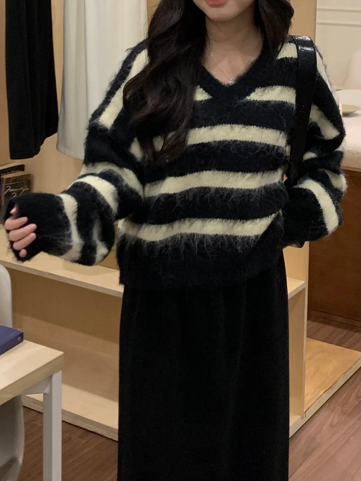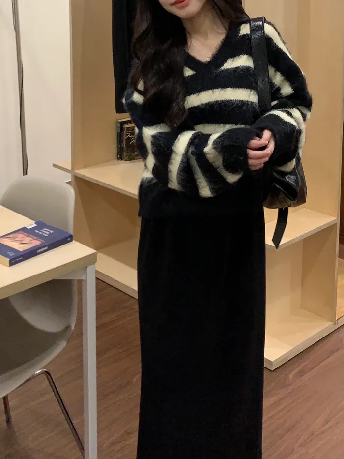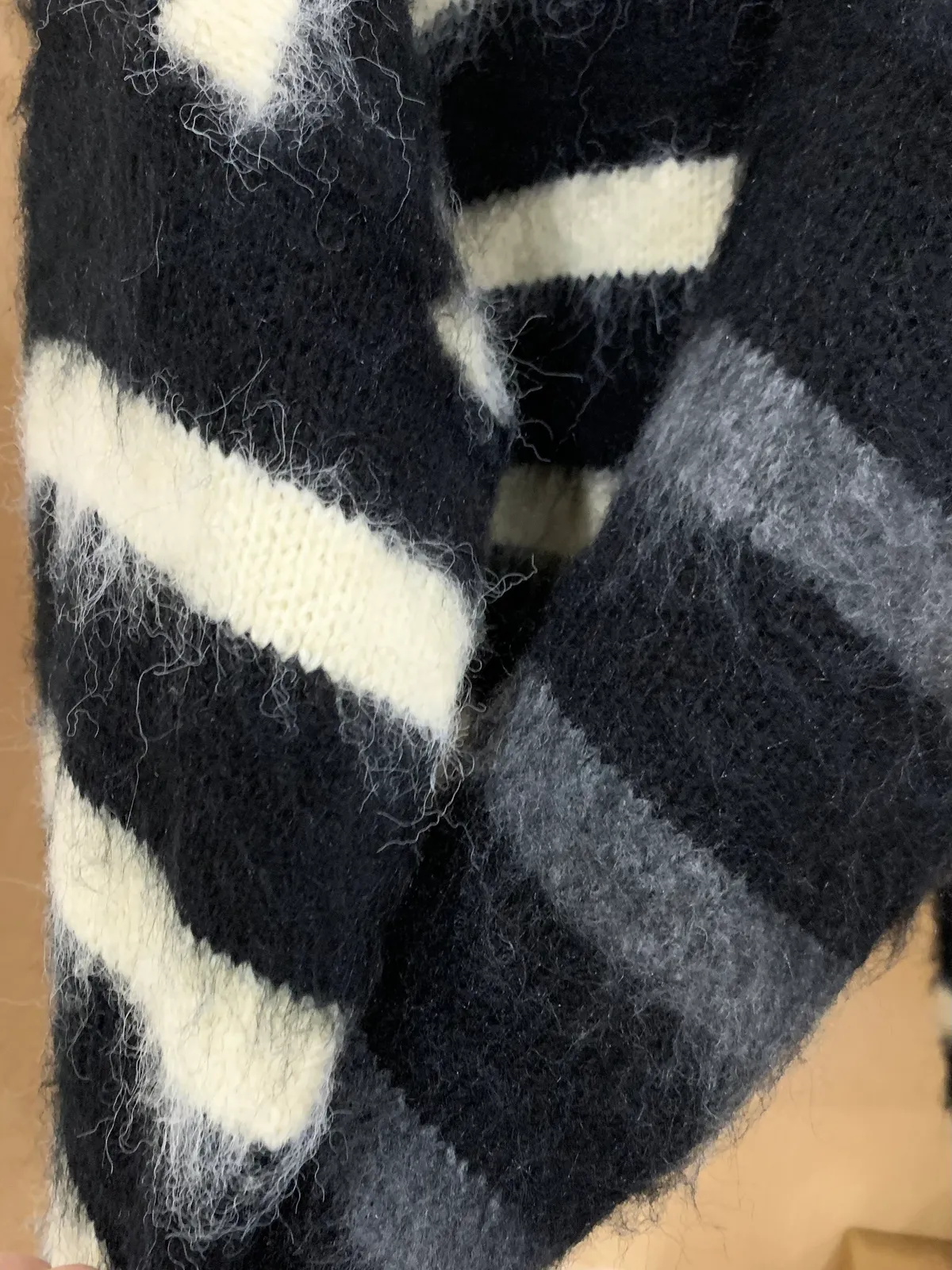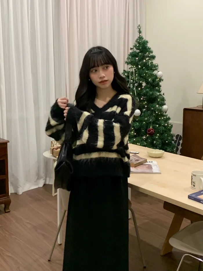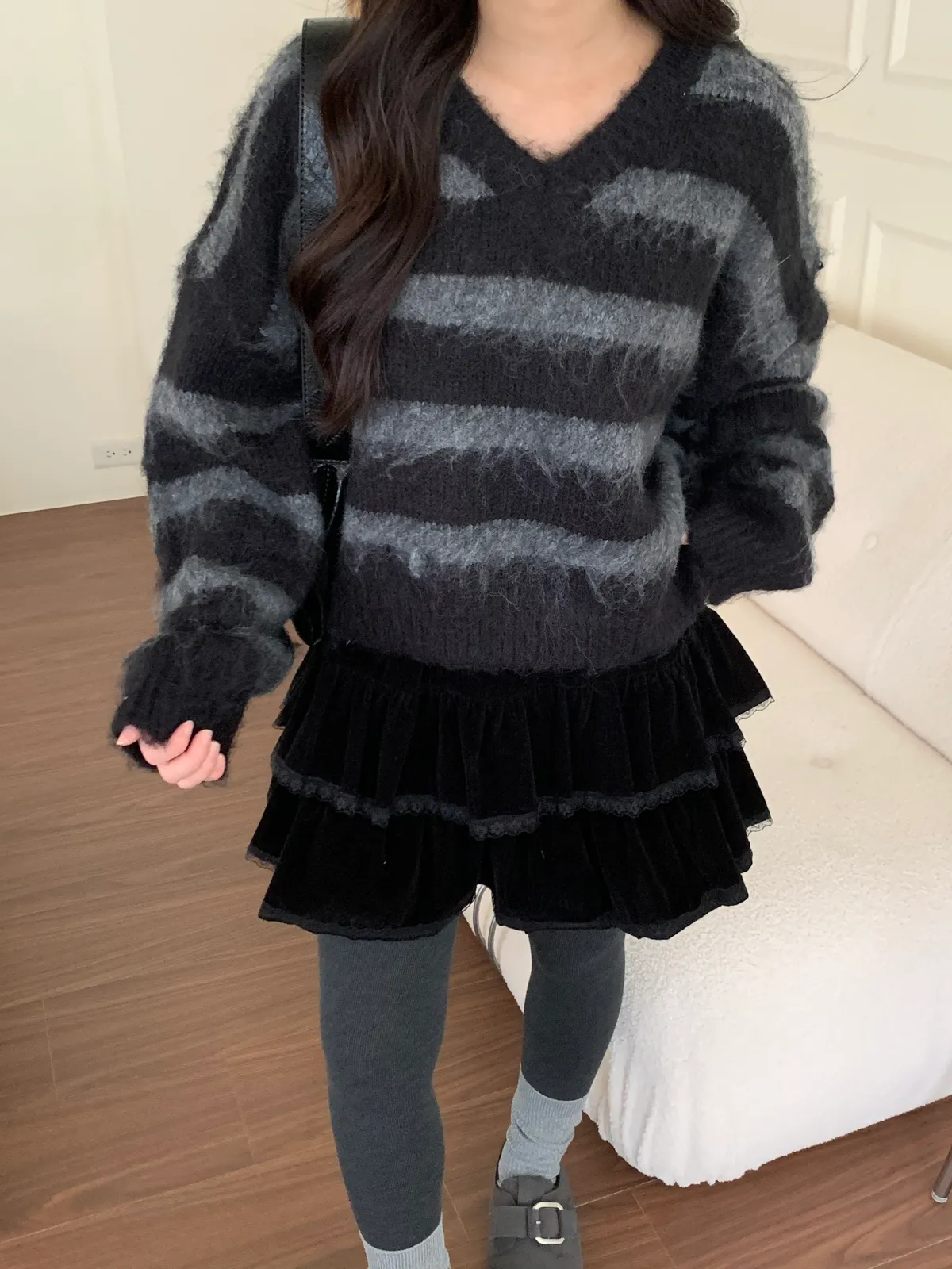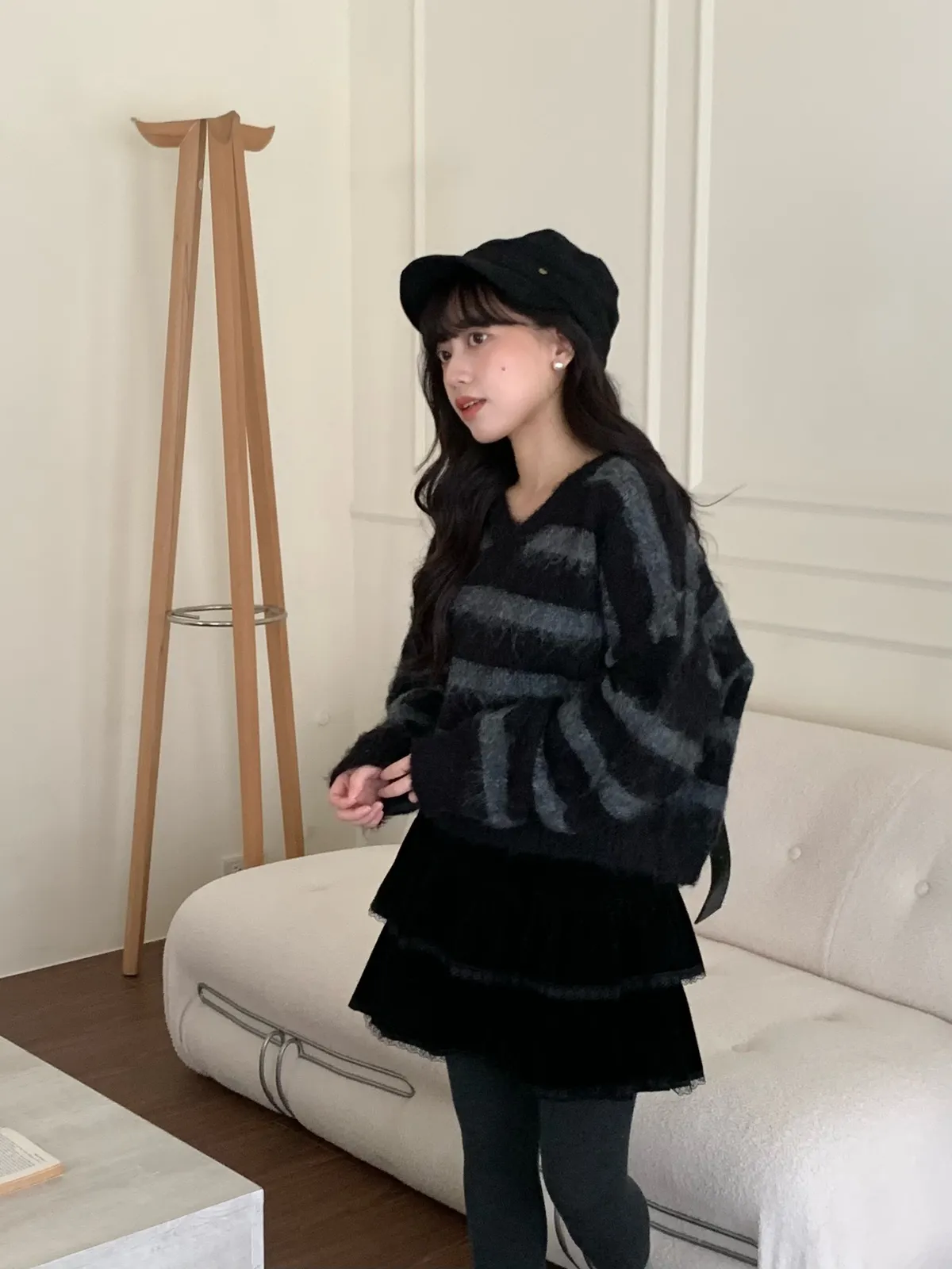 Dec.迷霧冷灰V領條紋毛衣(3colors)