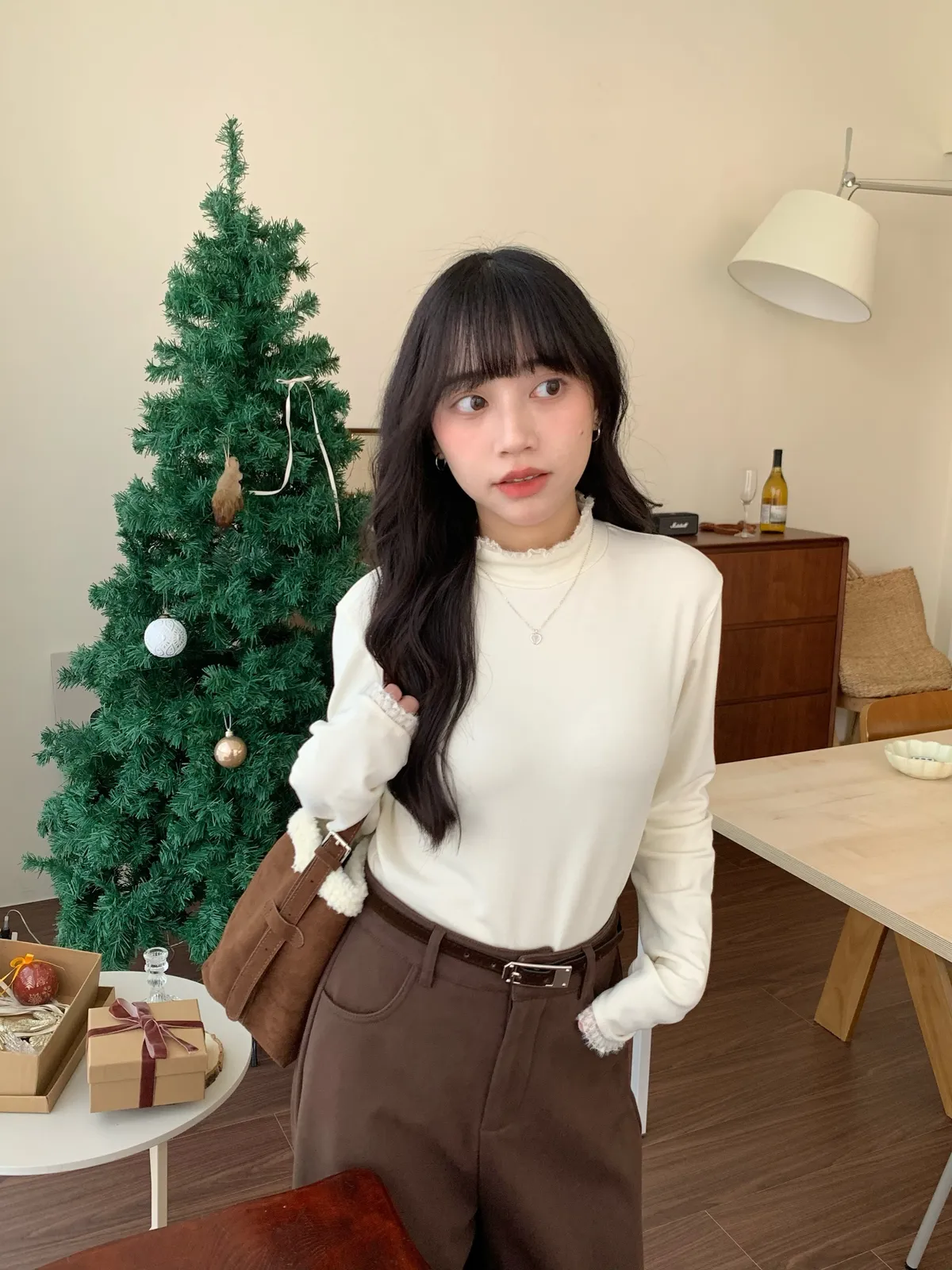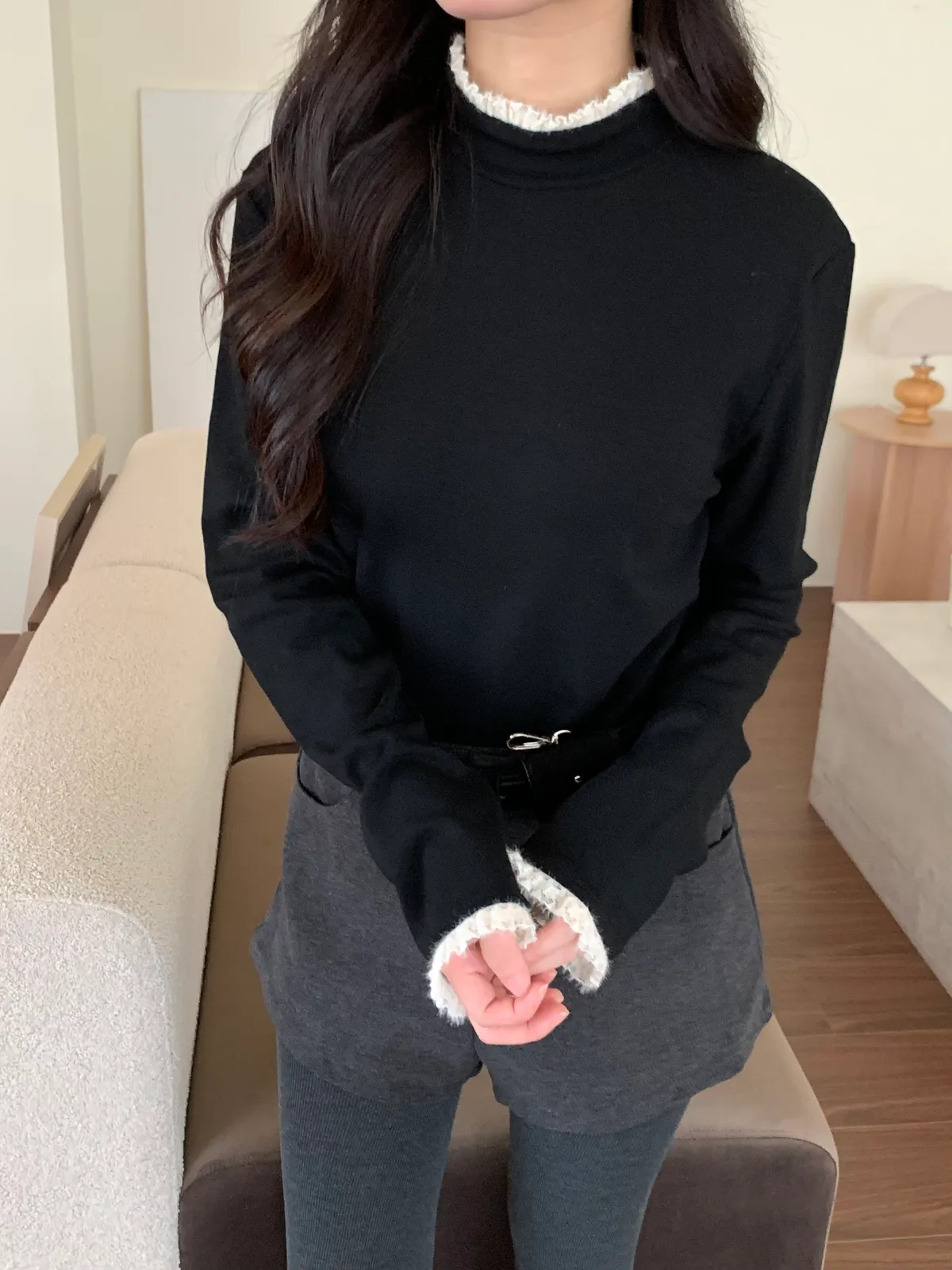 小小的造型設計,即使是素色上衣也能有小設計讓穿搭更加分