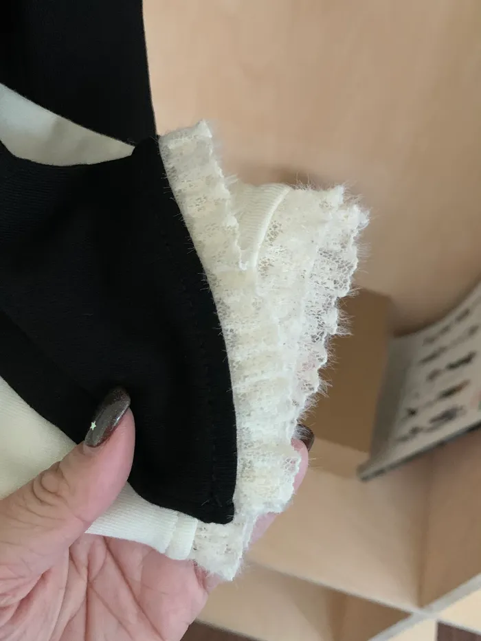 布料親膚有彈性,袖口跟領口都有拼接蕾絲布料,也不刺肌膚
