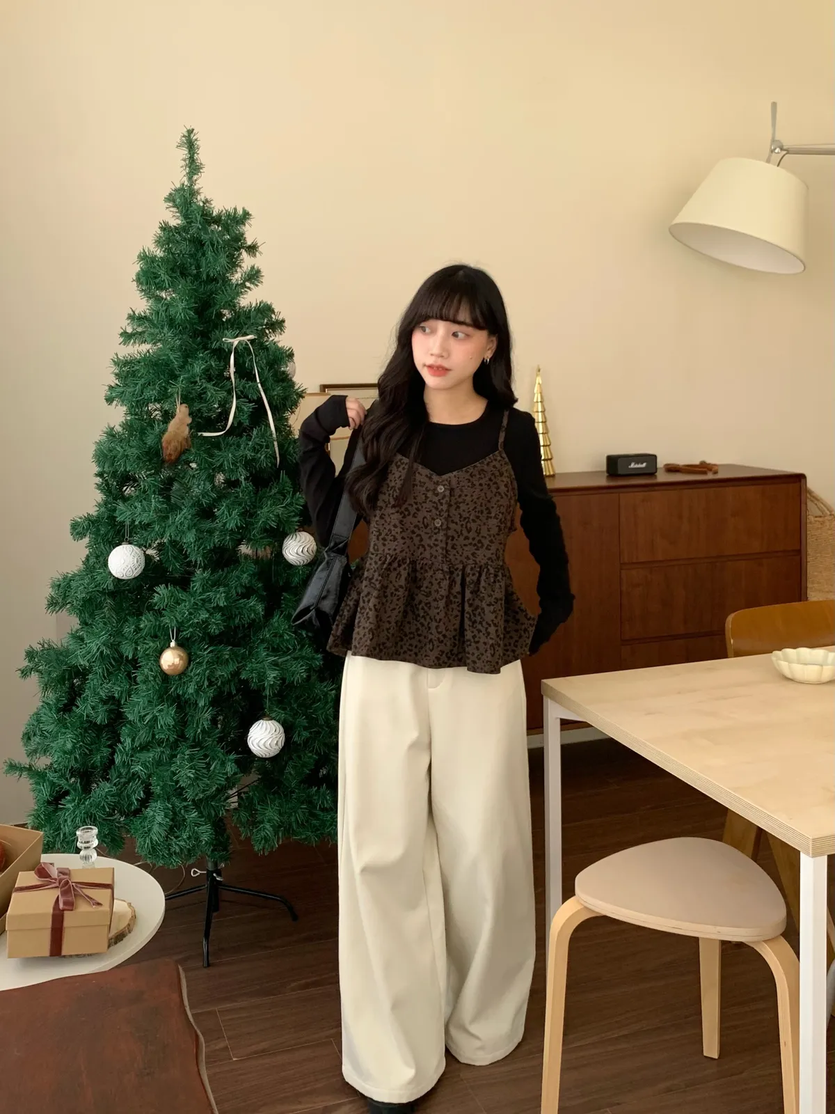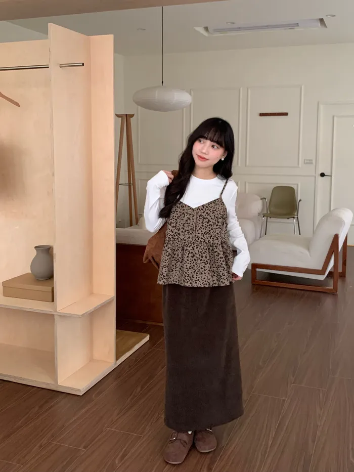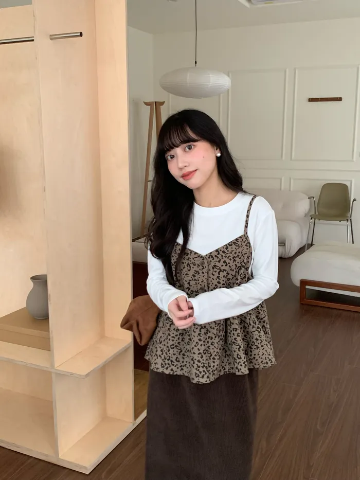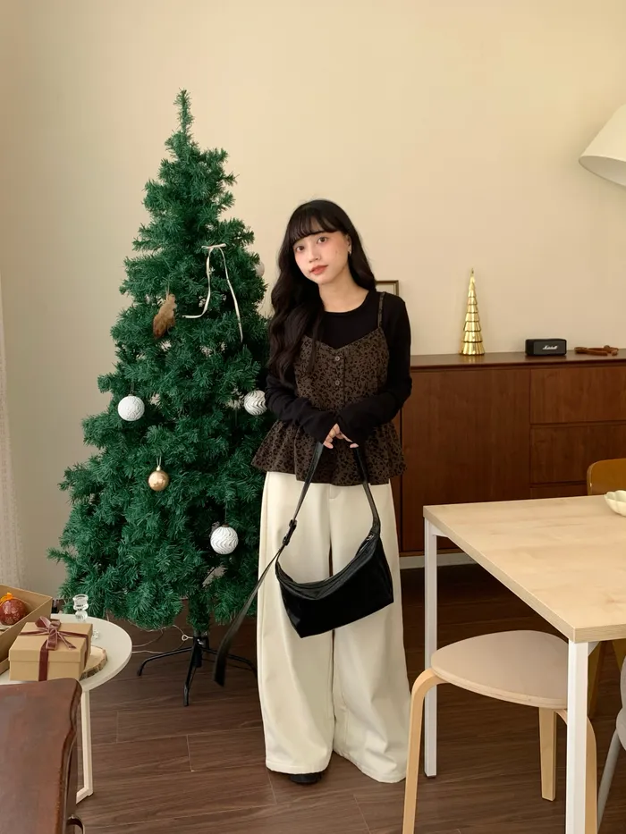 是有毛呢的布料,比較挺,很適合秋冬穿唷!