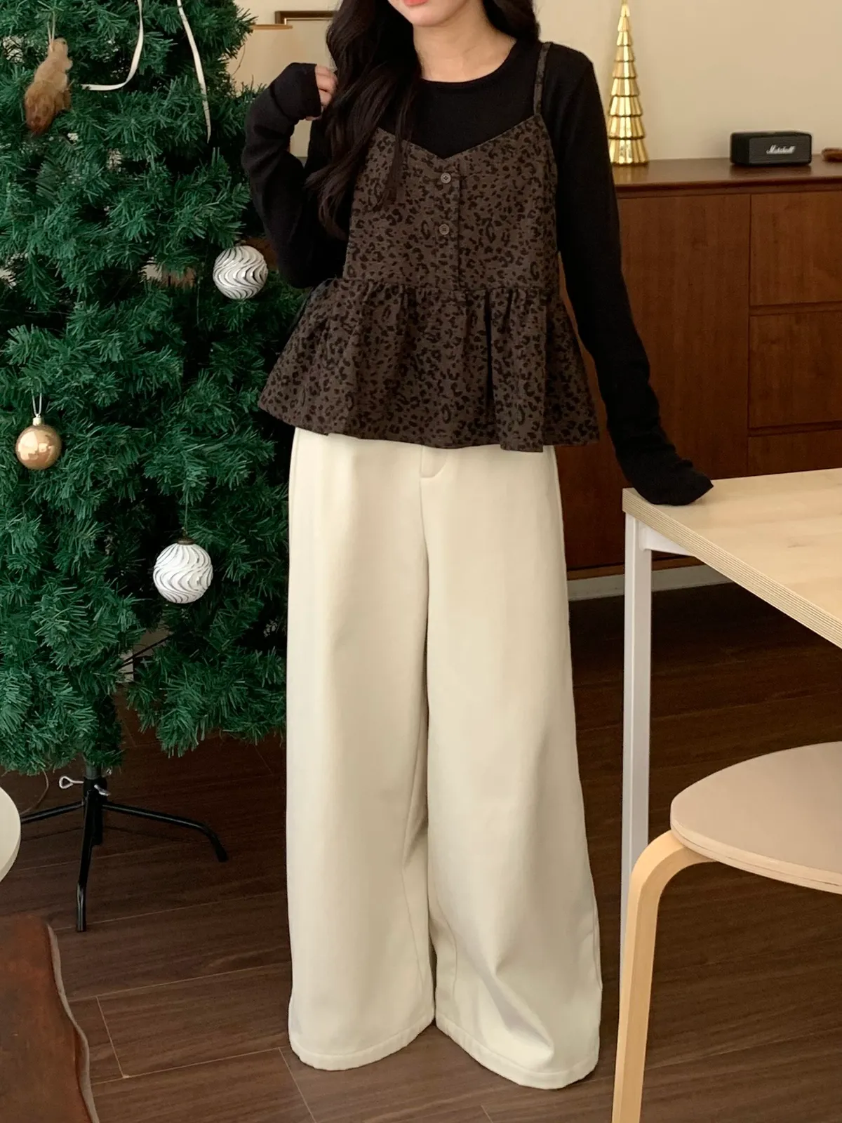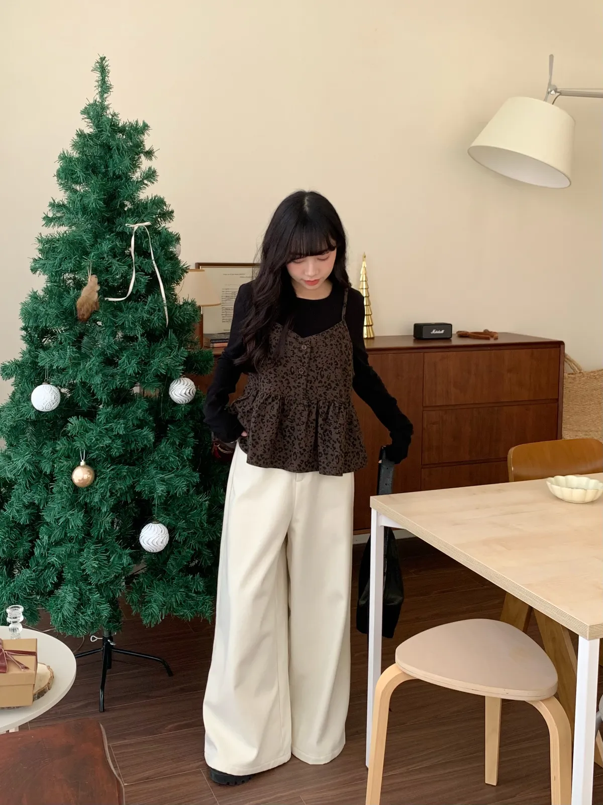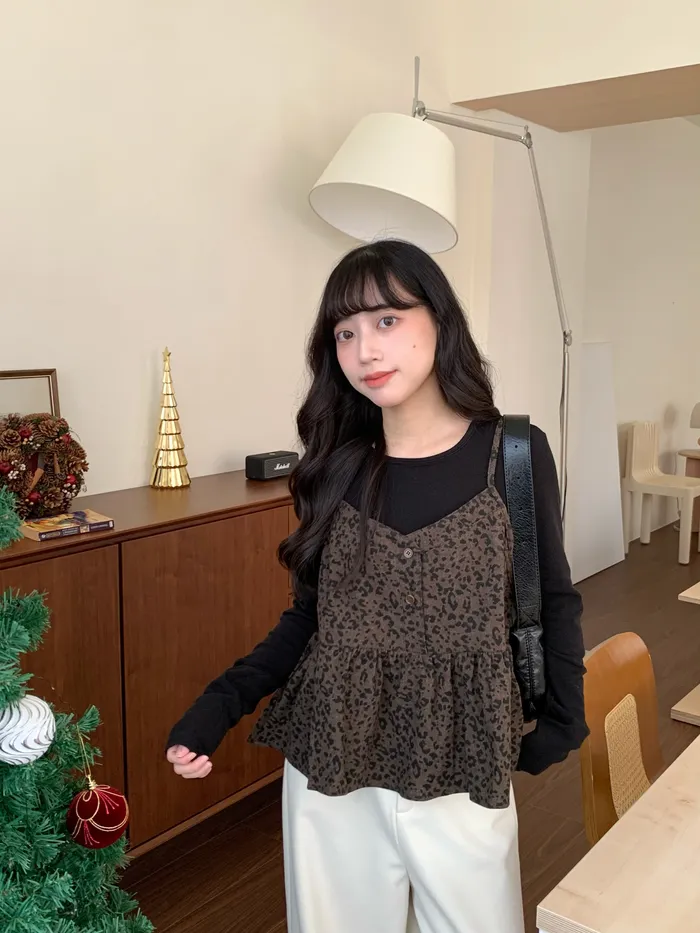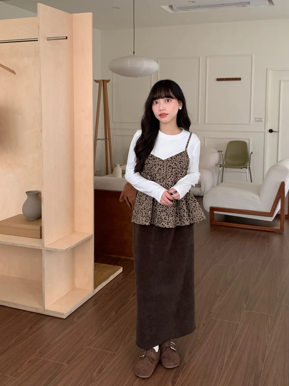 是有毛呢的布料,比較挺,很適合秋冬穿唷!
