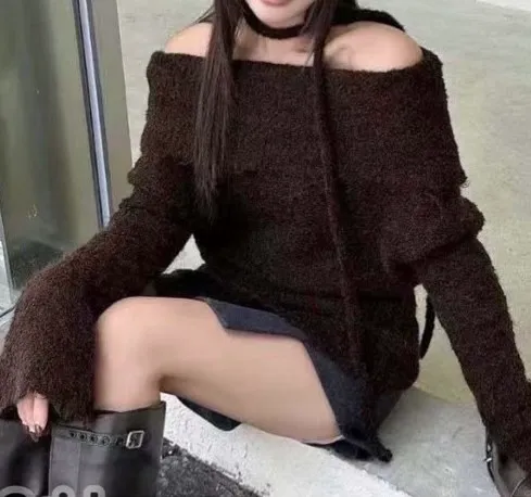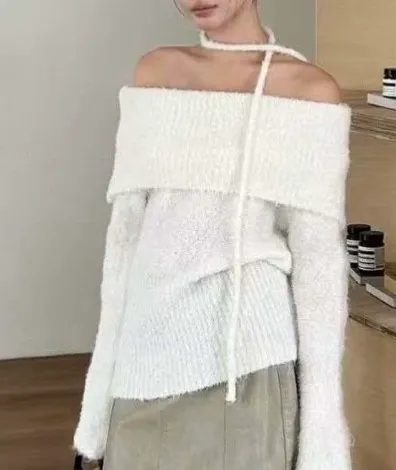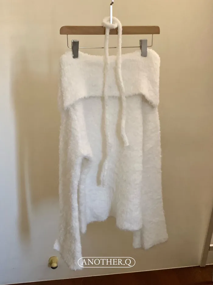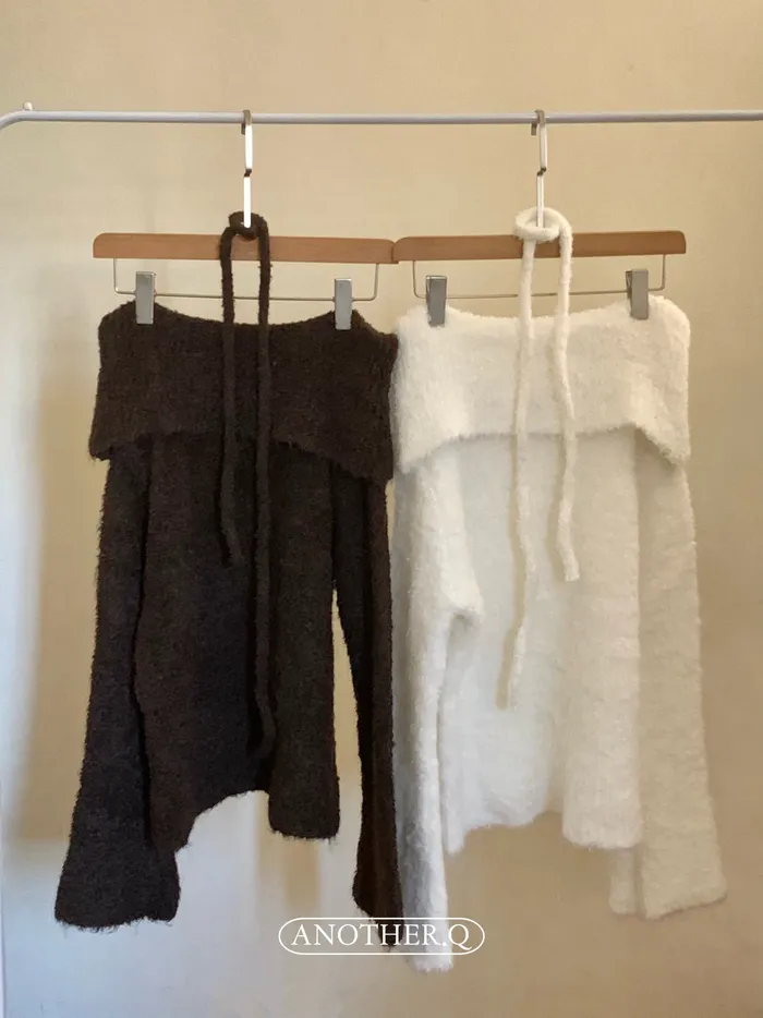 現貨,QQ毛絨冬日感一字領毛衣~附繞脖(2colors)