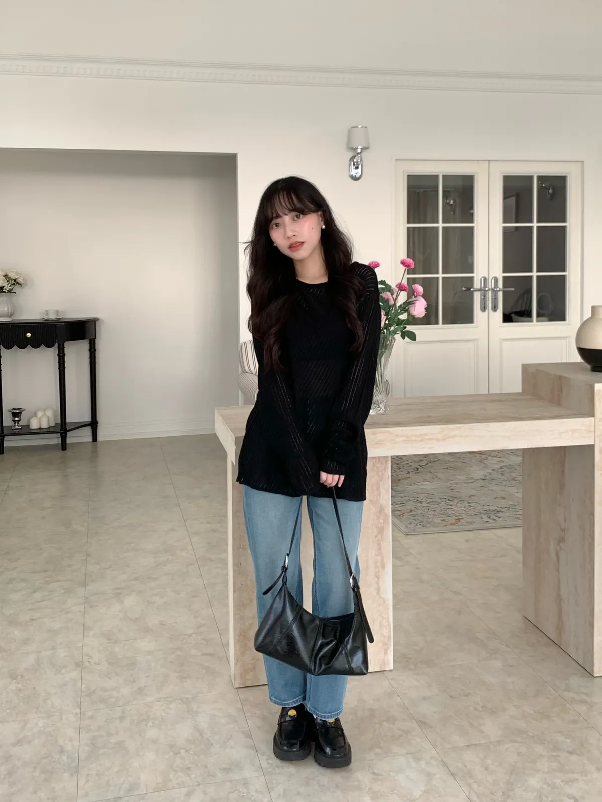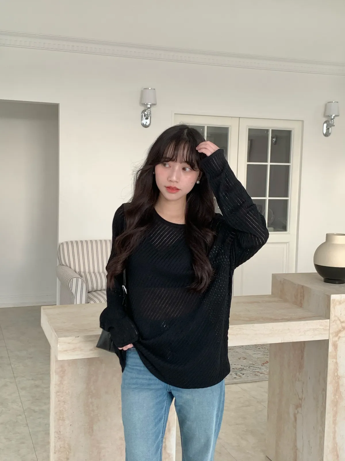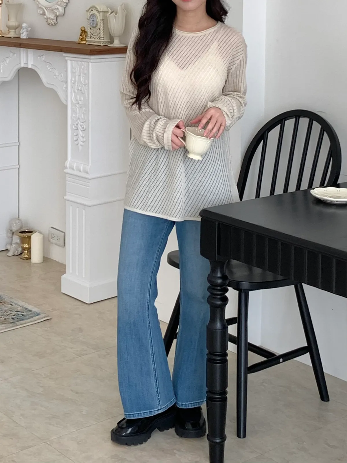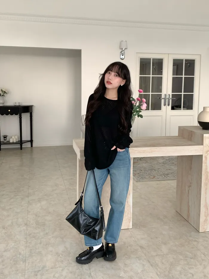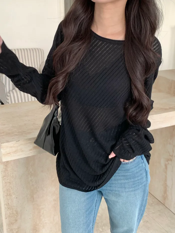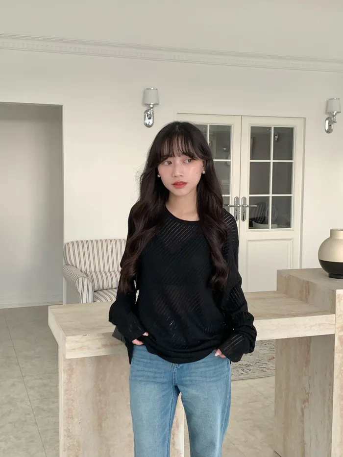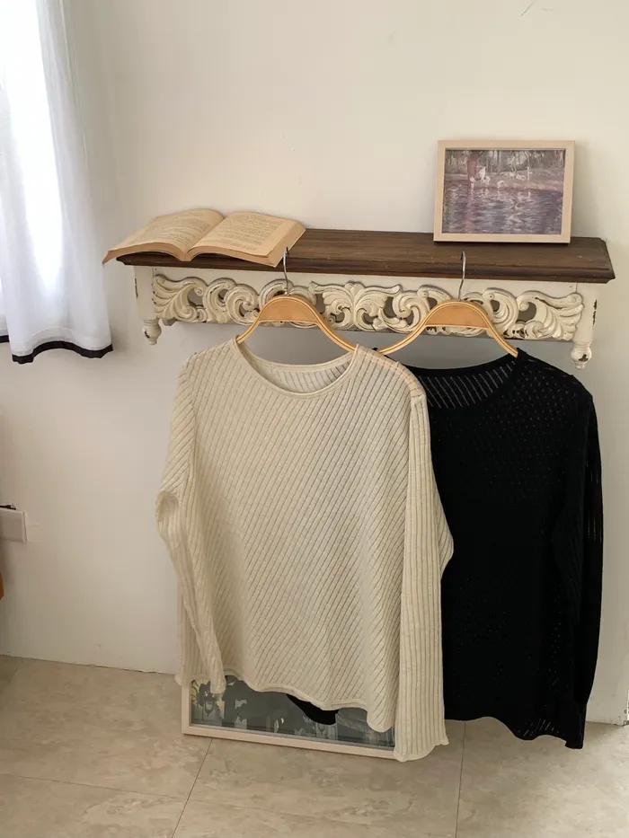 Mar.午後素描斜紋鏤空針織衣(2colors)