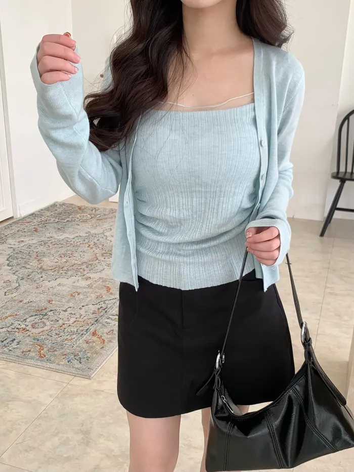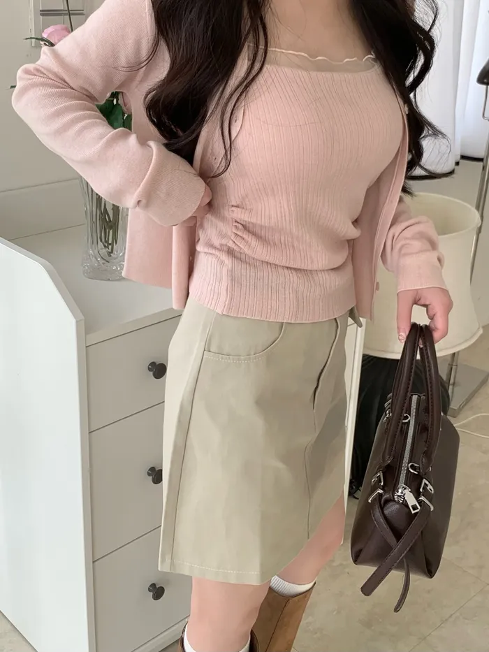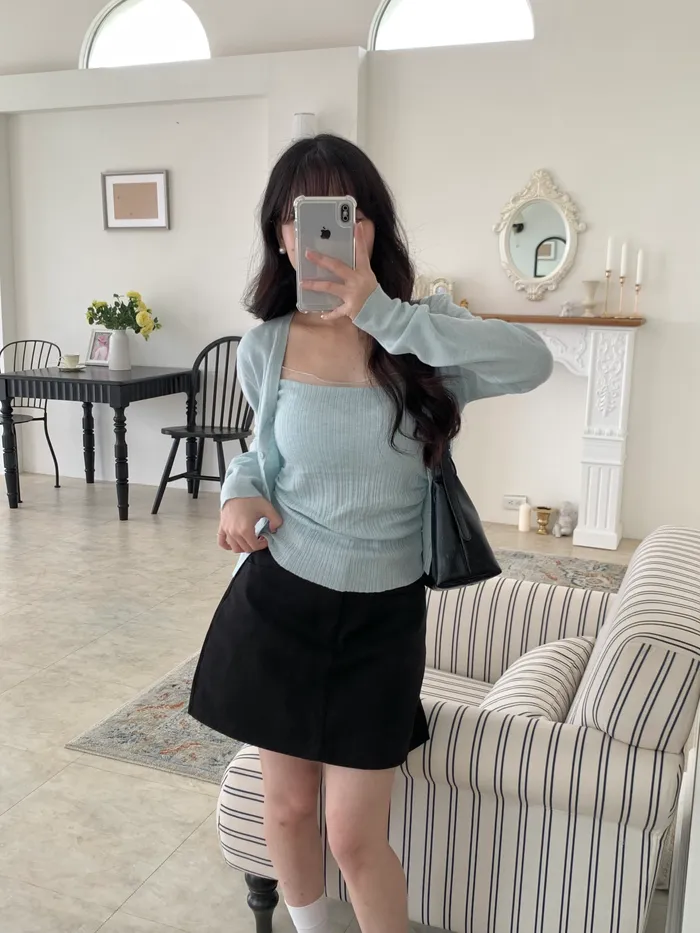 Mar.心動警告拼接蕾絲吊帶罩衫兩件式套裝(3colors)