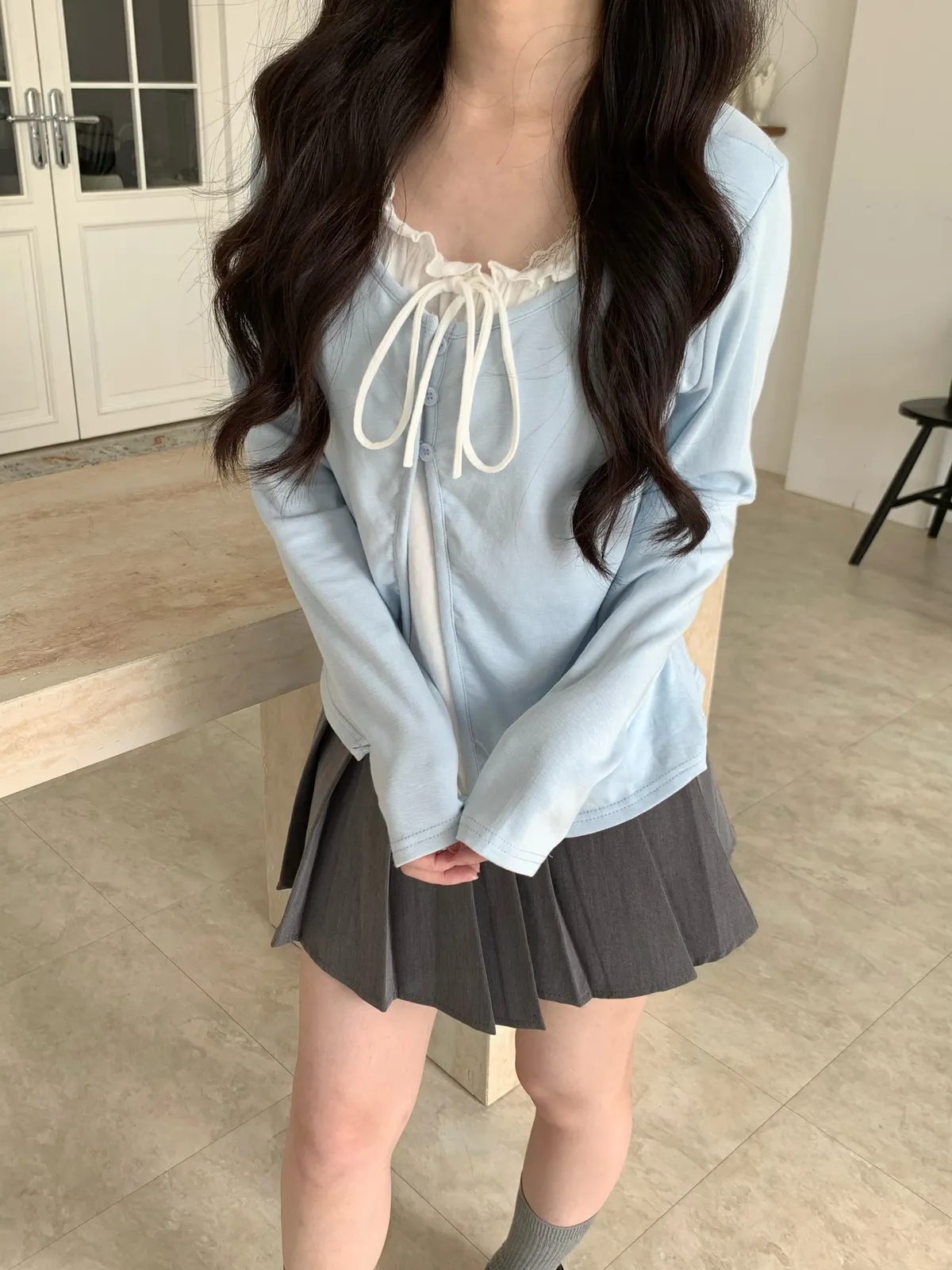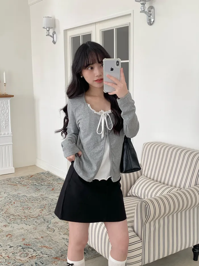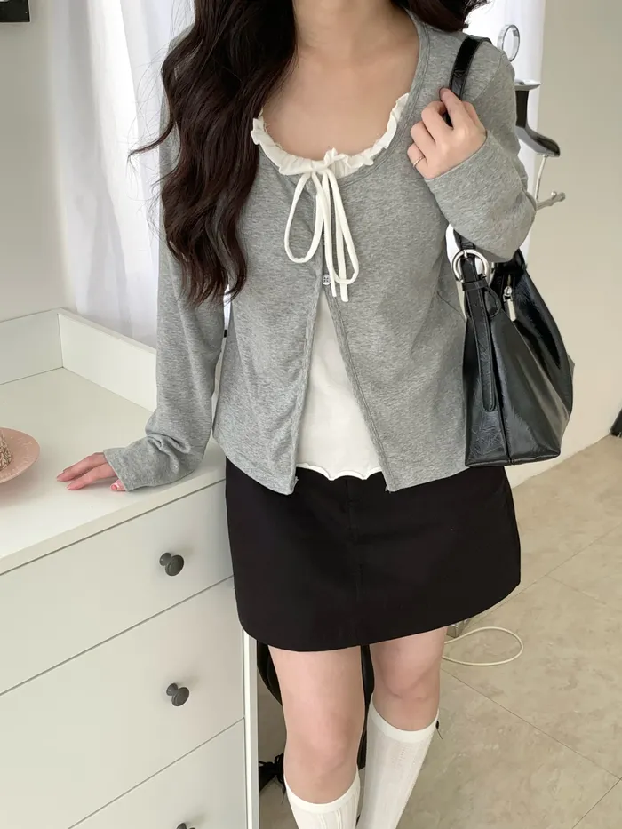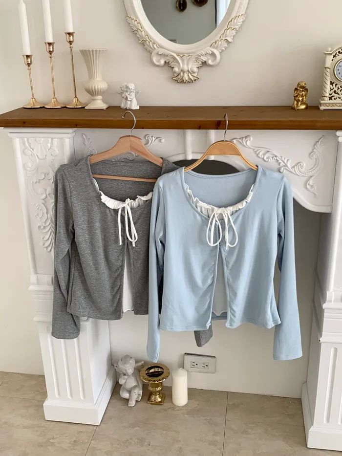 Mar.芭蕾輕語荷葉領綁帶上衣(2colors)
