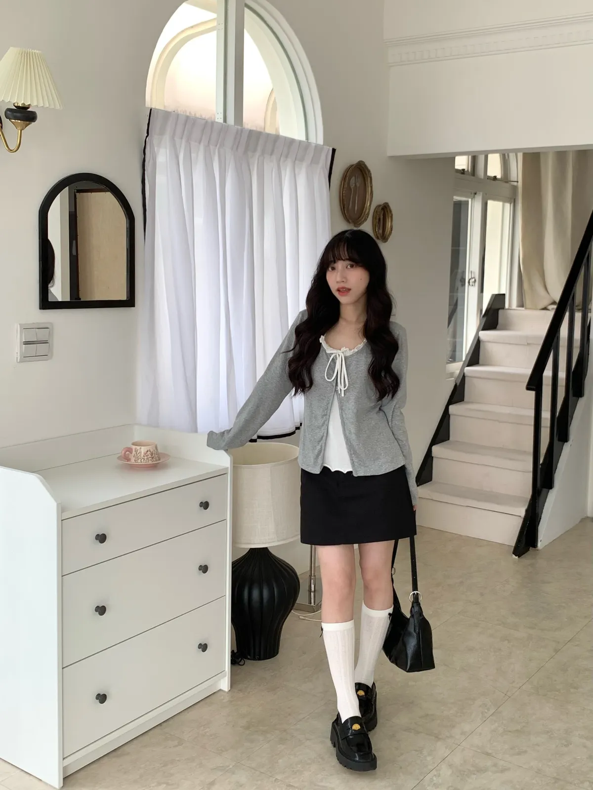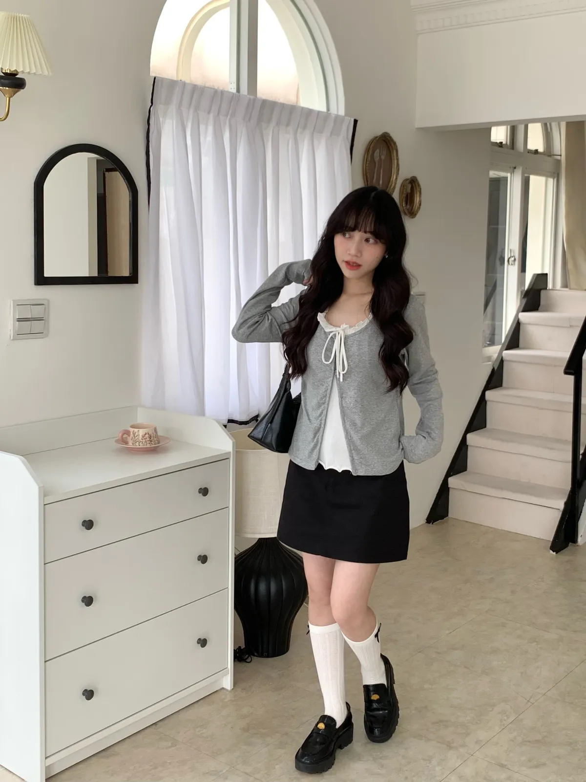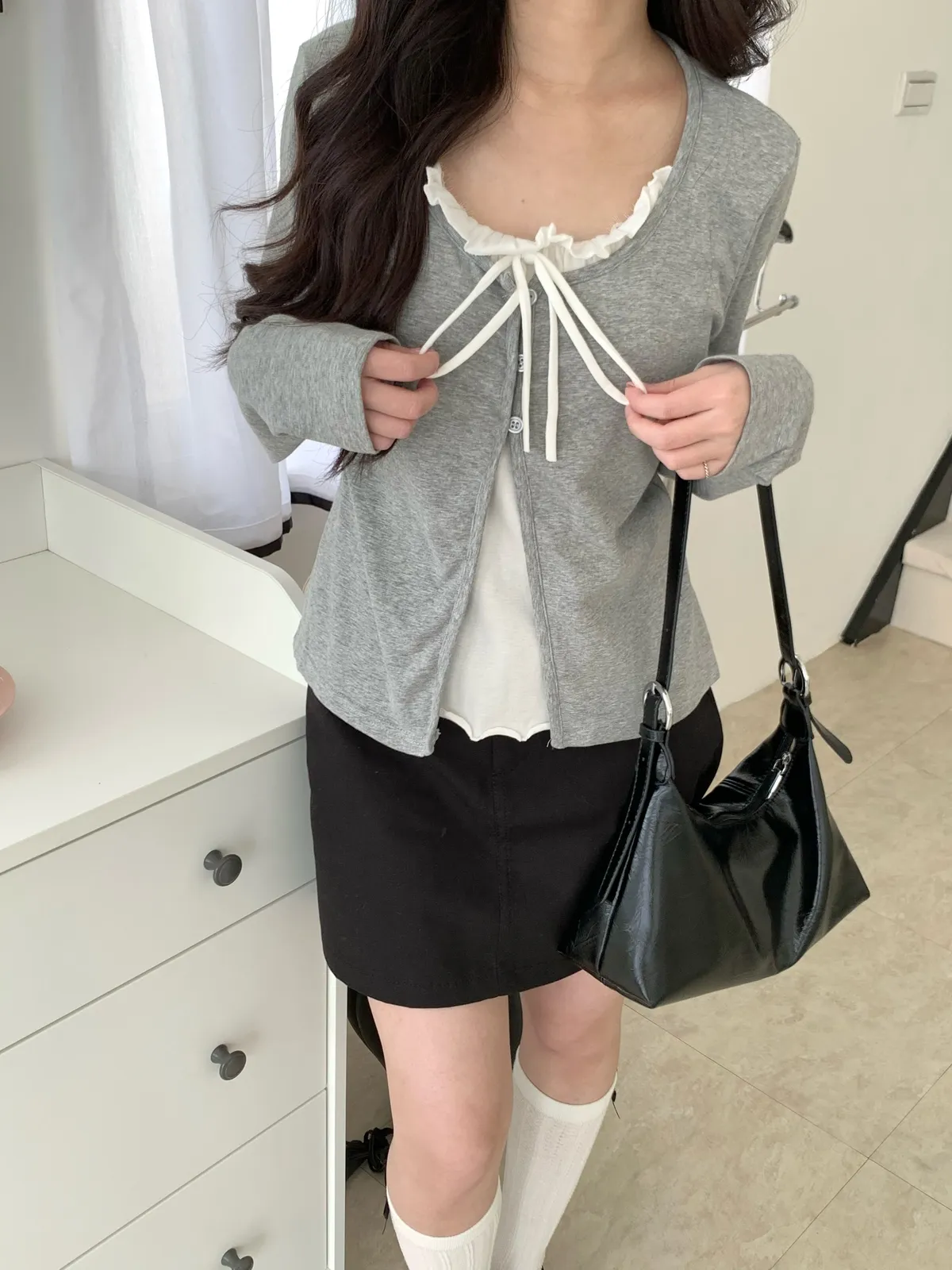 Mar.芭蕾輕語荷葉領綁帶上衣(2colors)