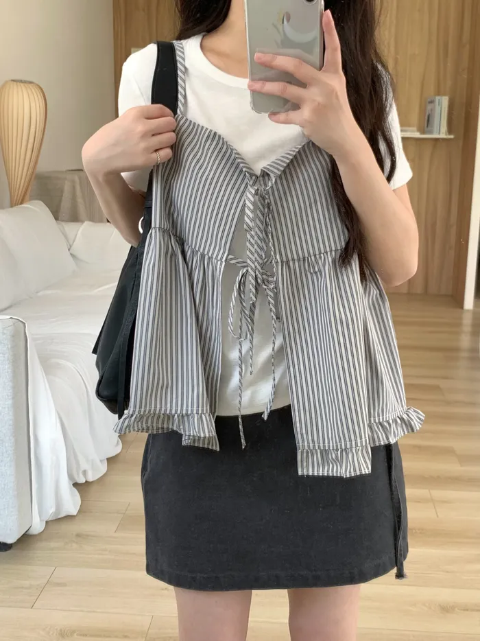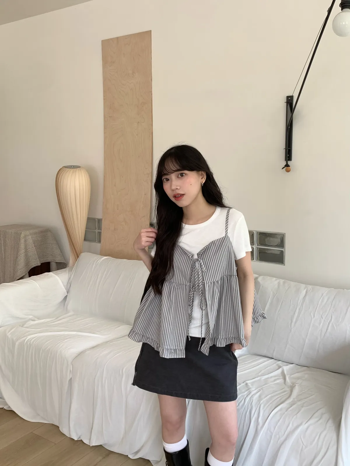 Mar.春日餘溫條紋綁帶背心(2colors)