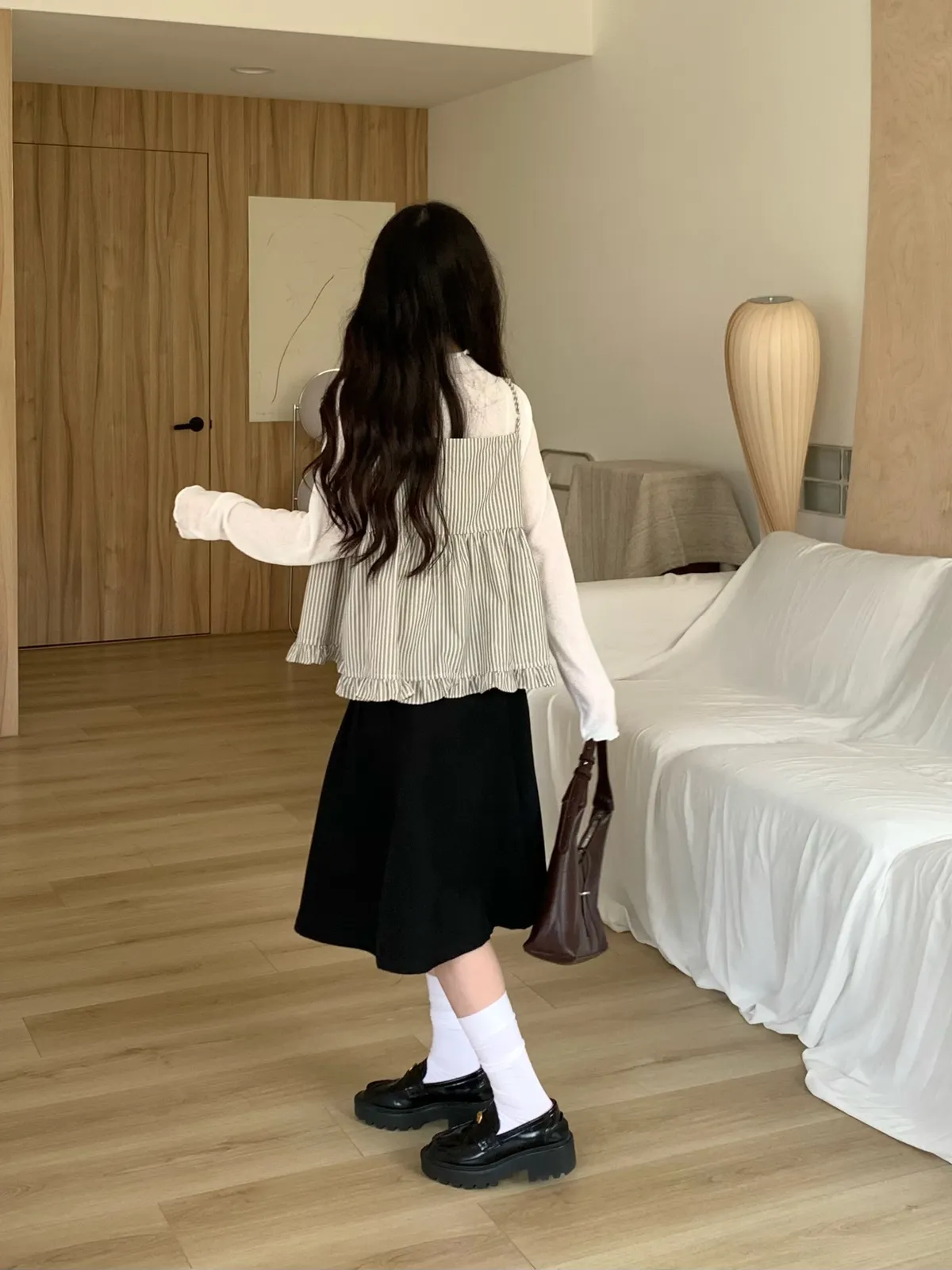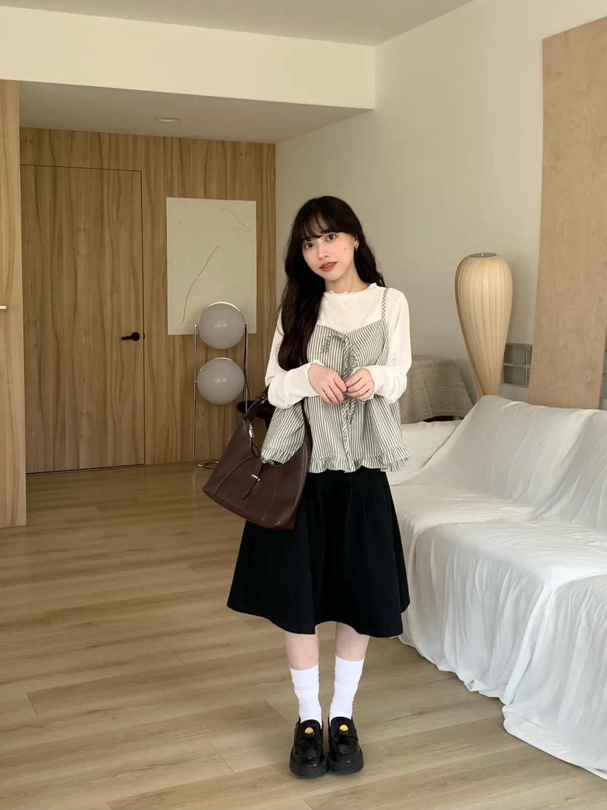 Mar.首爾漫步清冷感壓摺中長裙,附皮帶(2colors)