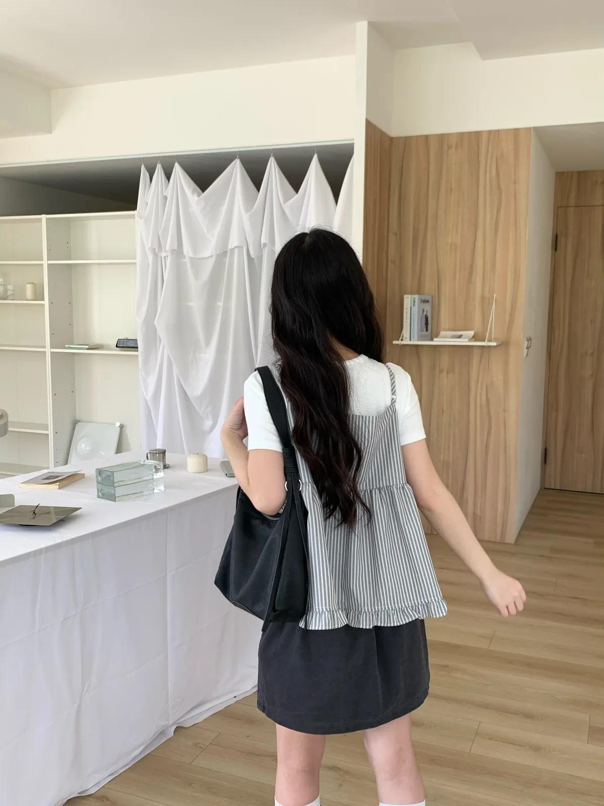 布料本身沒彈性,但版型寬鬆不挑人