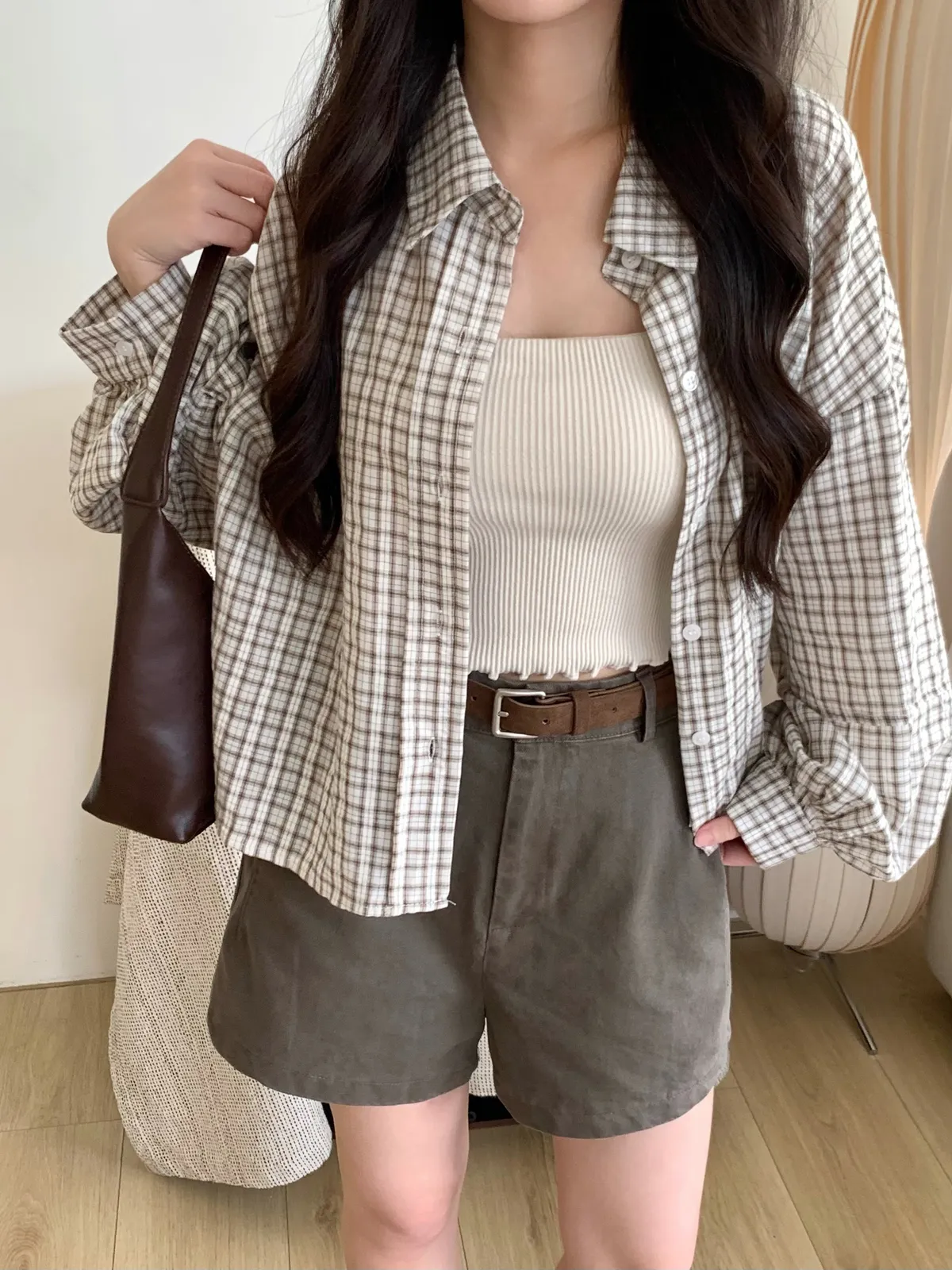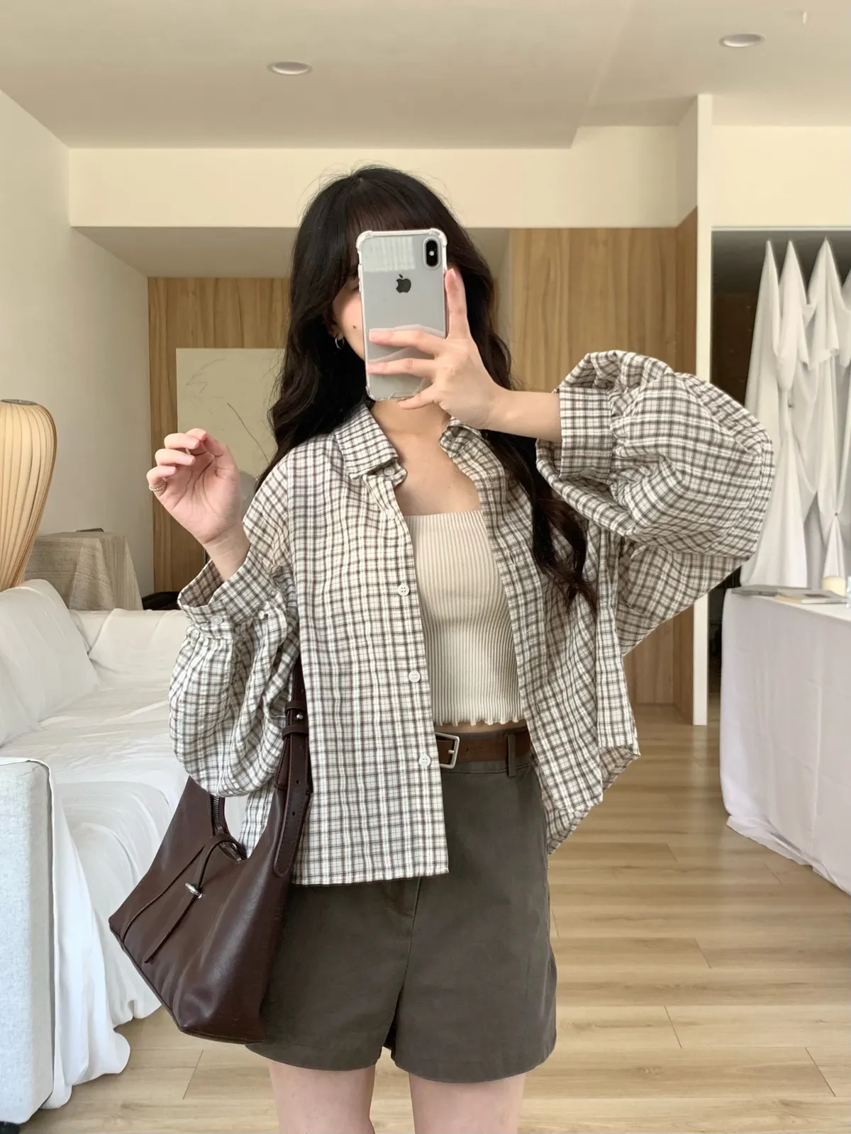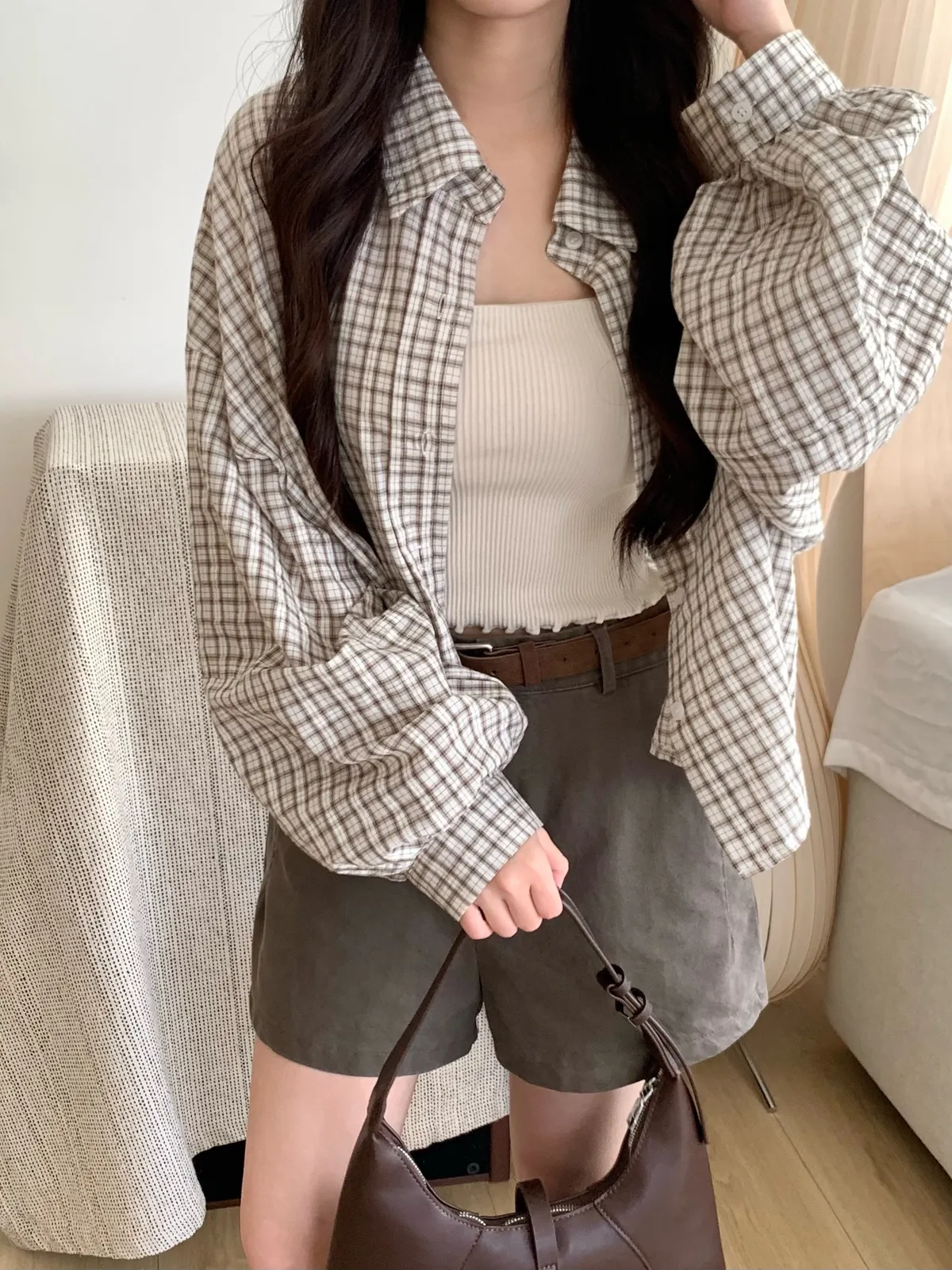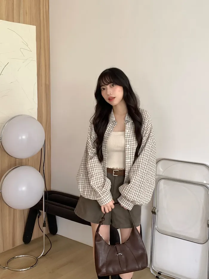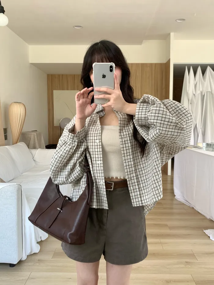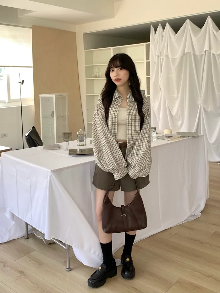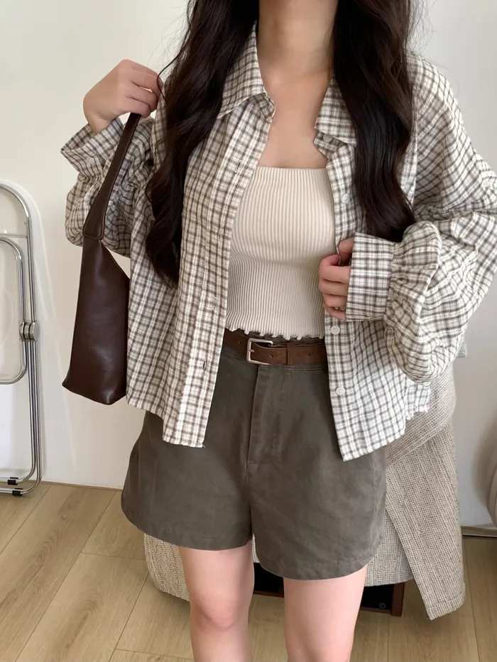 Mar.Milk tea check奶茶格紋襯衫