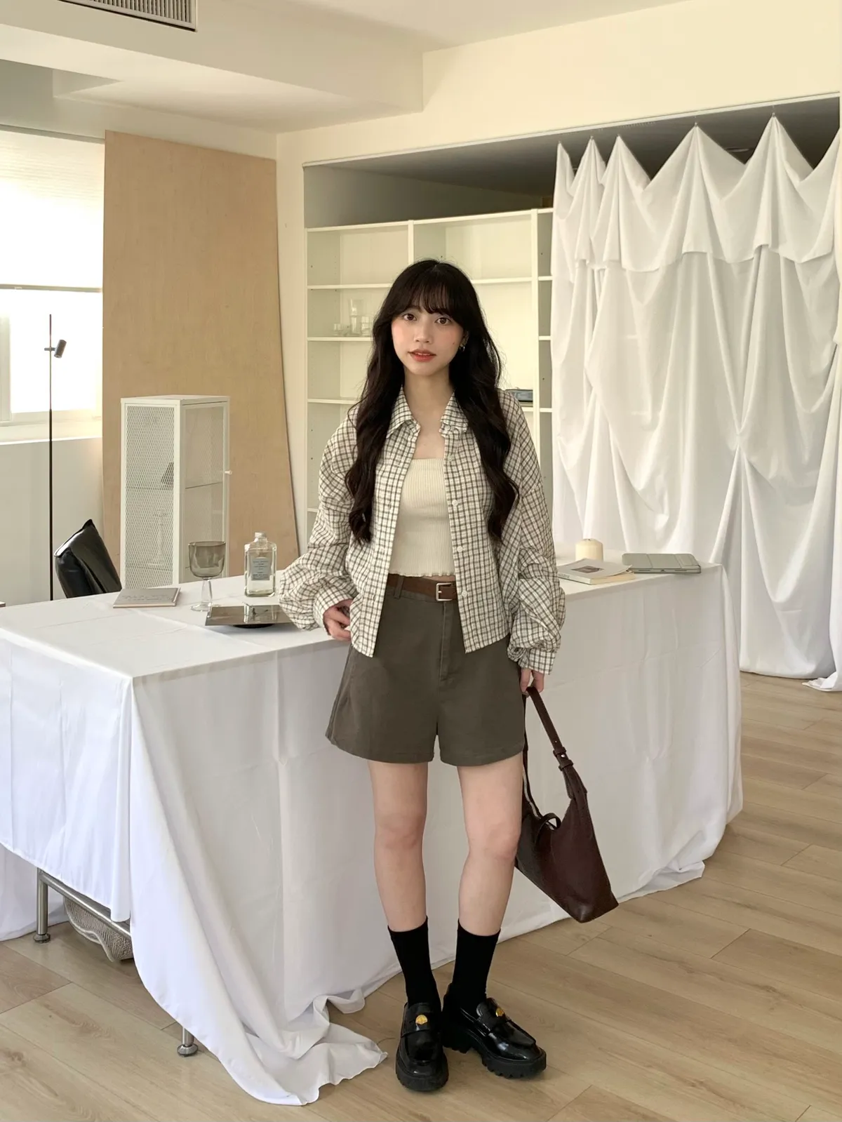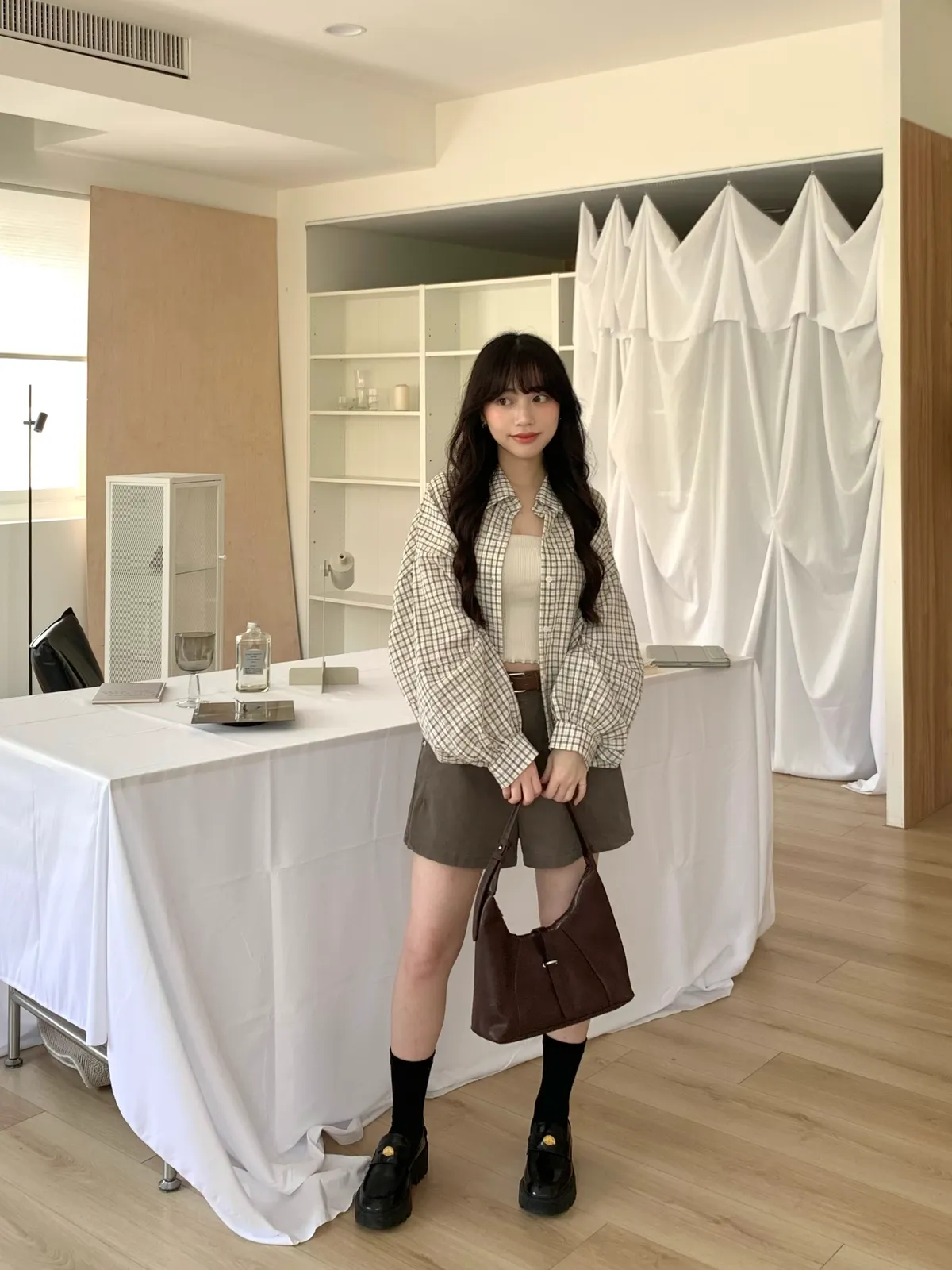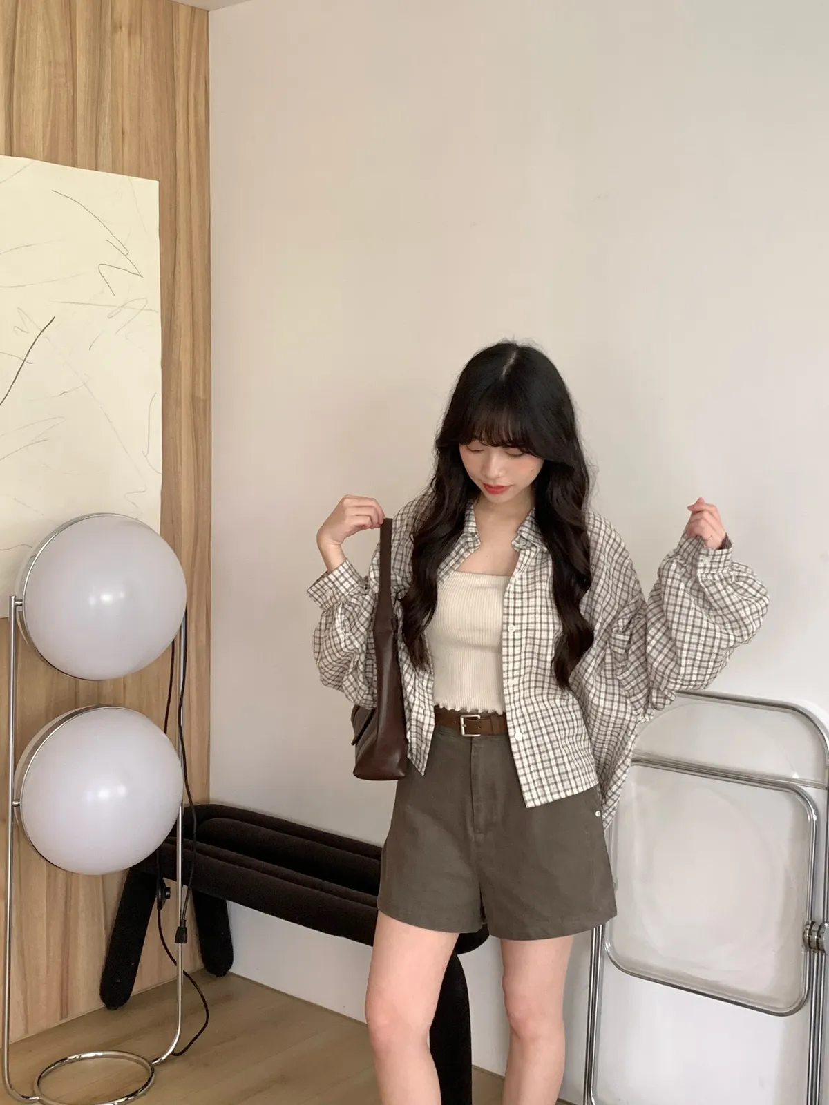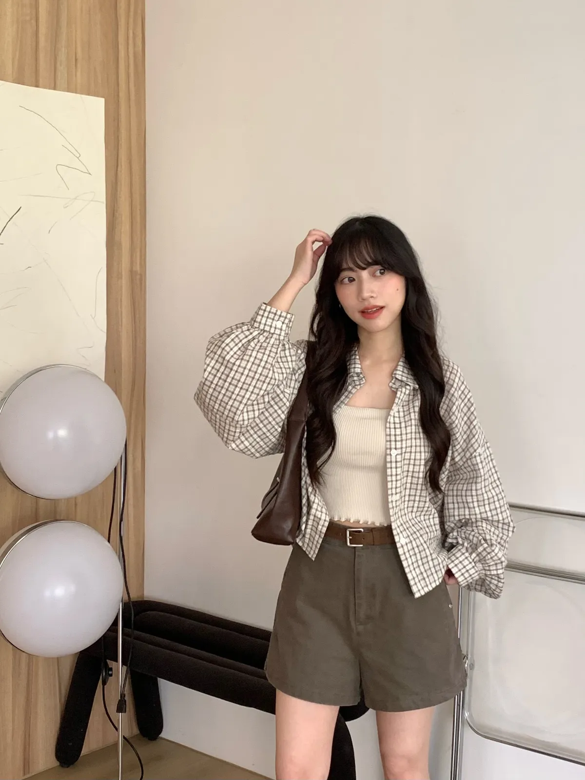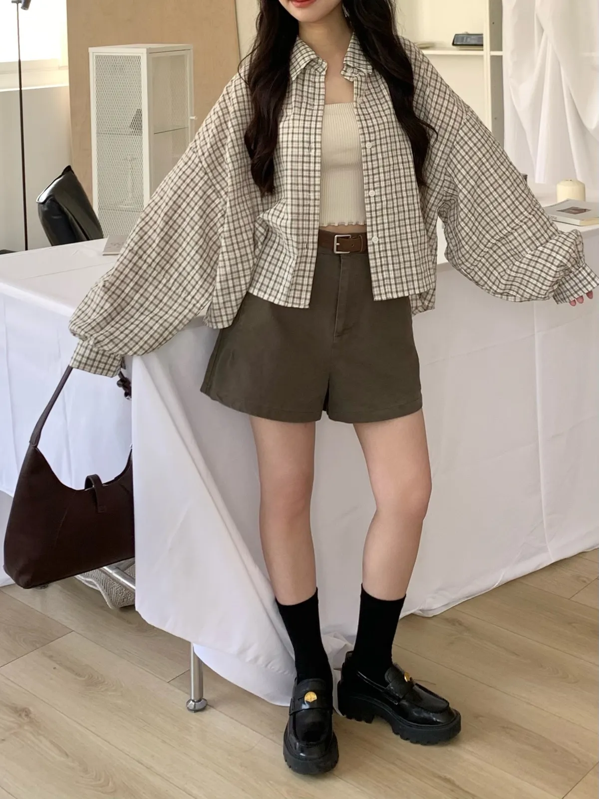 Mar.Milk tea check奶茶格紋襯衫