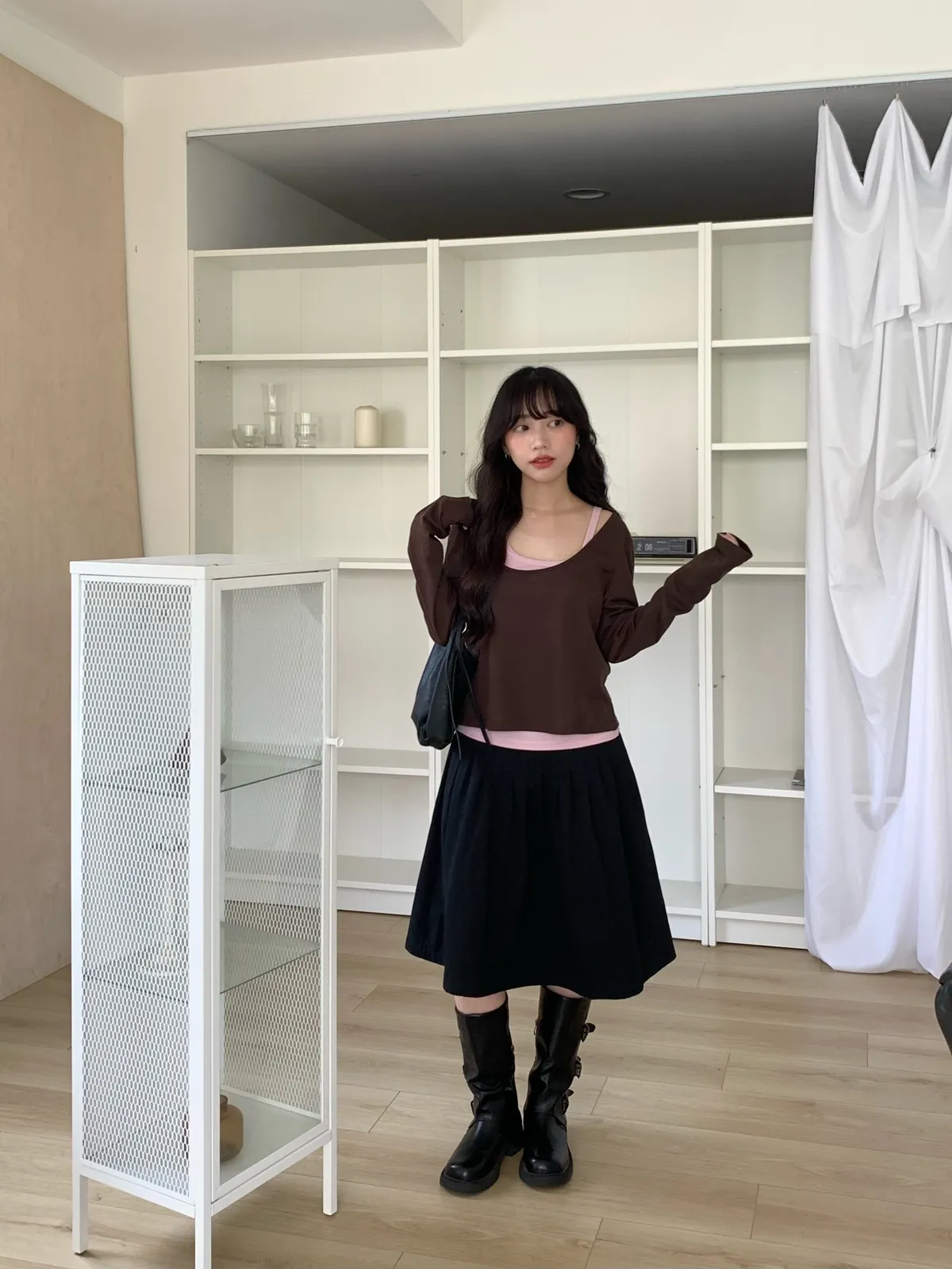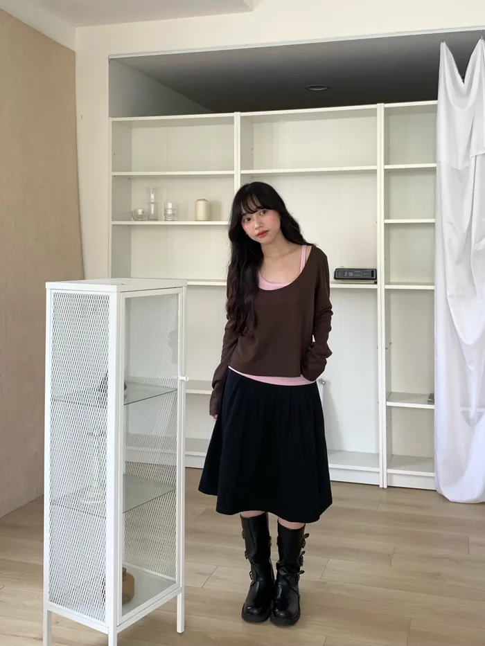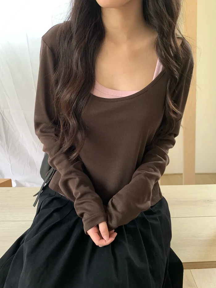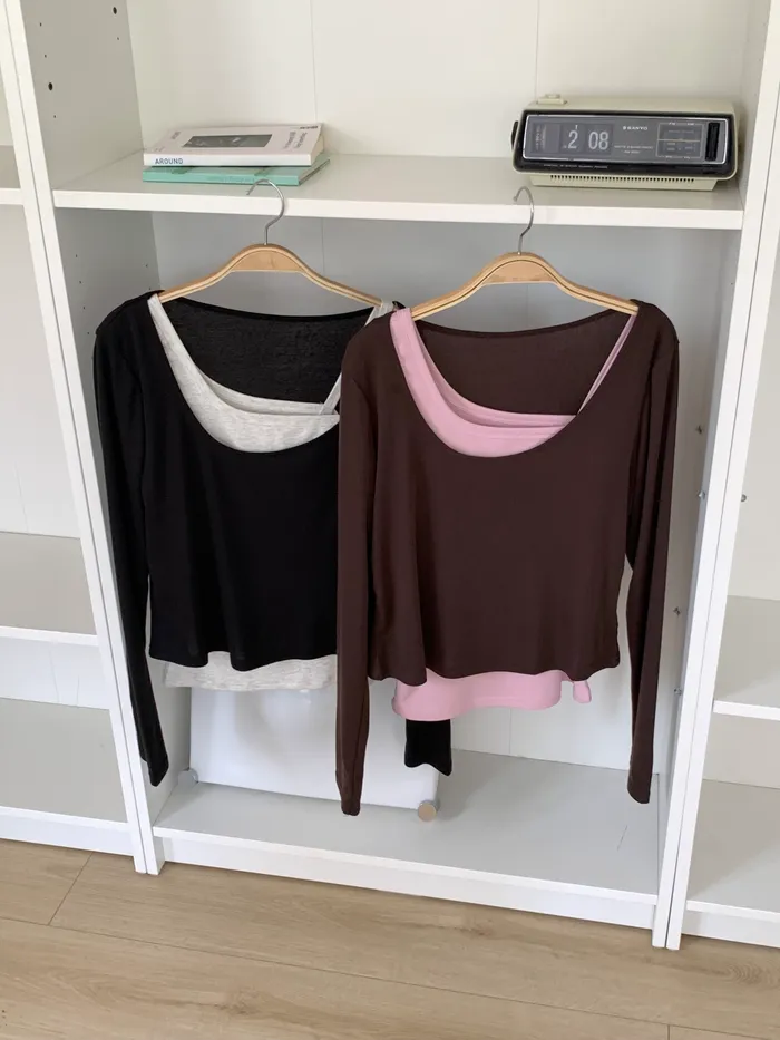 Mar.草莓摩卡設計感兩件式上衣(2colors)