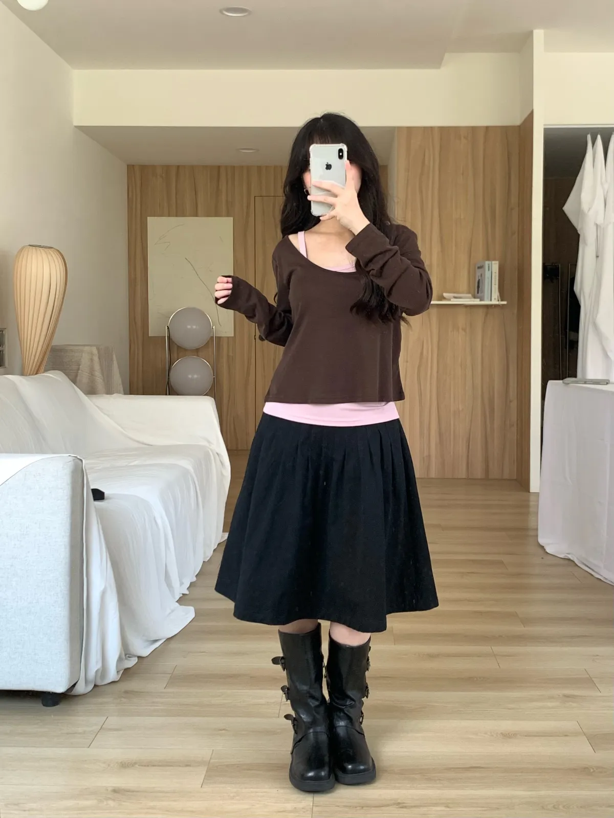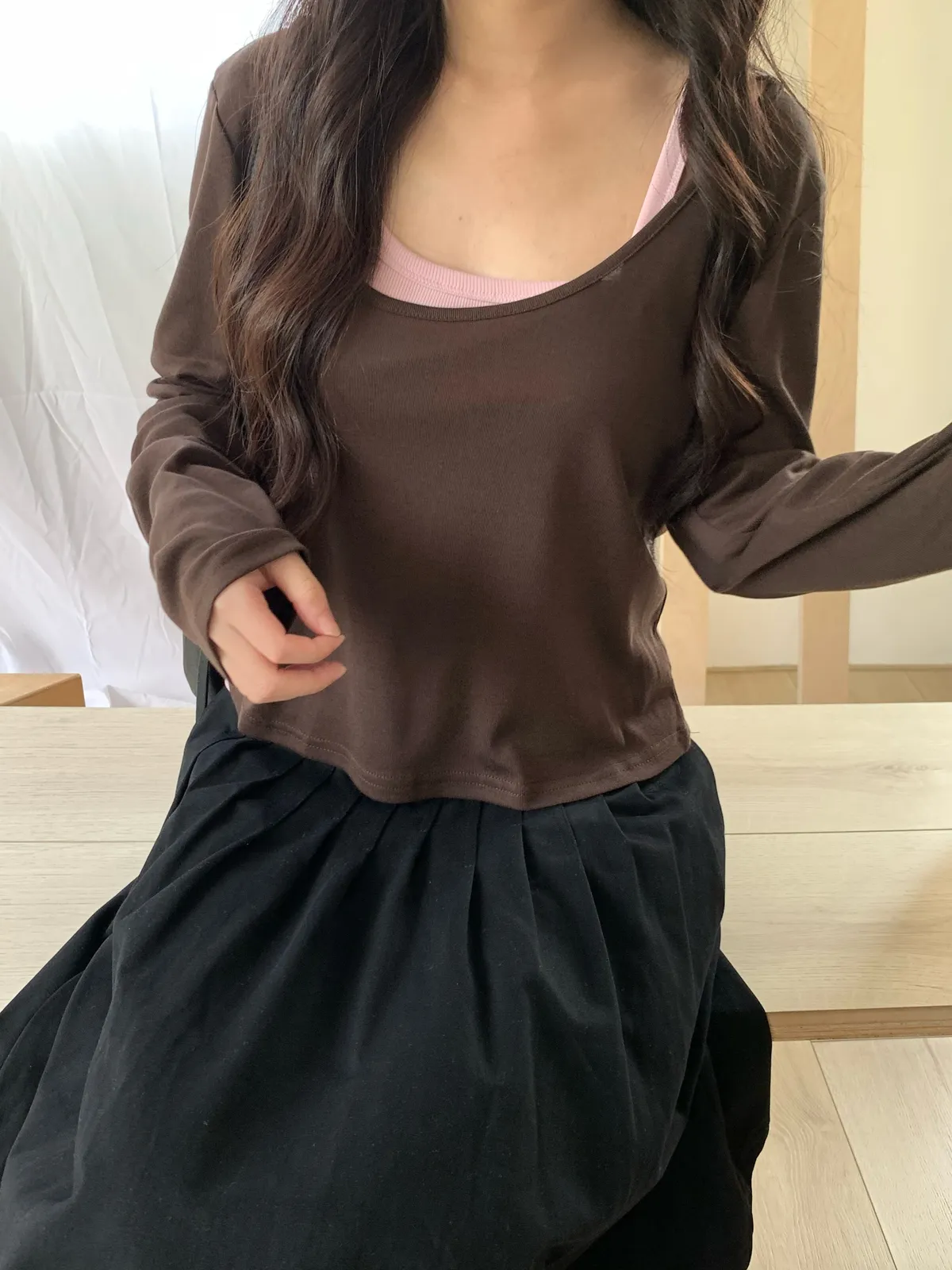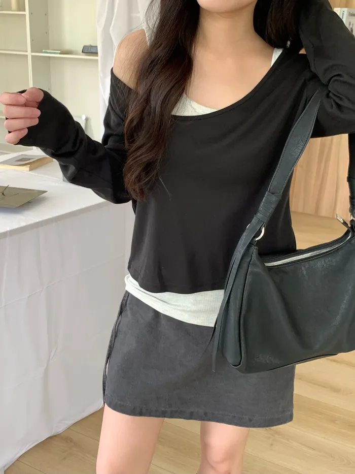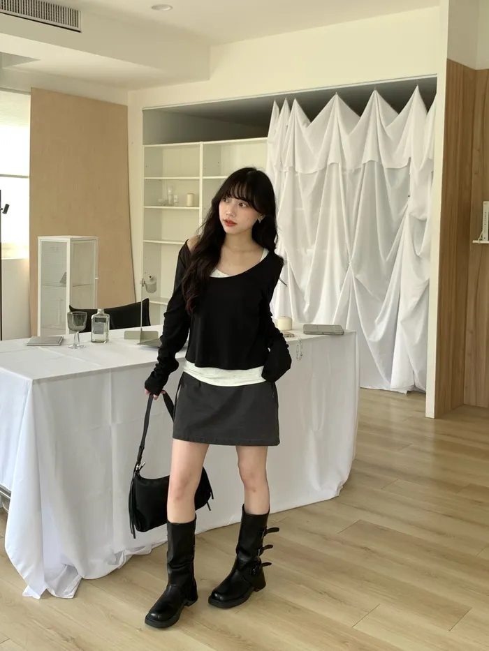 Mar.草莓摩卡設計感兩件式上衣(2colors)