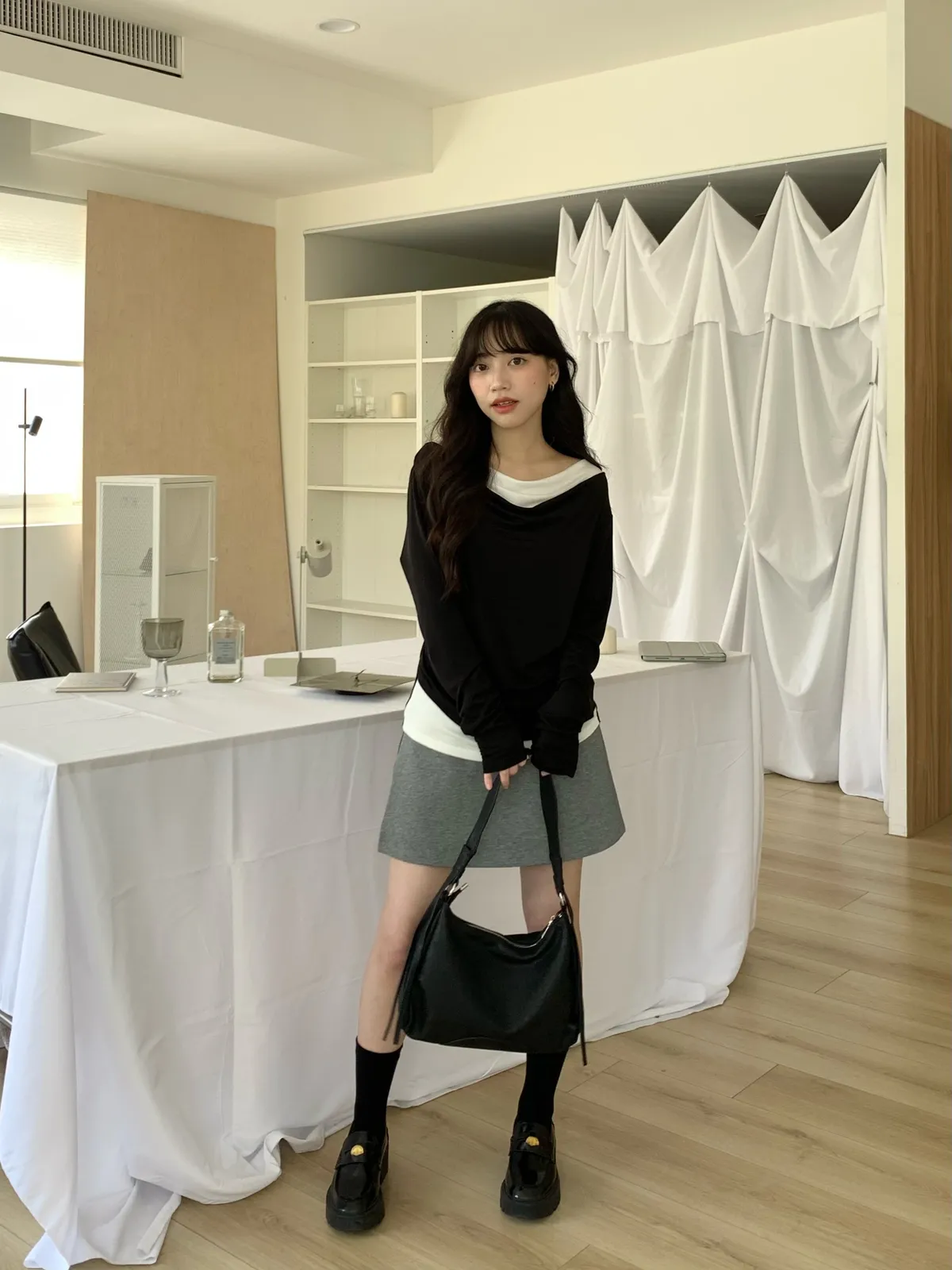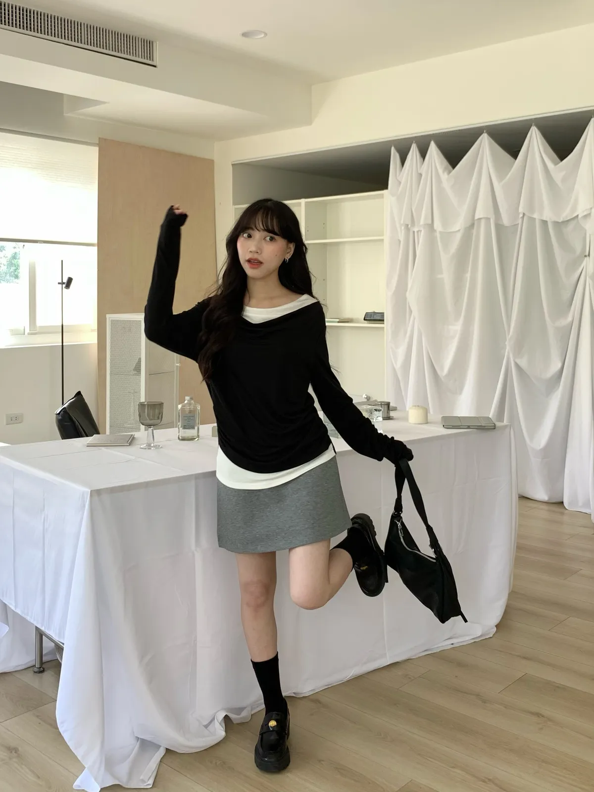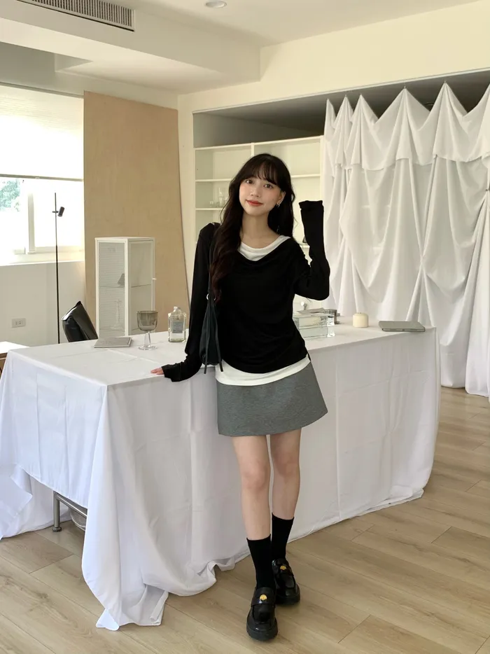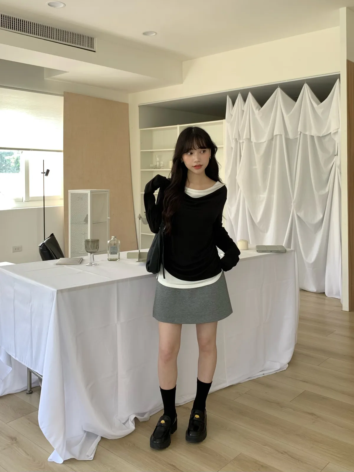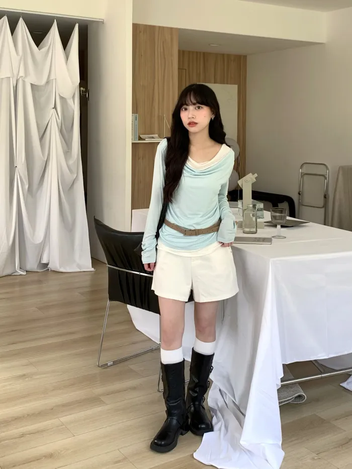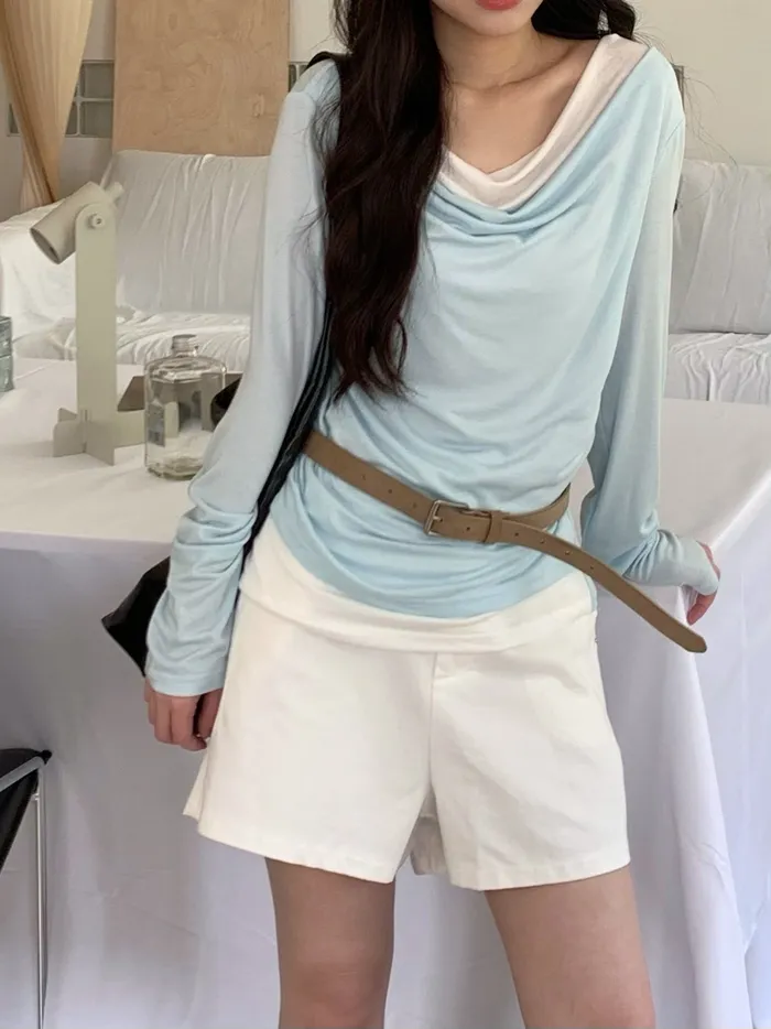 讓簡單素色的上衣更多了不一樣的小成熟感