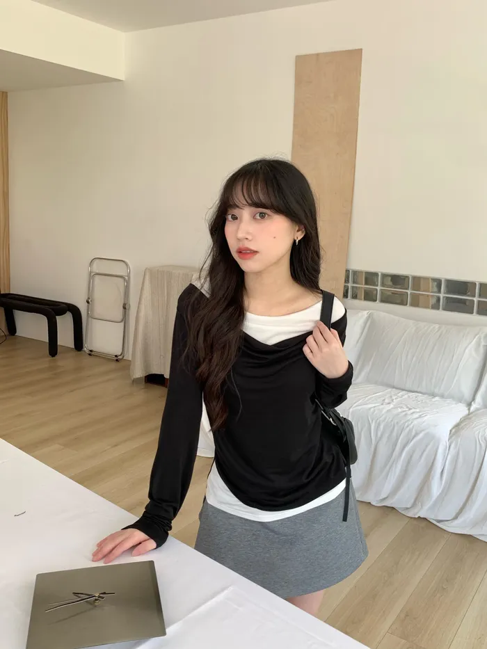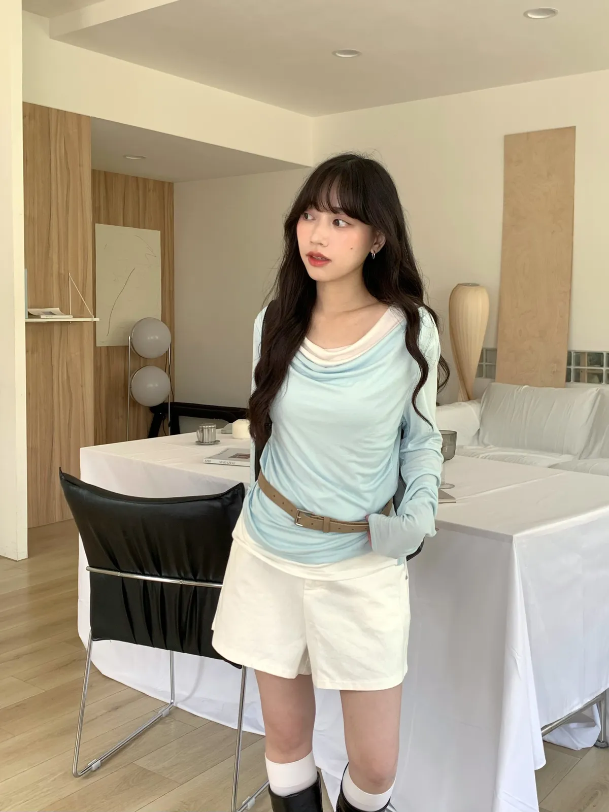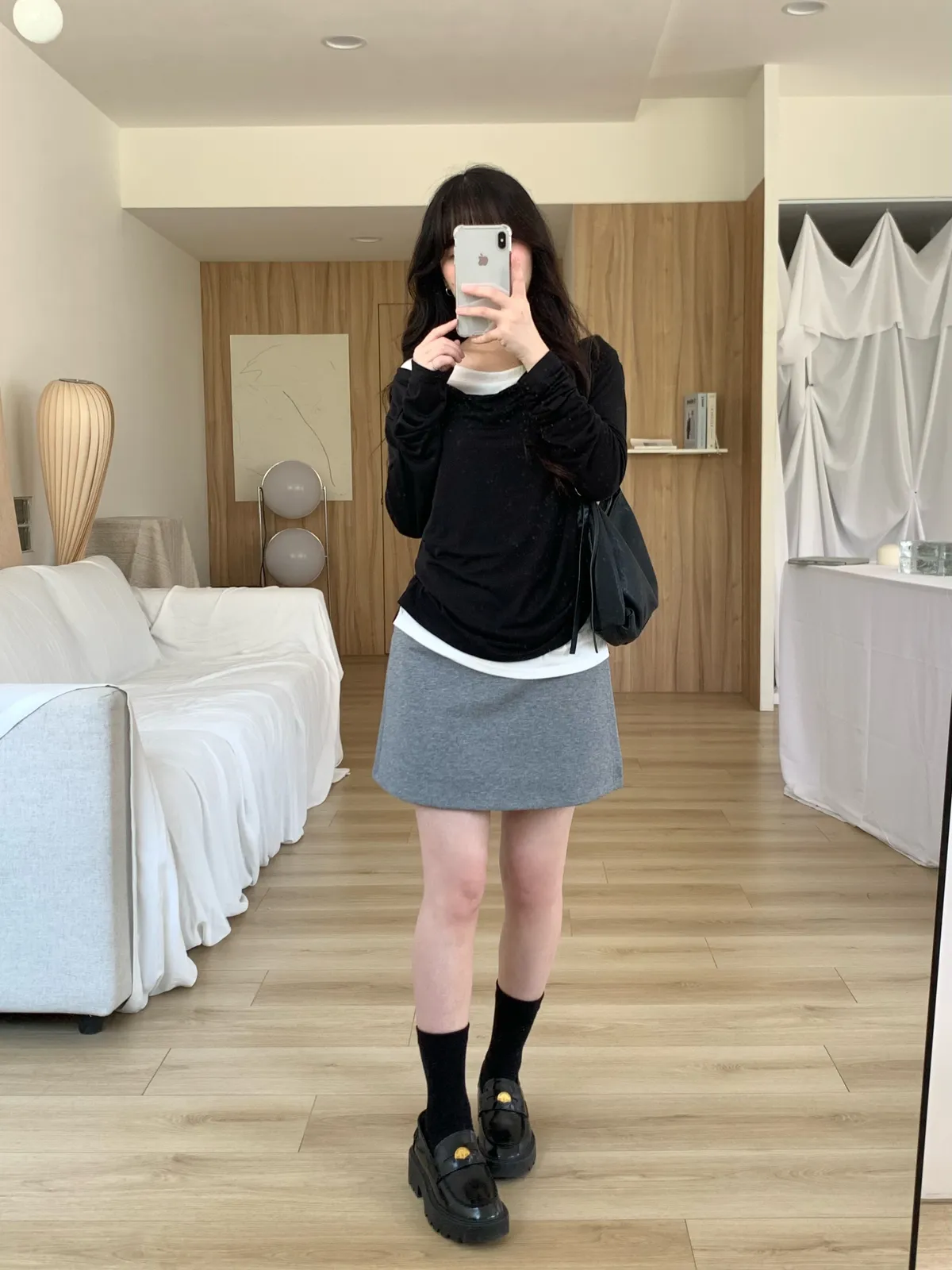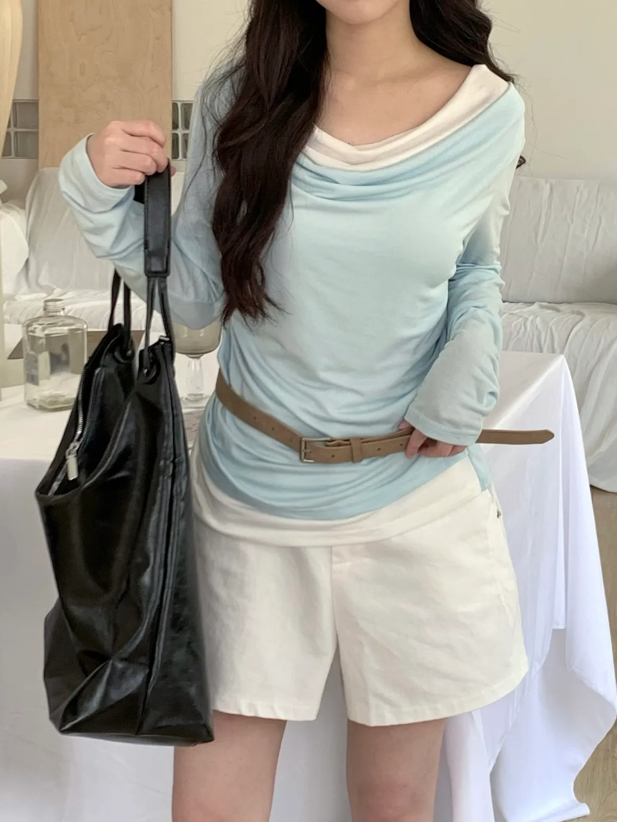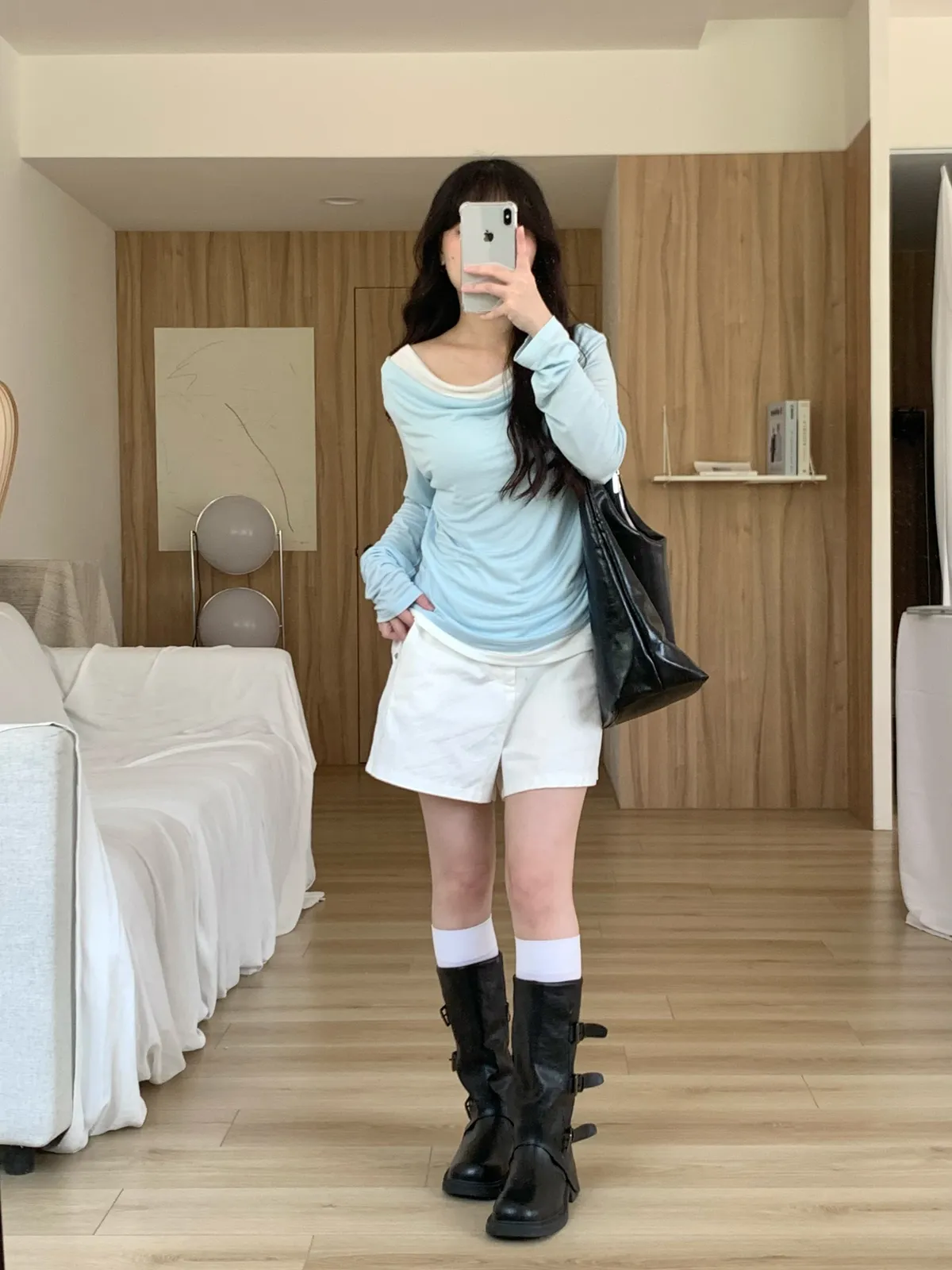 讓簡單素色的上衣更多了不一樣的小成熟感