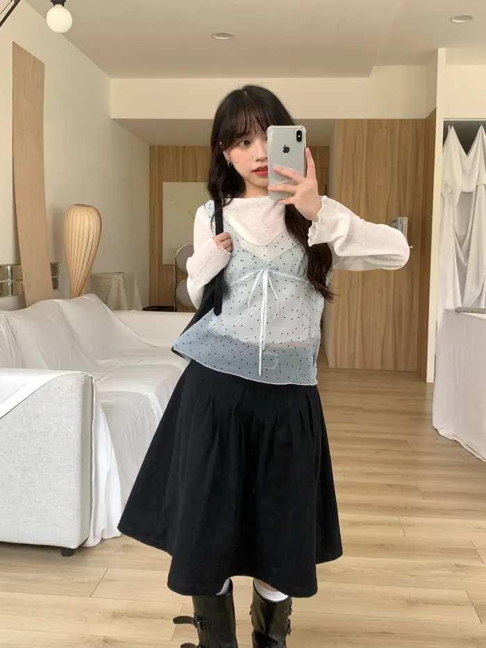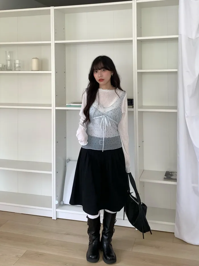 Mar.The ribbon diary波點微透背心(2colors)