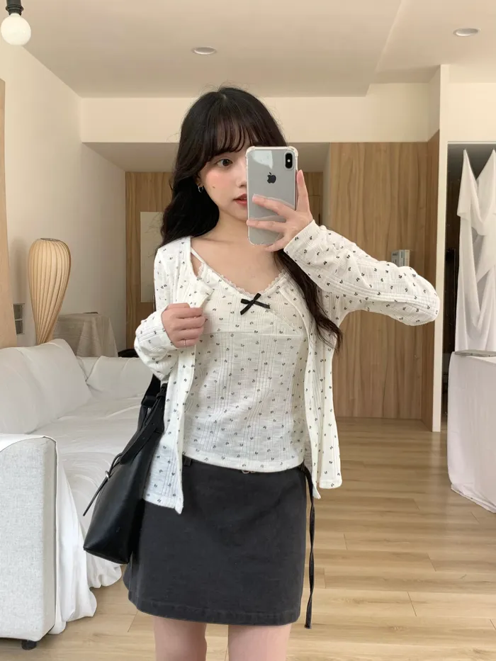 Mar.初戀濾鏡蝴蝶結背心罩衫兩件套(2colors)